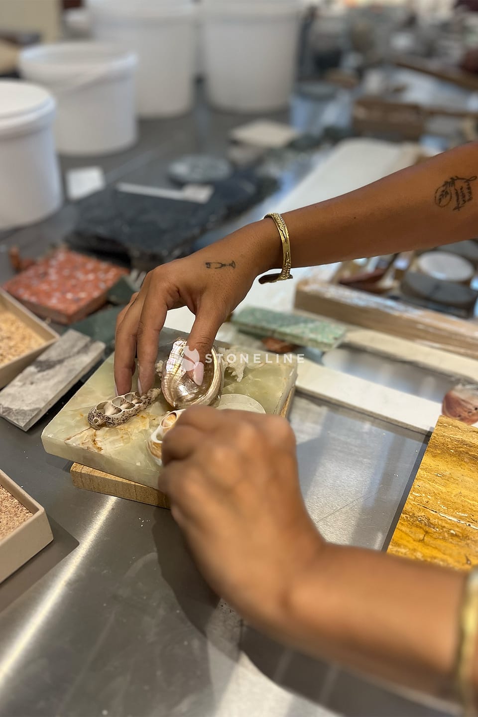 After the presentations came the most enjoyable part: the Palezzo Workshop. Here, the team had the chance to work directly with stone and create their own designs. Rather than simply observing, the designers became part of a creative process—turning the experience into an inspiring journey.