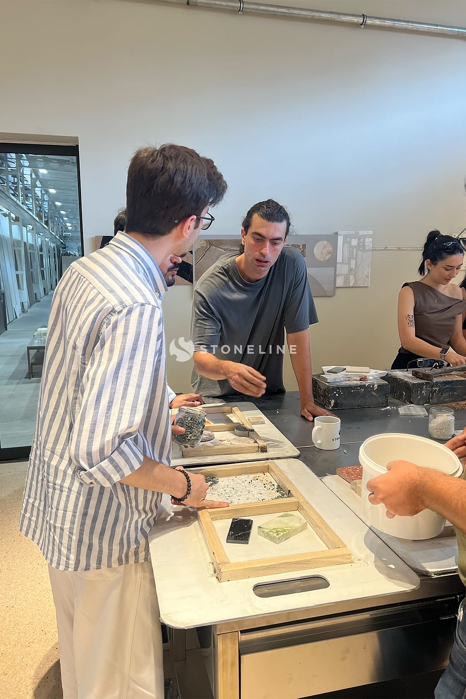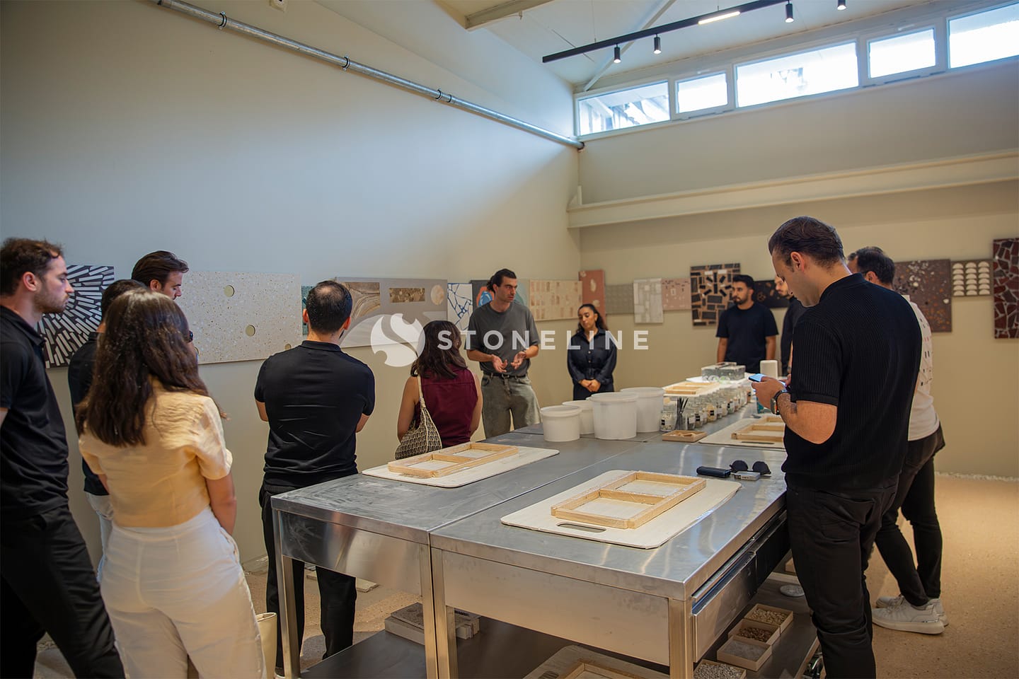 After the presentations came the most enjoyable part: the Palezzo Workshop. Here, the team had the chance to work directly with stone and create their own designs. Rather than simply observing, the designers became part of a creative process—turning the experience into an inspiring journey.