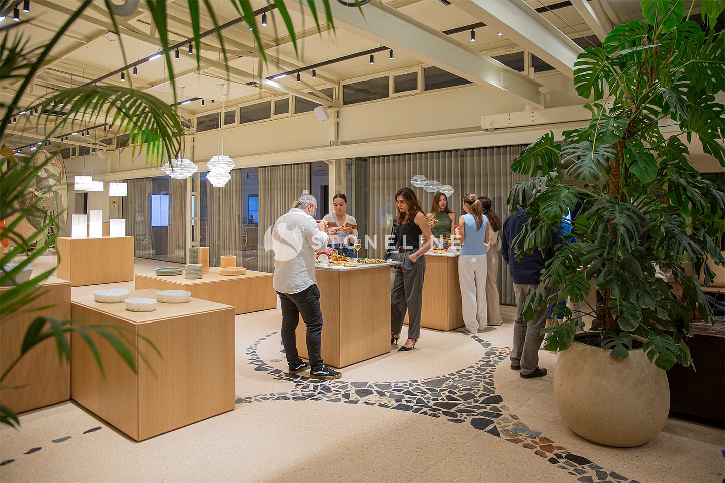 The evening began with cocktails and snacks, followed by an impressive natural stone presentation that delicately conveyed everything from the origins of natural stones to their texture, colour depth, and relationship with light.