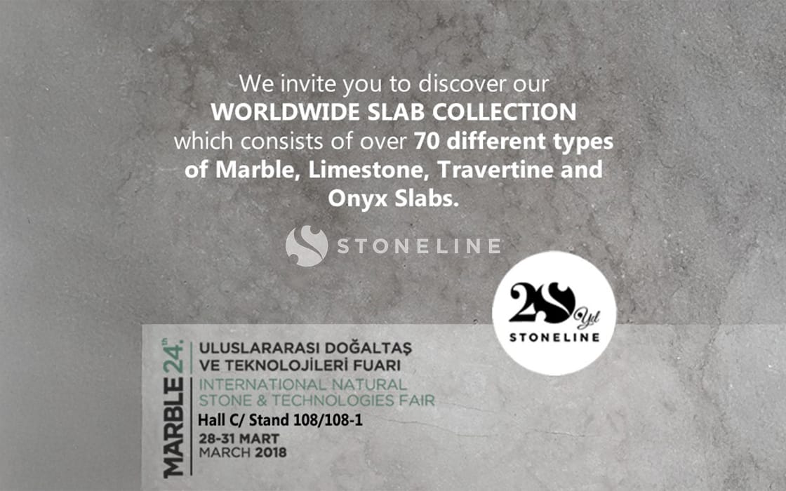 As Stoneline, we participate in the Marble İzmir 2019 fair, the 25th of which wil be held between the dates of March 28th-31st, 2018. You can visit us in the Hall C, in Stand 108 and 108/1.