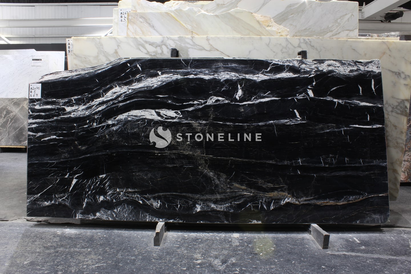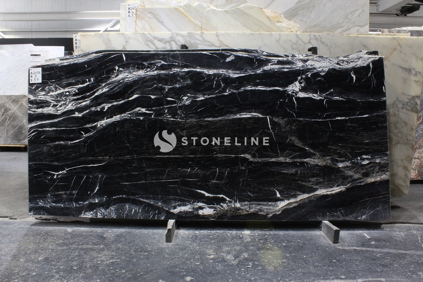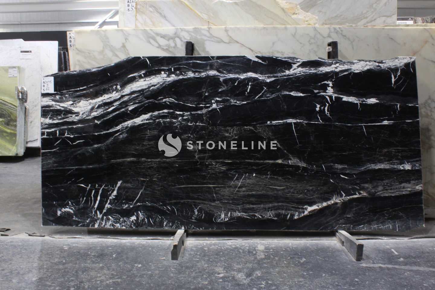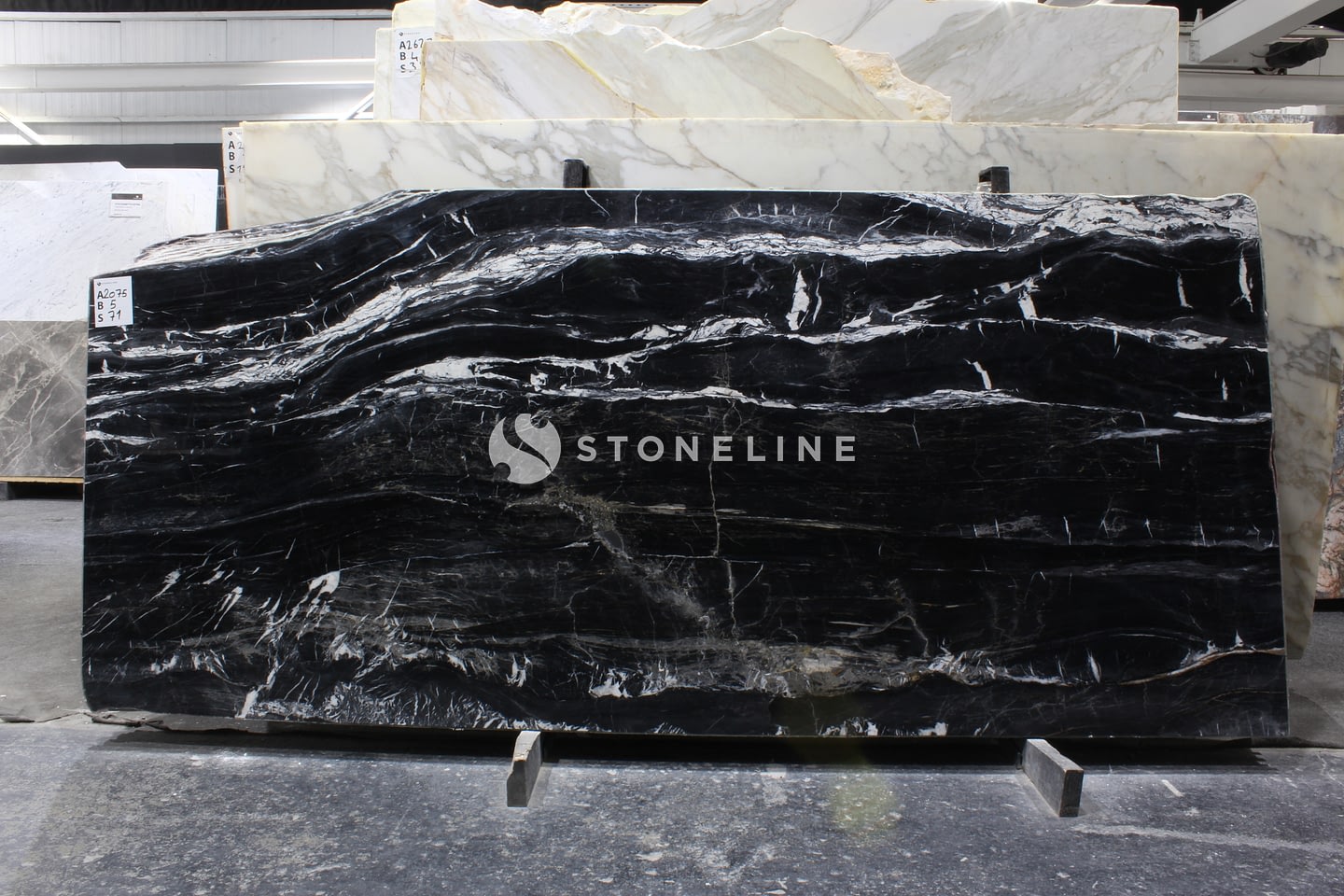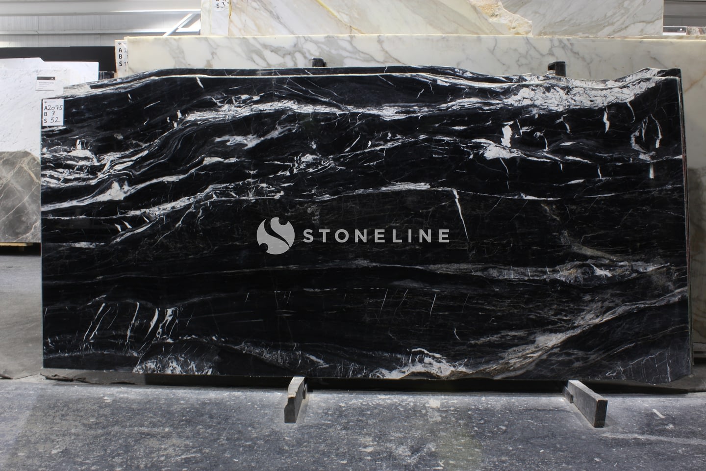 ARTIC BLACK marble slabs are available with a surface thickness of 2 cm, suitable for various architectural and design applications.