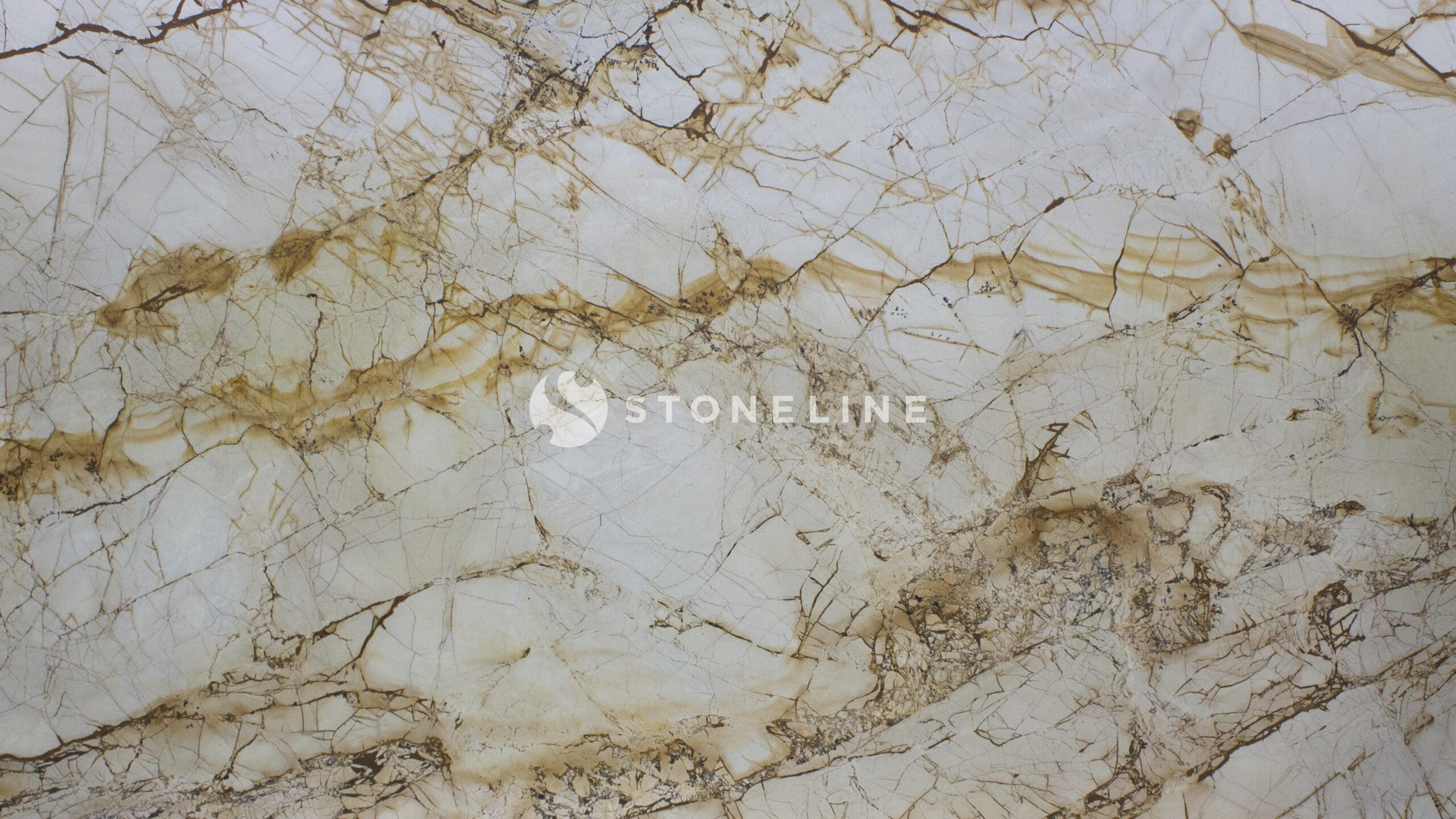 Astra Imperiale is a premium quartzite slab characterized by its striking golden hues set against a pristine white background. This honed surface quartzite, with a 2 cm thickness, combines durability and elegance, making it an excellent choice for both residential and commercial interior applications. Its natural resistance to scratches and heat, coupled with a refined matte finish, allows Astra Imperiale to enhance countertops, wall cladding, and flooring designs with a sophisticated and timeless aesthetic. The subtle interplay of white and yellow tones ensures versatility in pairing with various design palettes, while the honed texture provides a smooth, non-reflective surface ideal for contemporary architectural projects.