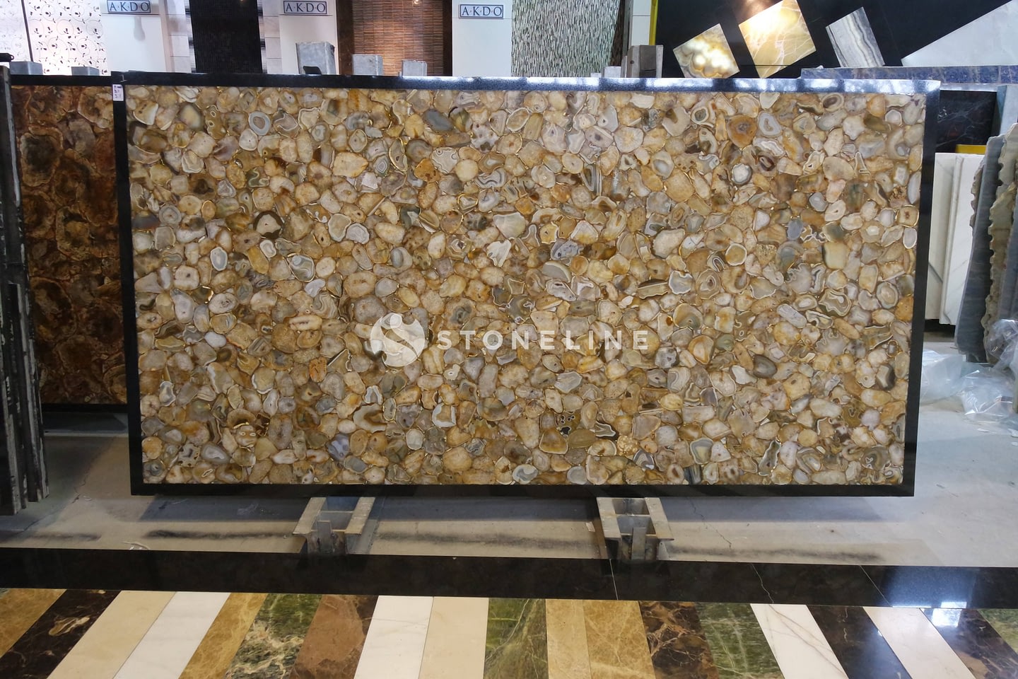 BROWN AGATHE is ideal for feature walls, countertops, decorative panels, and bespoke architectural details where its polished surface and translucency can be showcased.