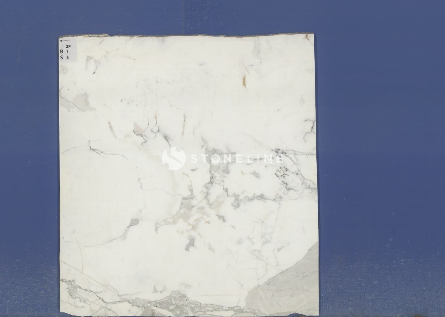CALACATTA CLASSIC BURGHINI marble features a white base with veins in shades of gray, beige, and occasional yellow tones. It comes with a polished 2 CM thick surface and offers varying vein structures including diagonal, mixed, and linear patterns, providing distinctive natural aesthetics.