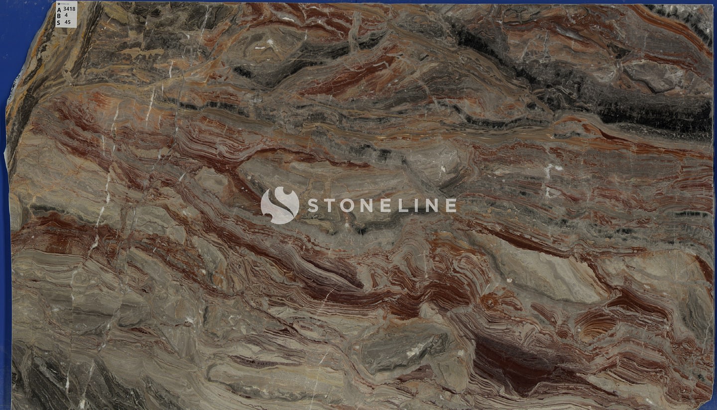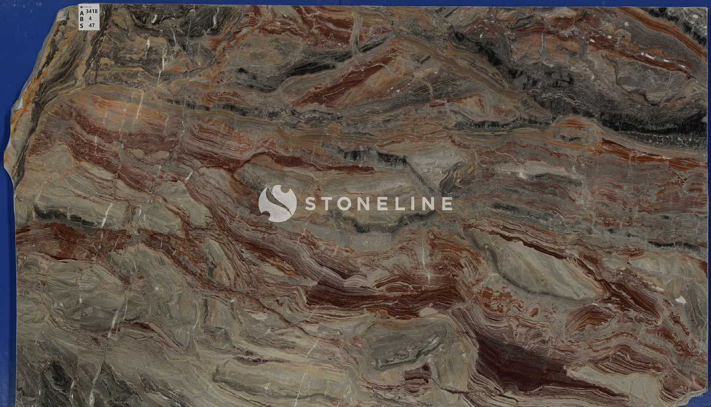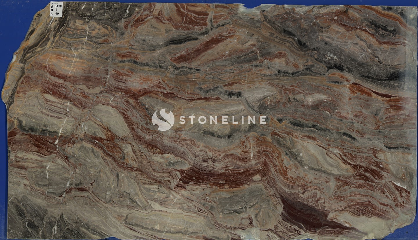 CARAMEL GREY BRESCIA ROSSO marble features a harmonious blend of beige, gray, and red tones with unique veining patterns that vary on each slab, creating a distinct natural aesthetic.
