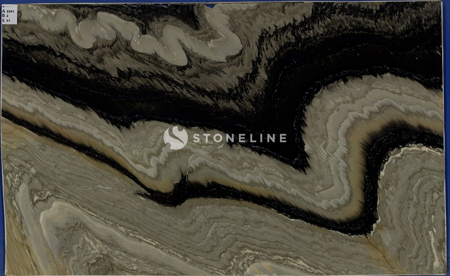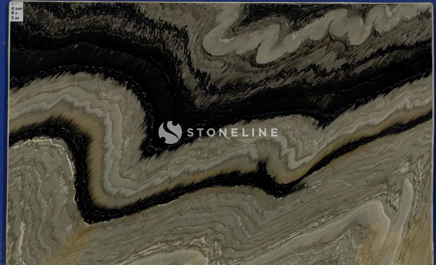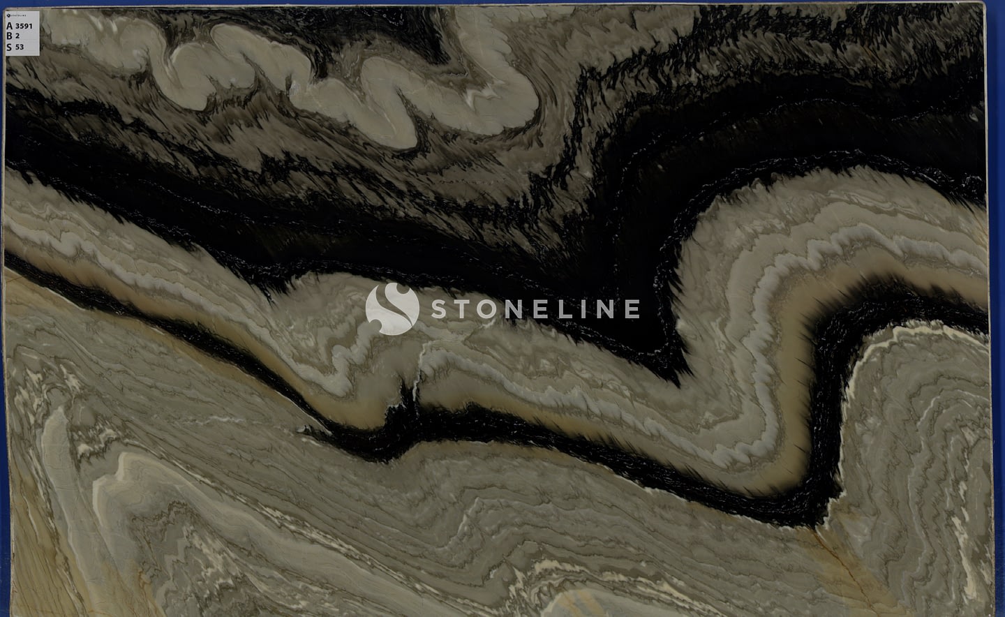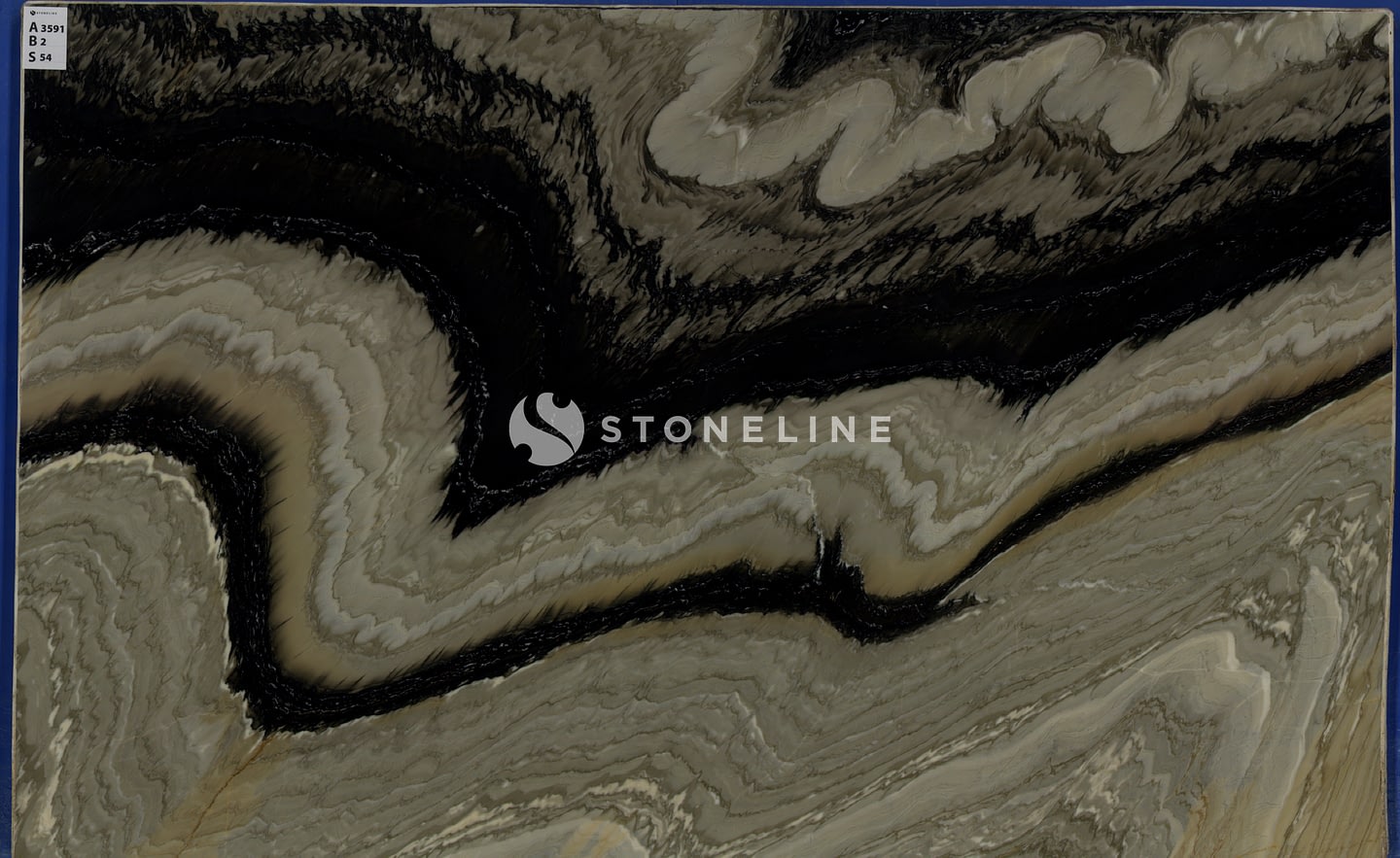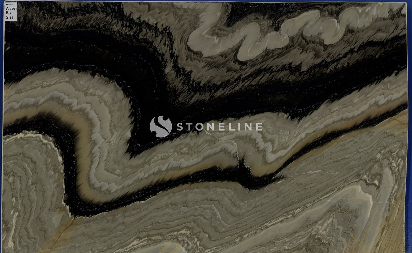 The bold white and black wave-like veining creates a sense of movement and visual dynamism in spaces. This makes it ideal for enhancing still surfaces and enriching architectural unity.