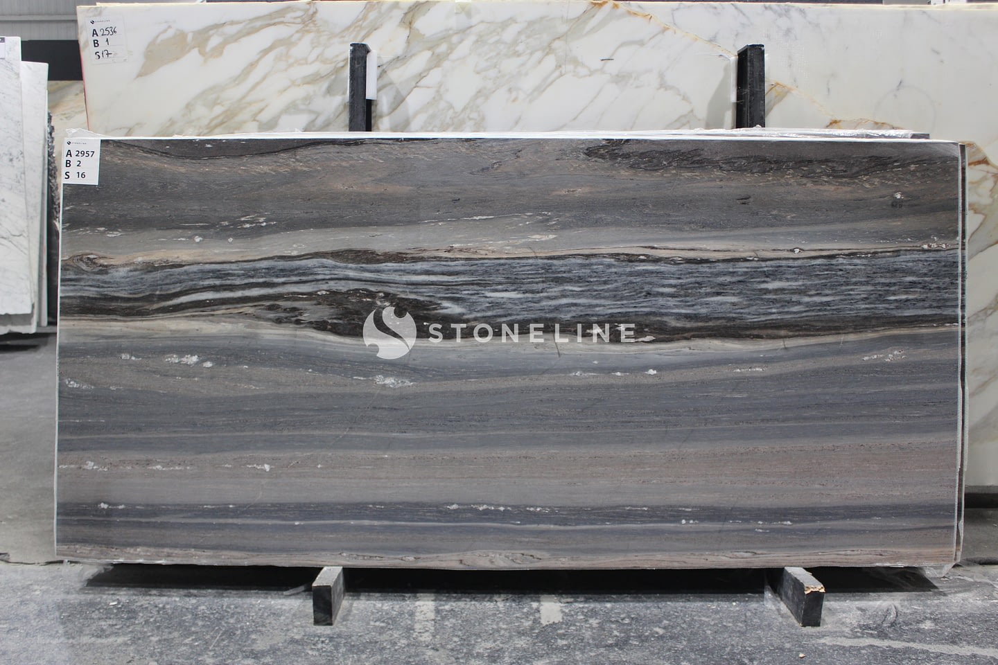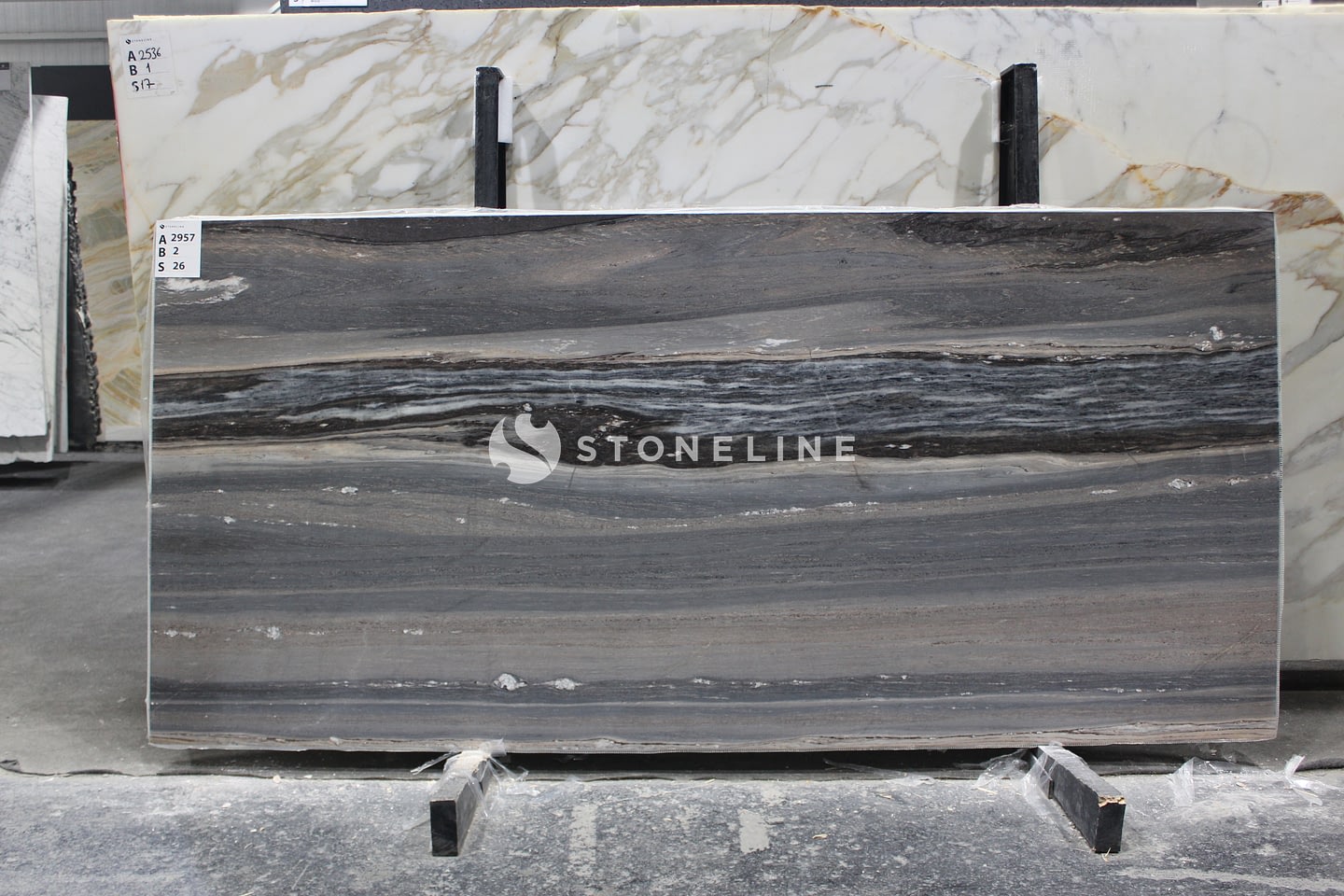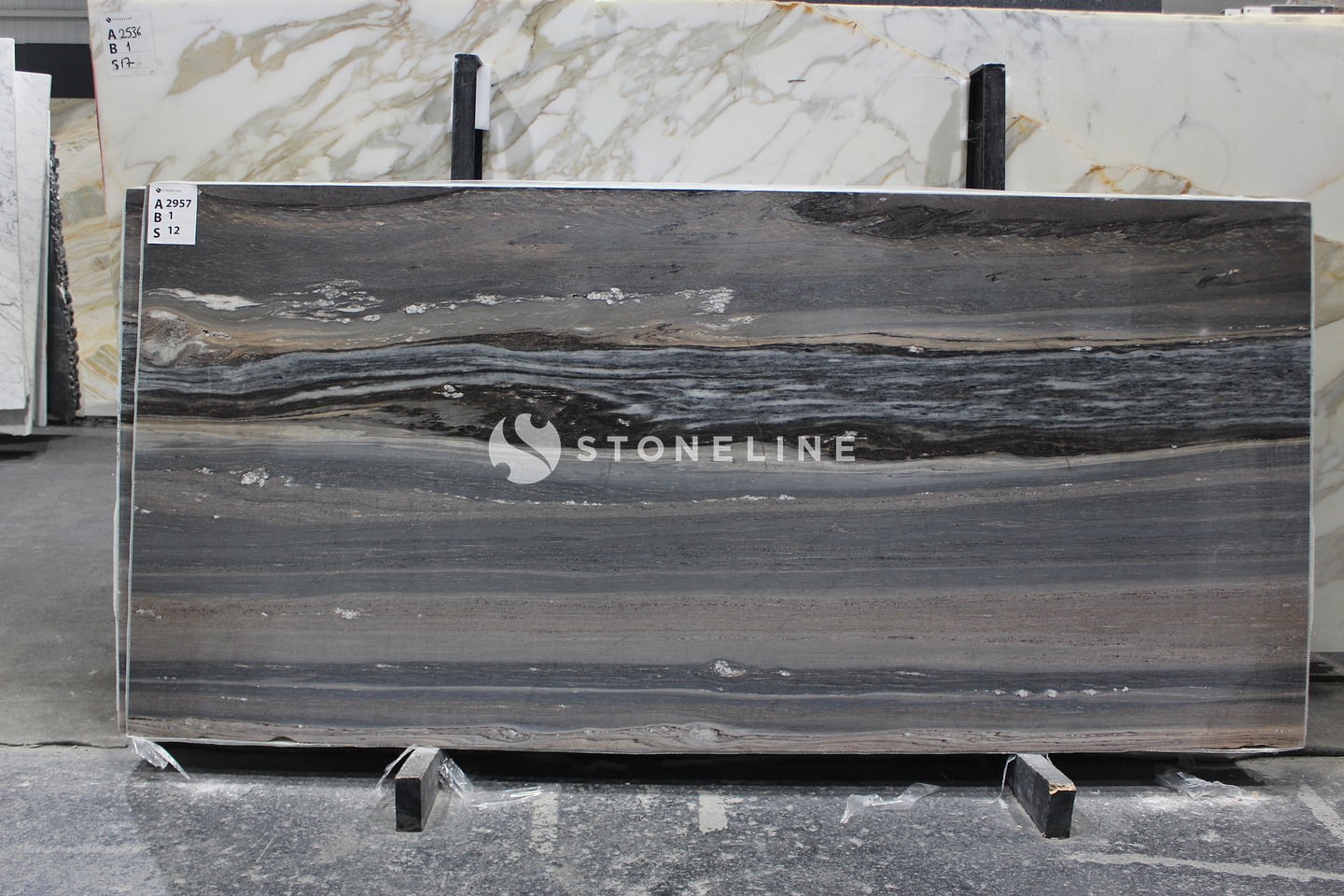 Colorado Classico is a distinguished marble from the Colorado Bronzo family, characterized by a dominant grey palette complemented by beige and brown tones. This natural stone features a polished surface with a striking horizontal and sharp veining pattern, providing a sophisticated and dynamic visual appeal. With a 2 cm thickness, Colorado Classico is suitable for a variety of interior applications including countertops, wall cladding, and flooring. Its combination of color tones and veining structure makes it an excellent choice for architectural projects seeking a refined yet natural aesthetic.