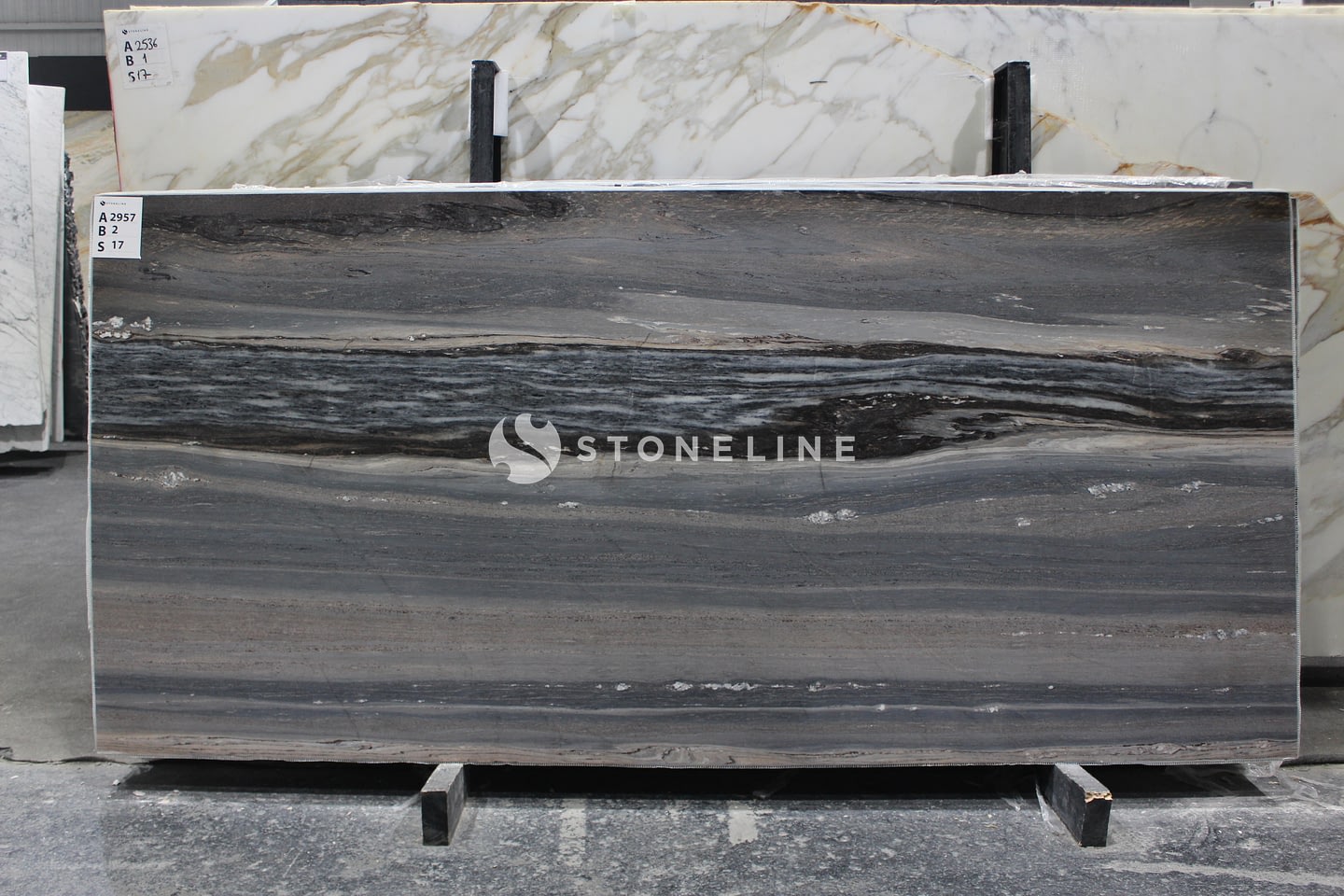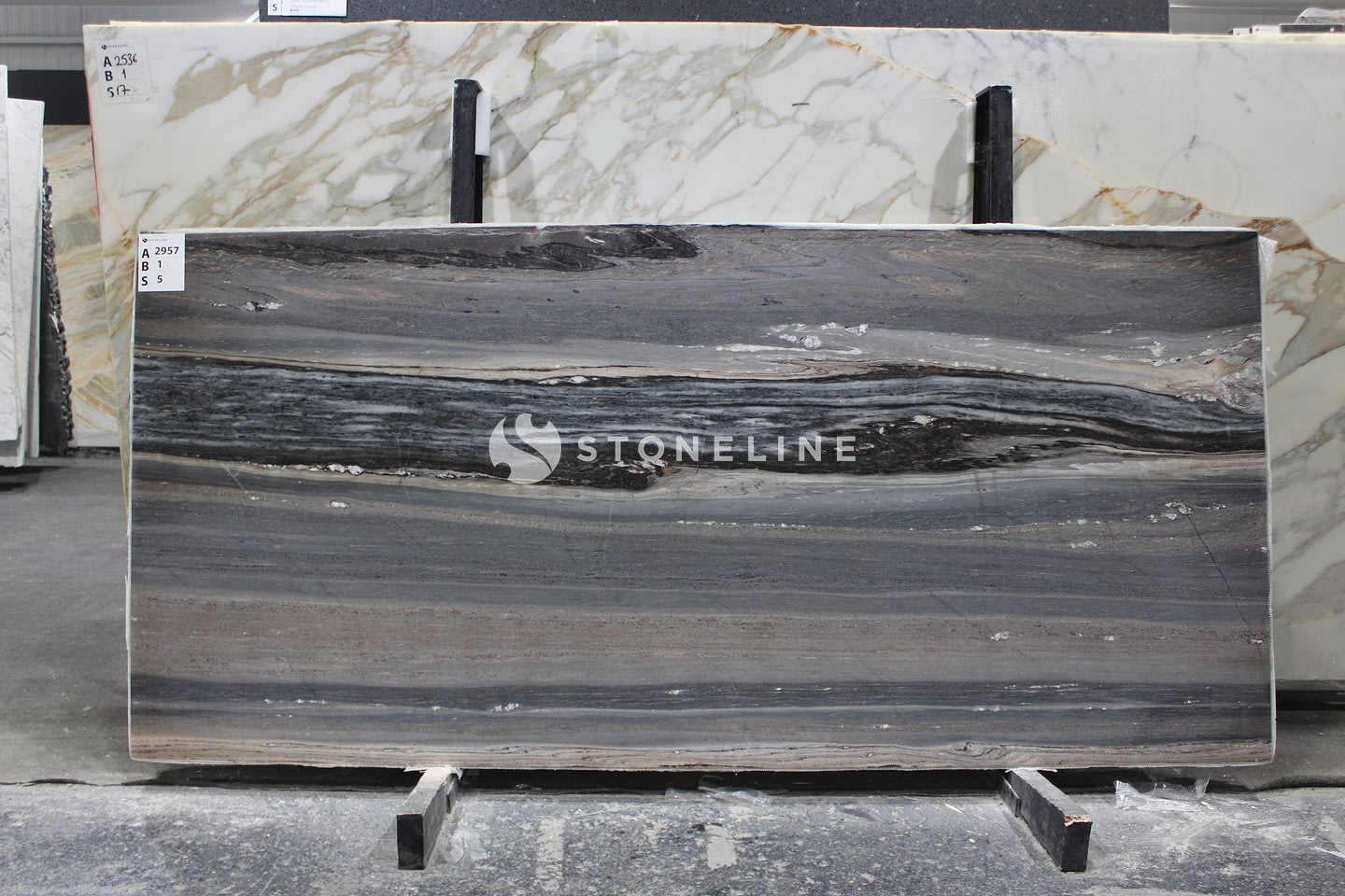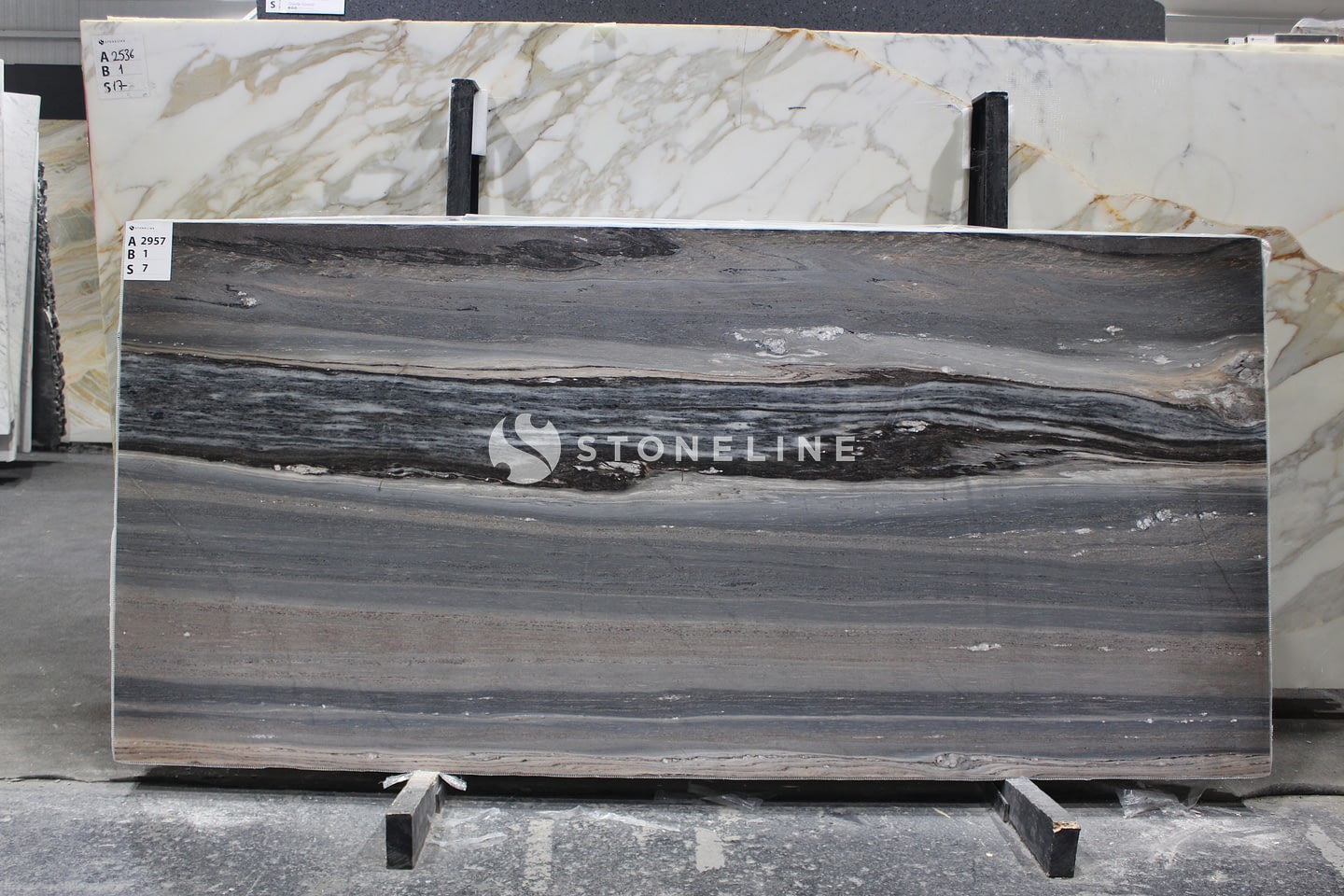 Colorado Classico is a distinguished marble from the Colorado Bronzo family, characterized by a dominant grey palette complemented by beige and brown tones. This natural stone features a polished surface with a striking horizontal and sharp veining pattern, providing a sophisticated and dynamic visual appeal. With a 2 cm thickness, Colorado Classico is suitable for a variety of interior applications including countertops, wall cladding, and flooring. Its combination of color tones and veining structure makes it an excellent choice for architectural projects seeking a refined yet natural aesthetic.