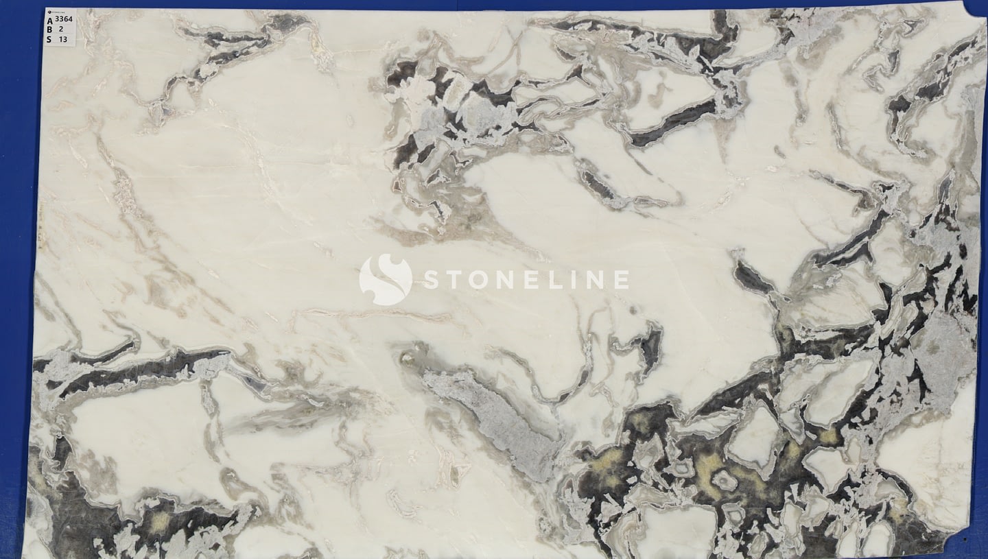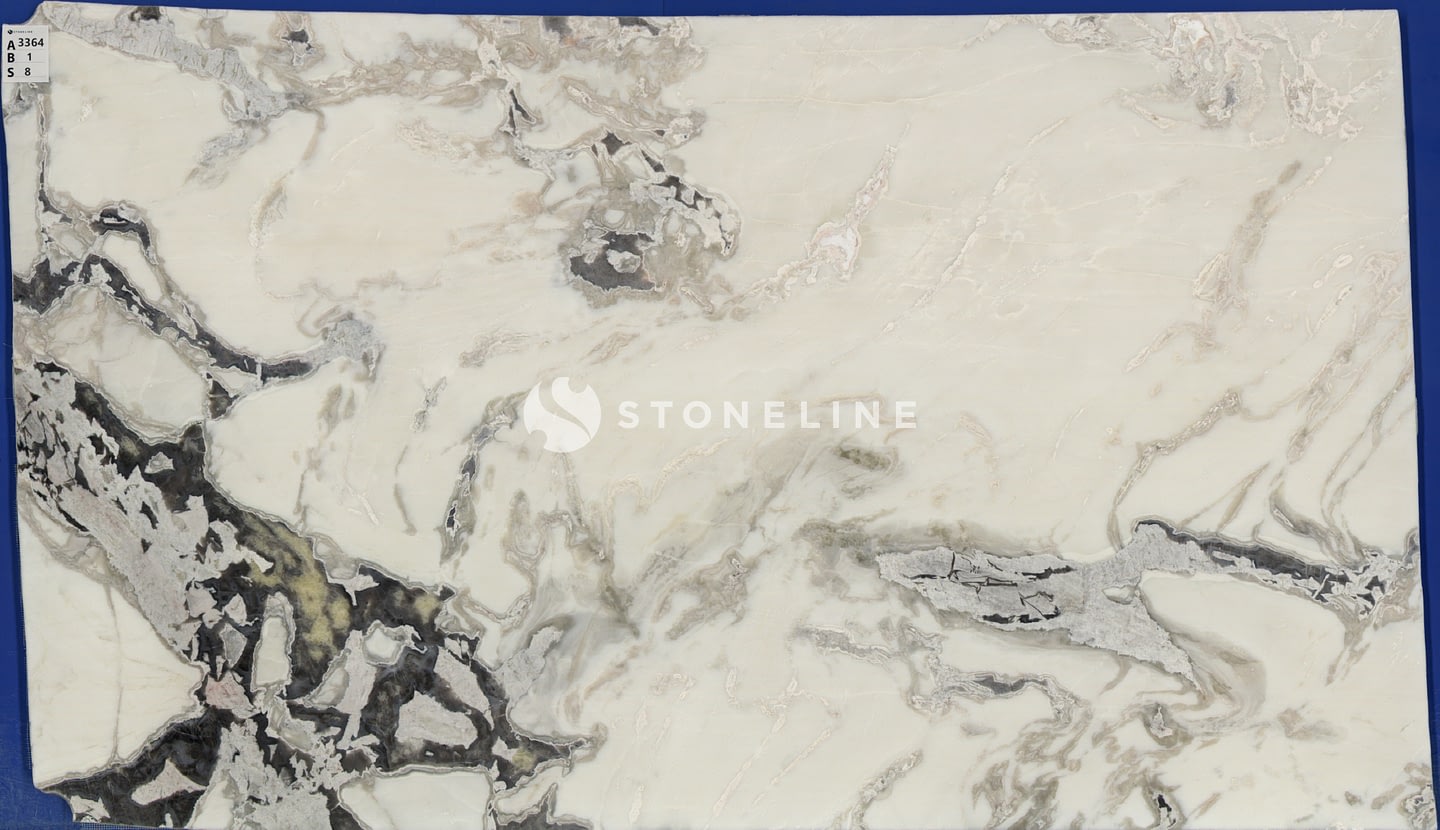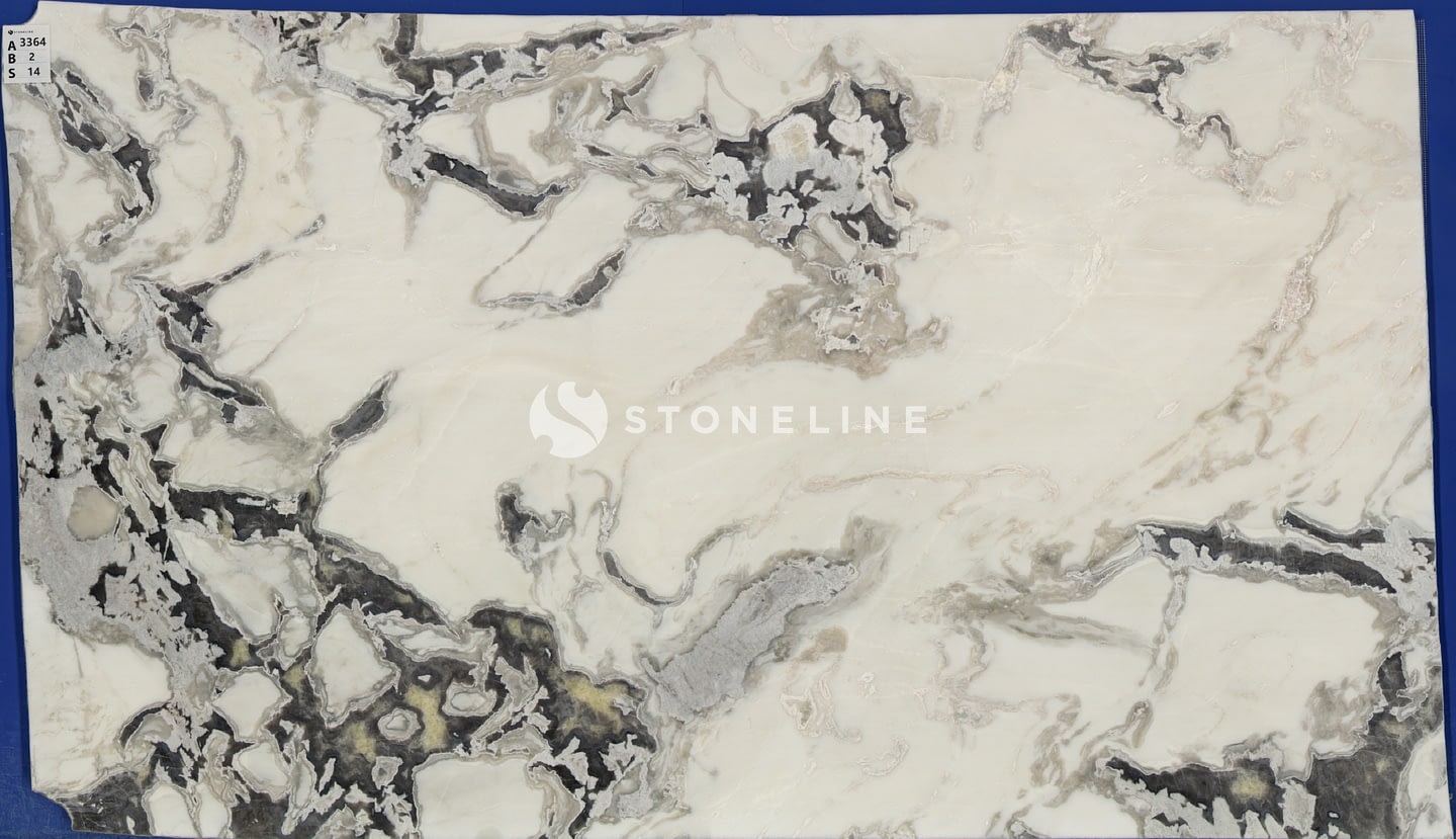 The combination of a white base with prominent grey veins, along with beige and gray undertones, offers a versatile yet distinctive look that complements modern and classic design schemes.