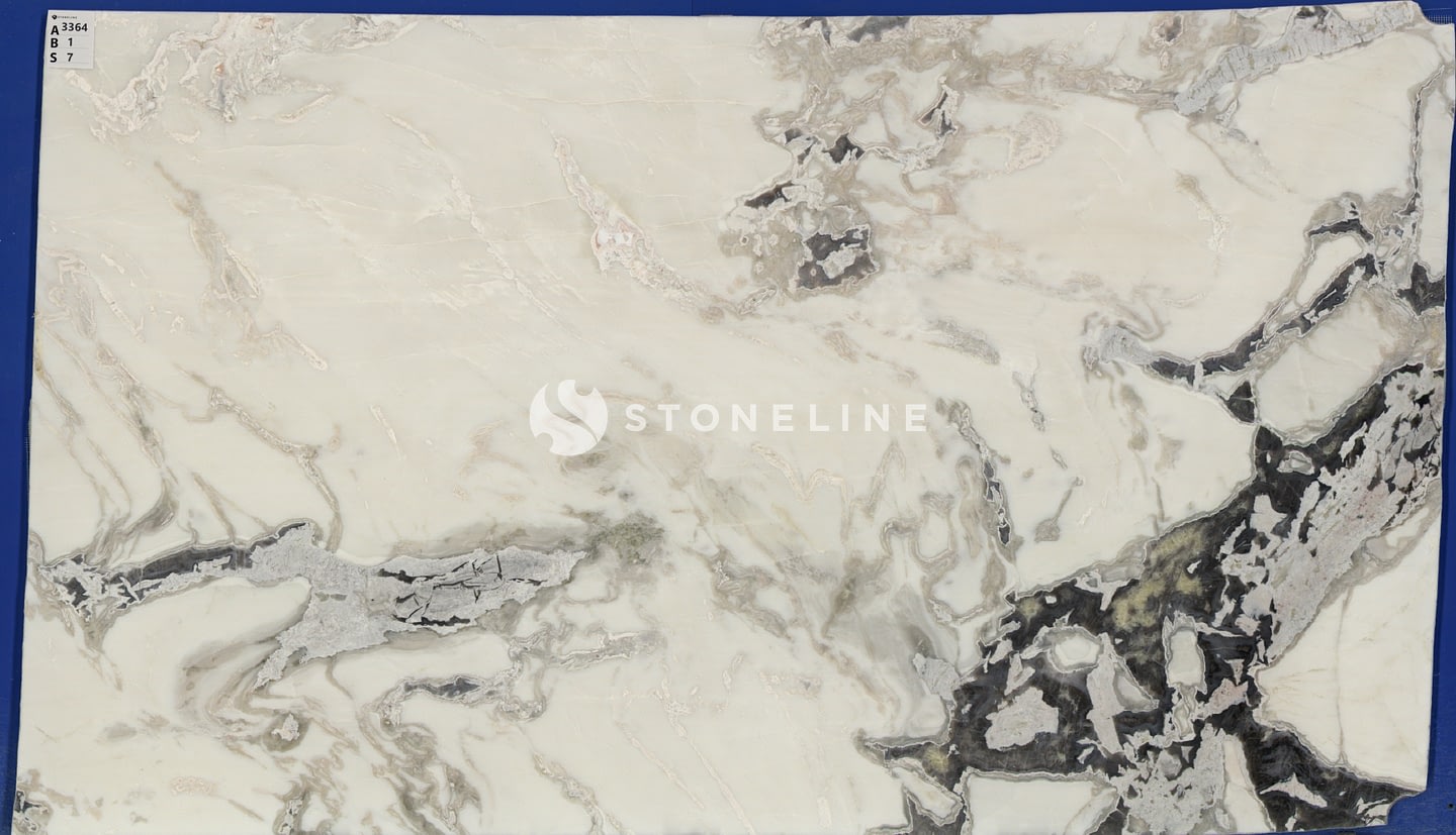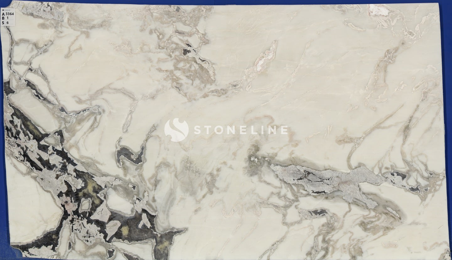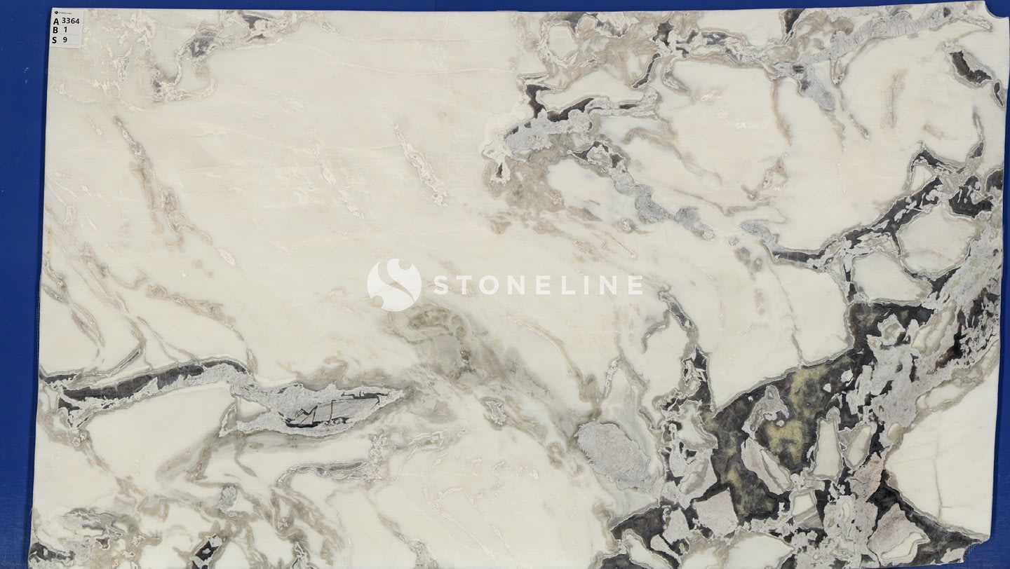 The combination of a white base with prominent grey veins, along with beige and gray undertones, offers a versatile yet distinctive look that complements modern and classic design schemes.