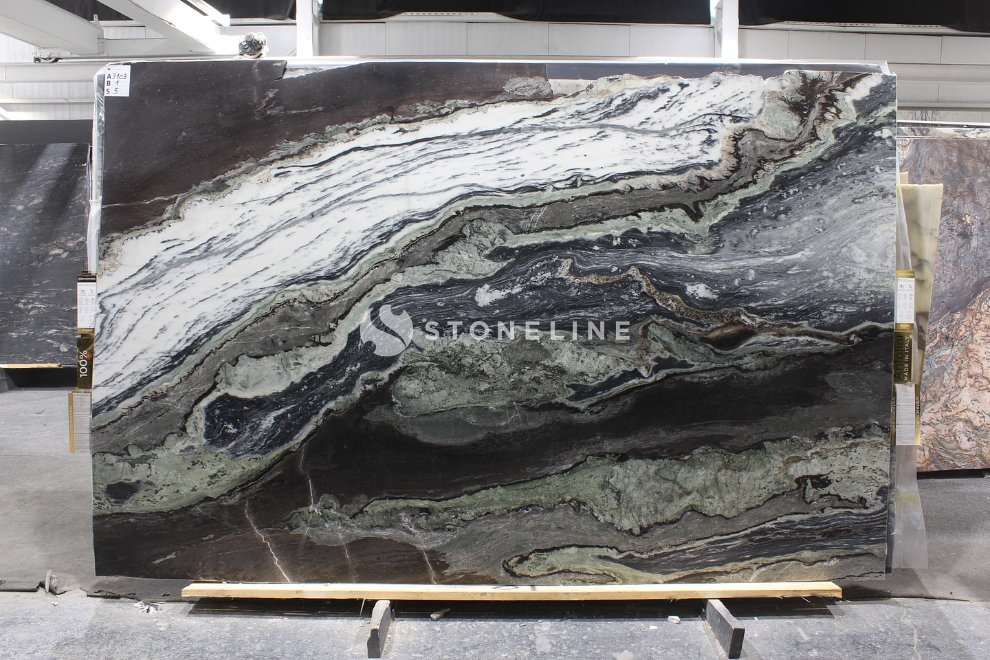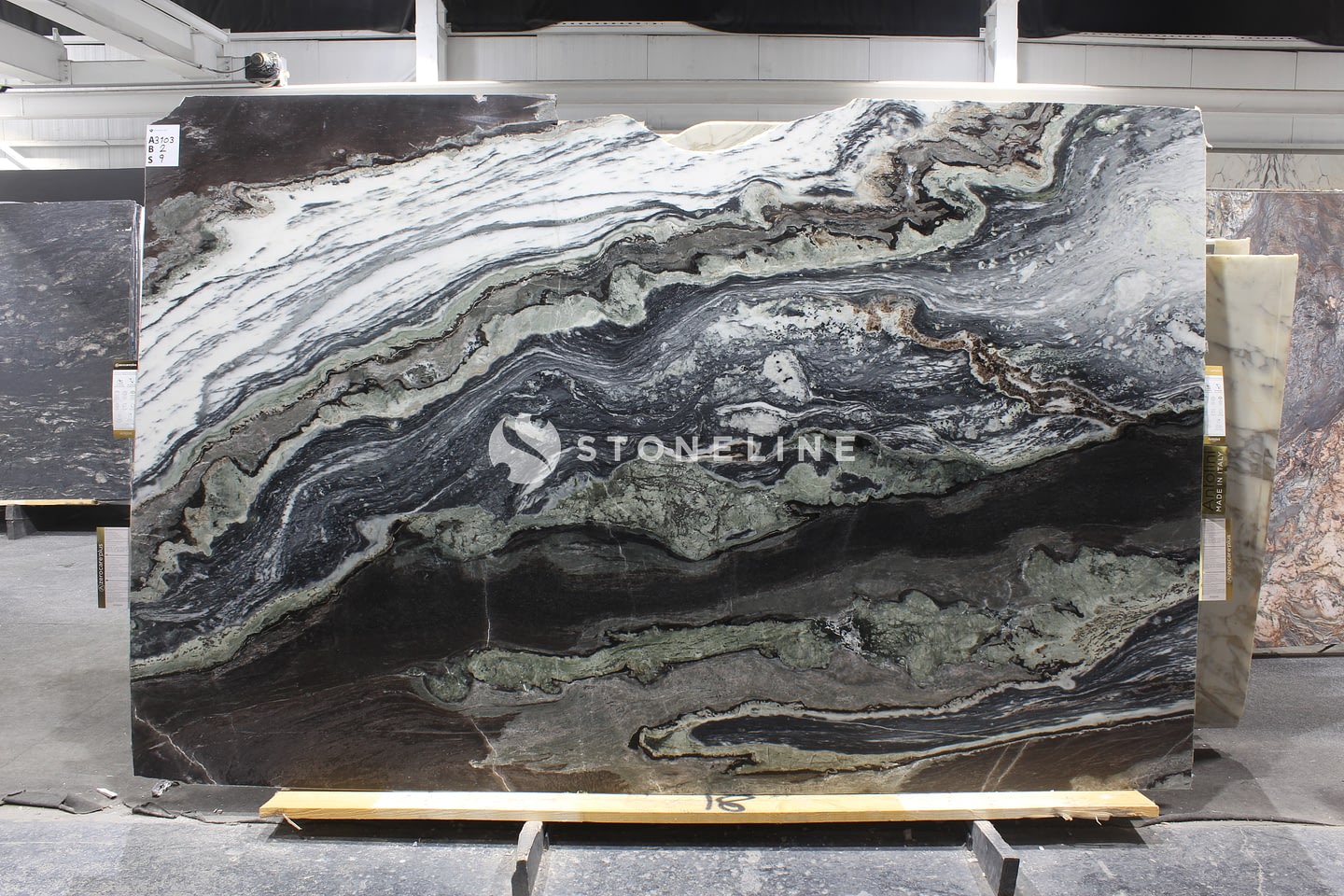 Fusion Grey Azerocare is a refined marble option characterized by its elegant linear patterns and a balanced palette blending black, green, and white hues. This 2 cm thick honed surface delivers a matte finish that enhances the stone’s natural texture, providing a sophisticated yet understated aesthetic suitable for creating luminous and spacious interiors. Treated with the Azerocare method, this marble offers enhanced protection against acid-based stains for up to 8 hours, significantly improving its durability and maintenance profile. Ideal for use in both residential and commercial projects, Fusion Grey Azerocare combines aesthetic versatility with practical performance, making it a superior choice for countertops, wall cladding, and flooring applications that demand both beauty and resilience.