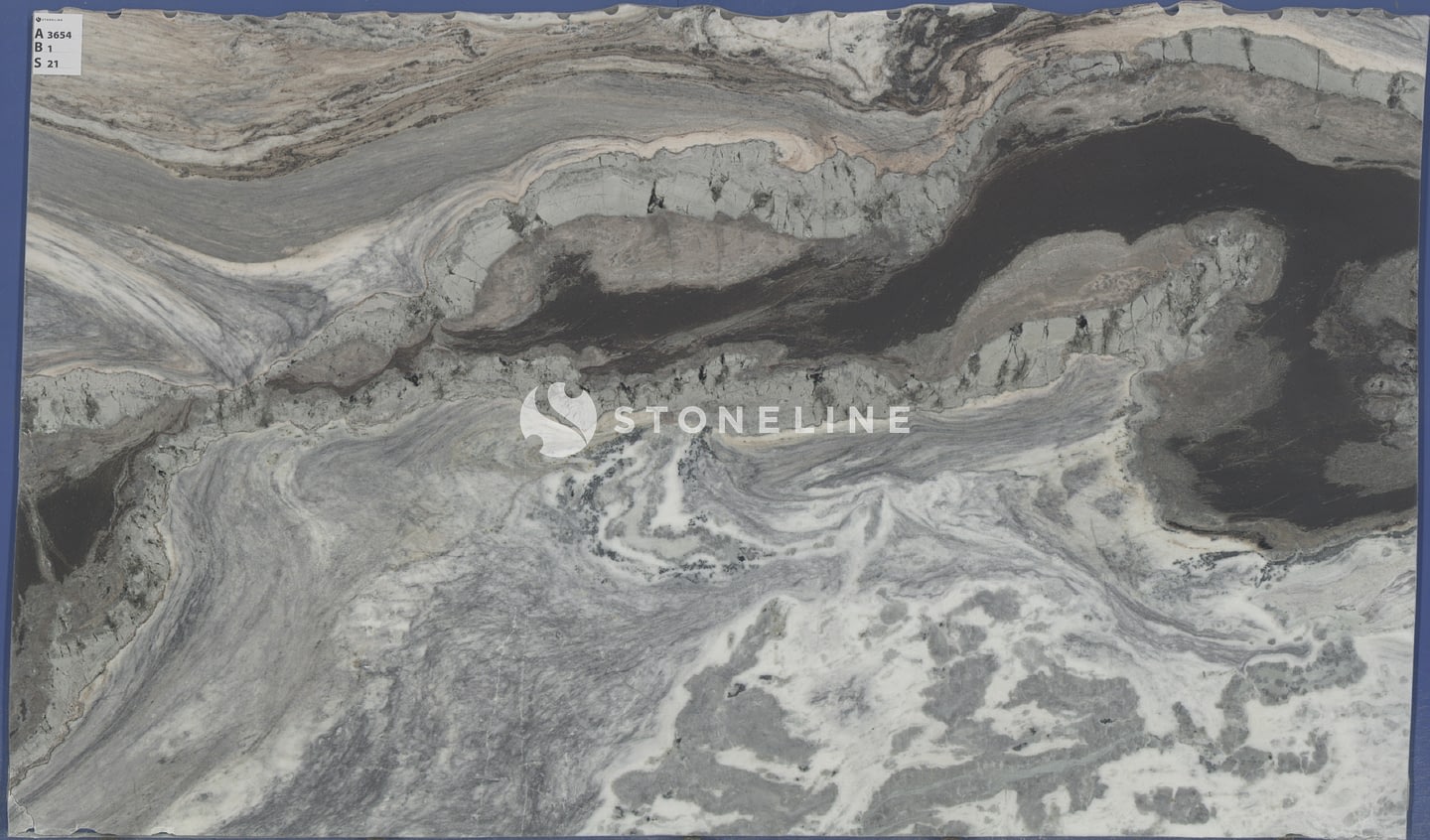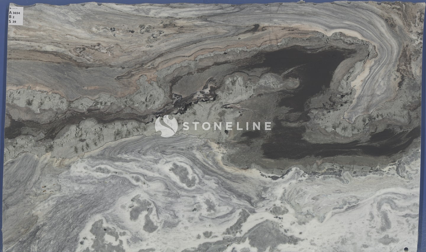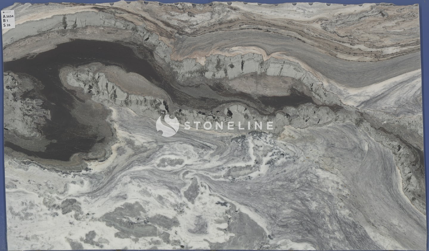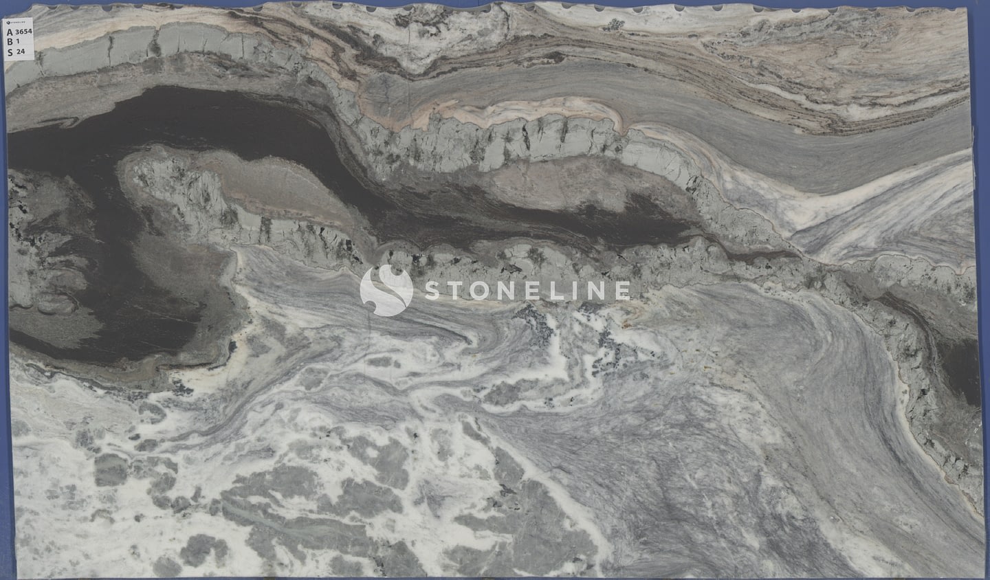 The FUSION GREY marble is available in 2 cm thick slabs, suitable for countertops, flooring, and wall applications.