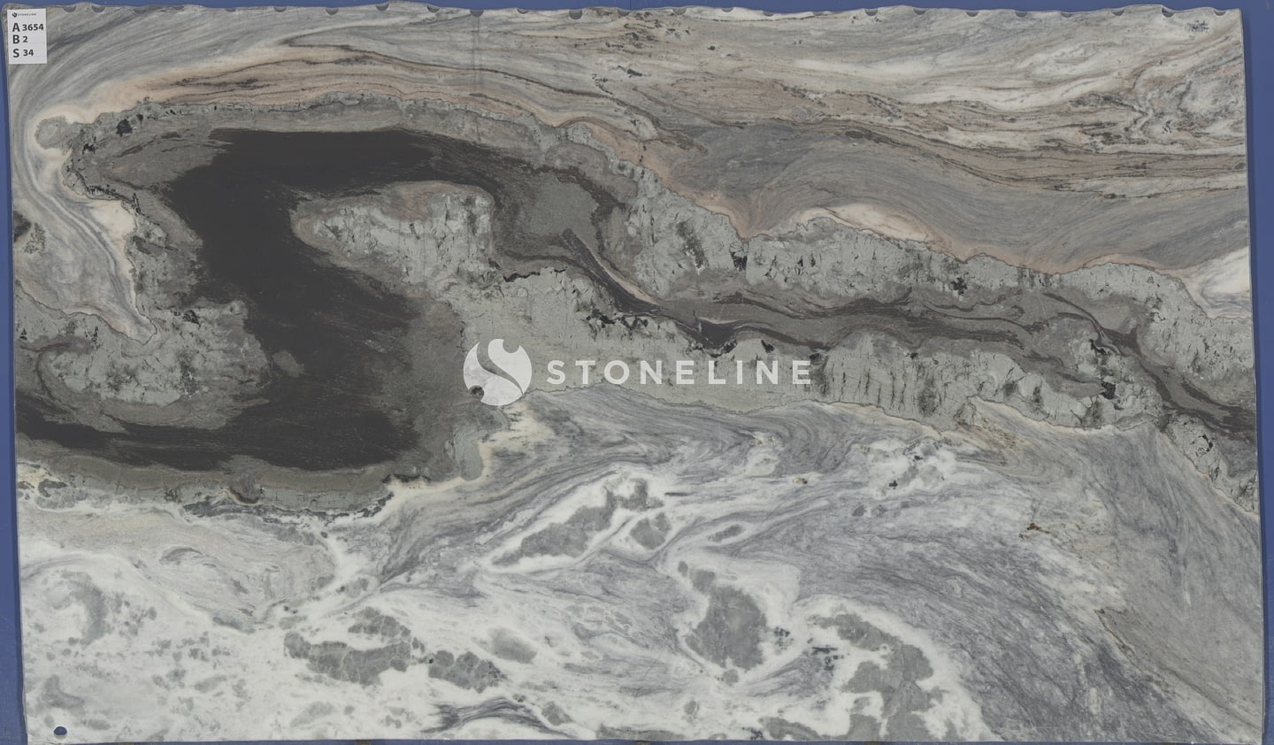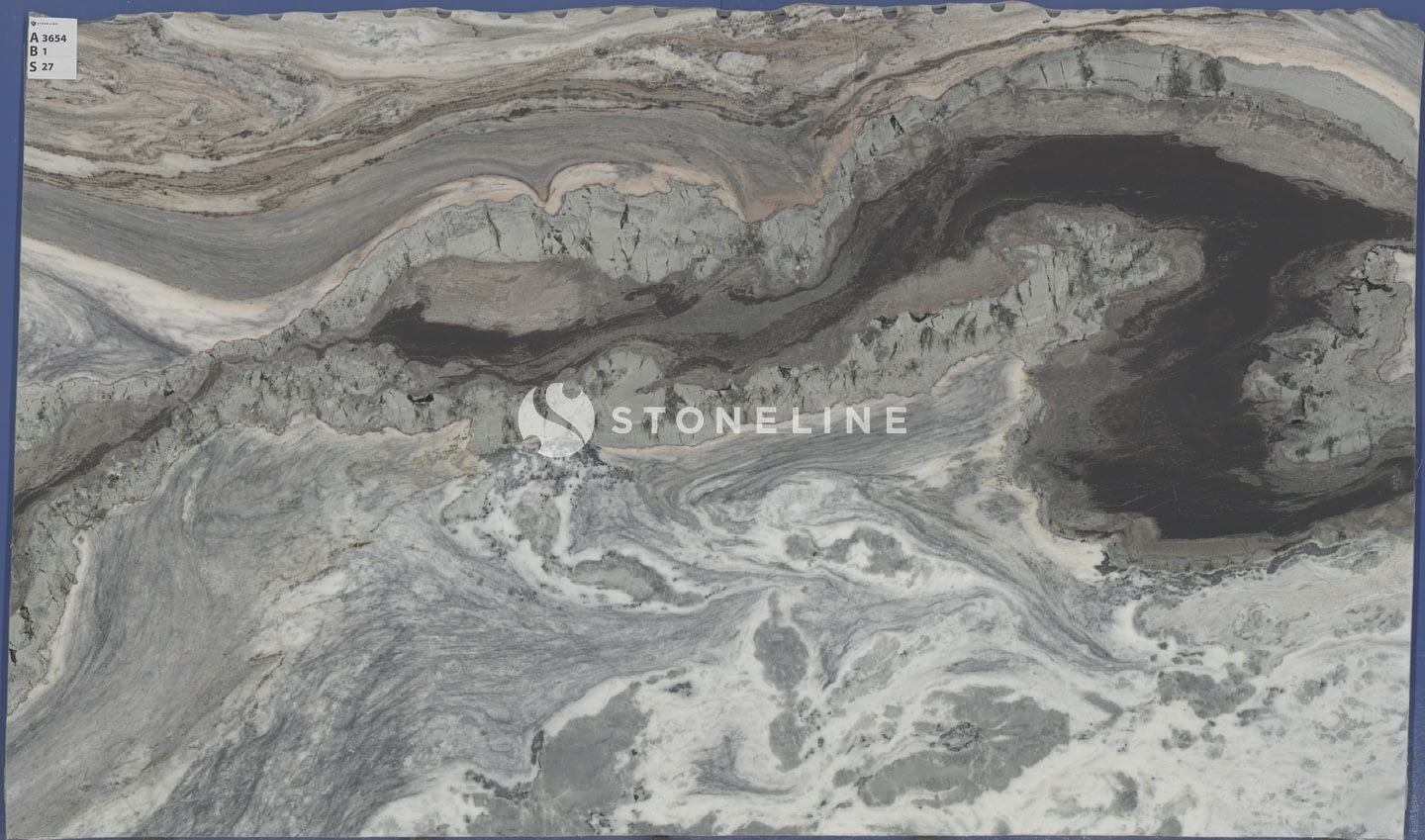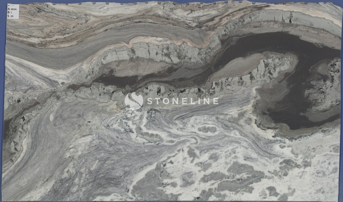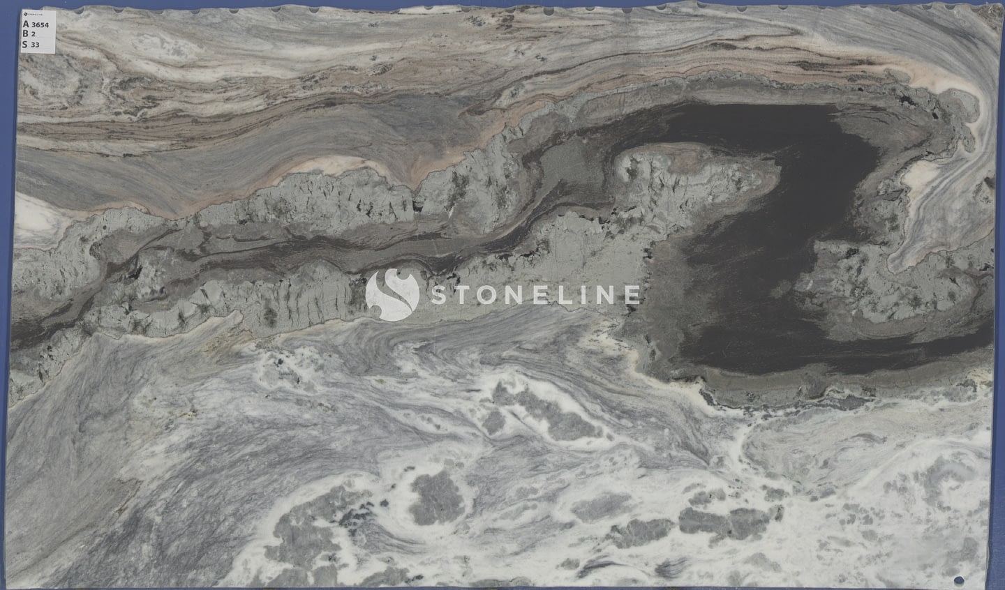 The FUSION GREY marble is available in 2 cm thick slabs, suitable for countertops, flooring, and wall applications.