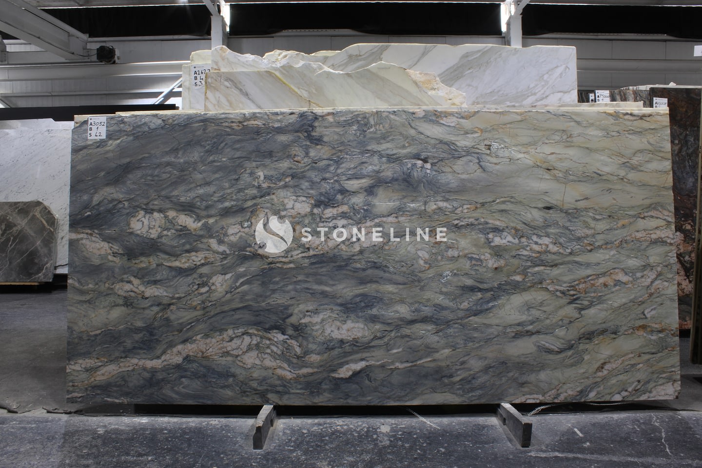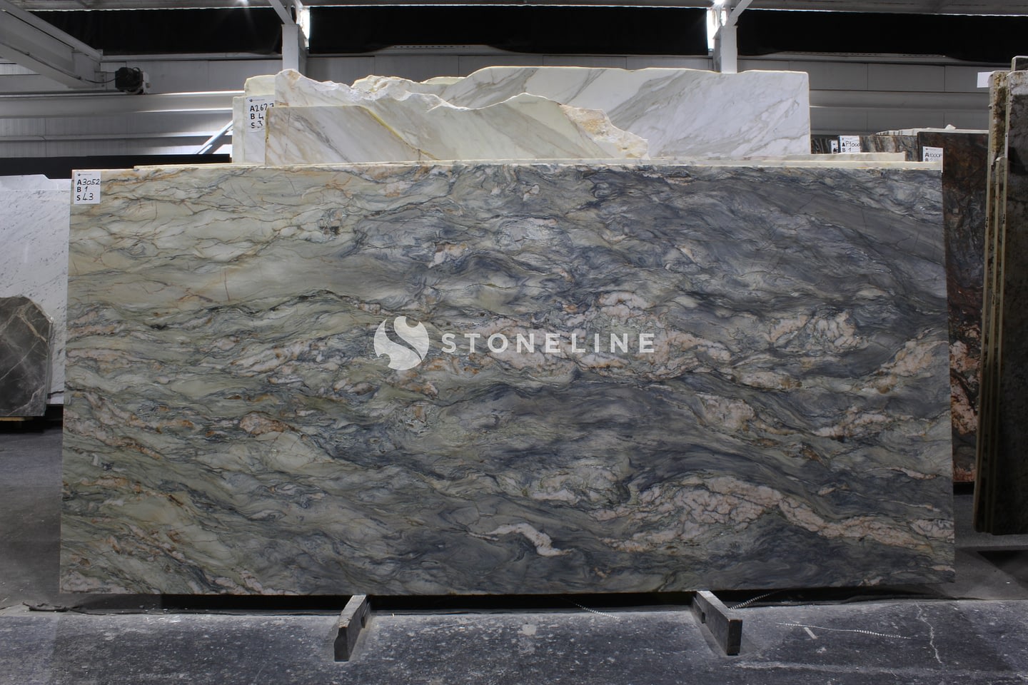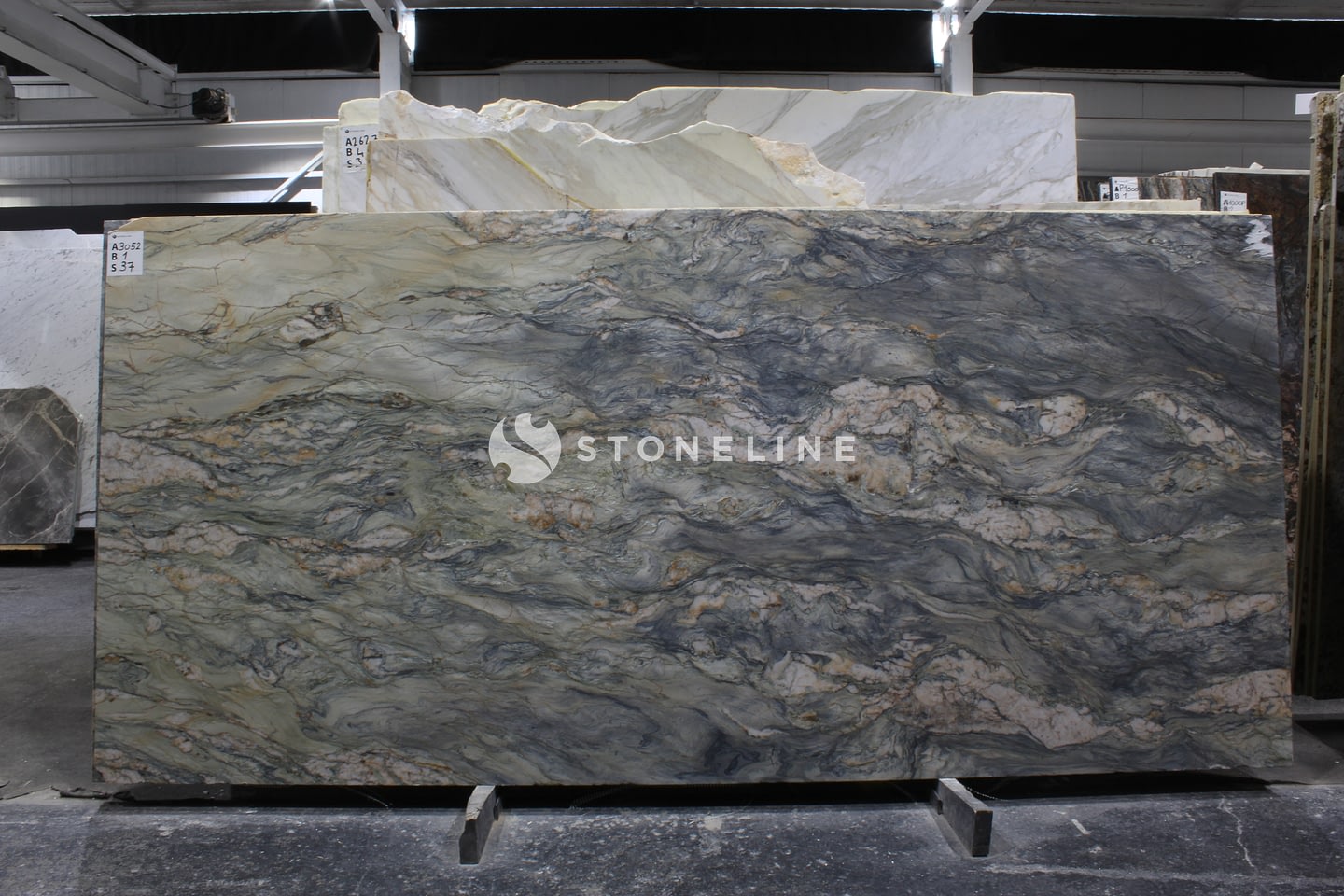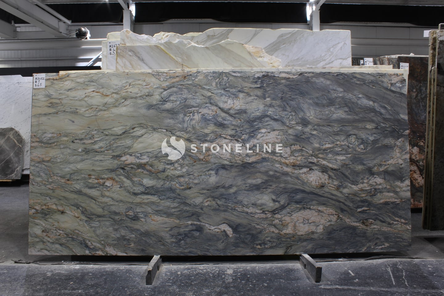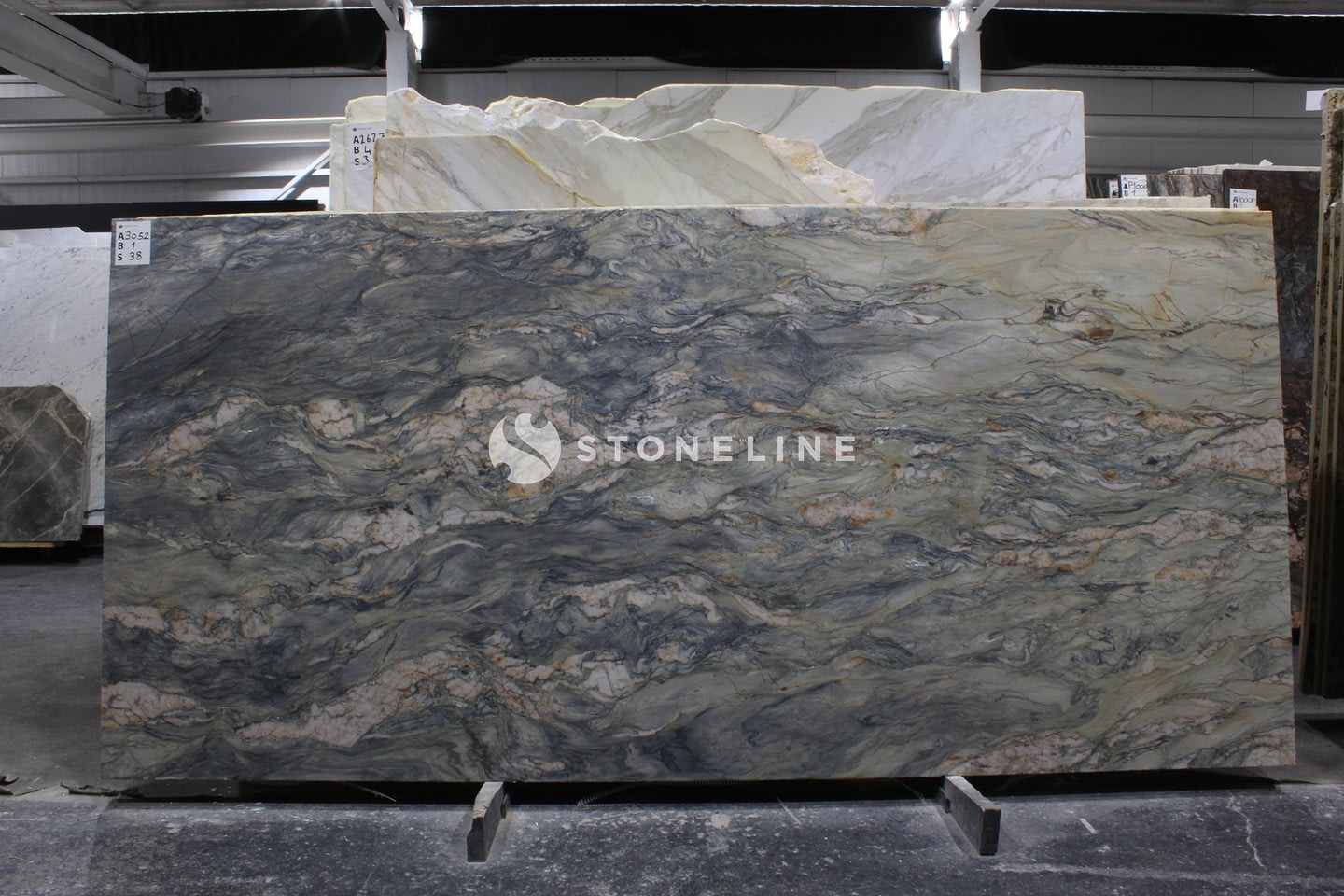 This quartzite slab comes in two thickness options: 1.3 cm and 2 cm, suitable for a variety of applications.