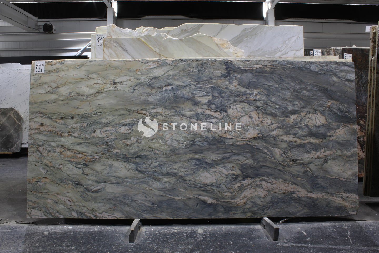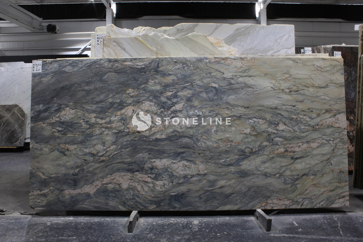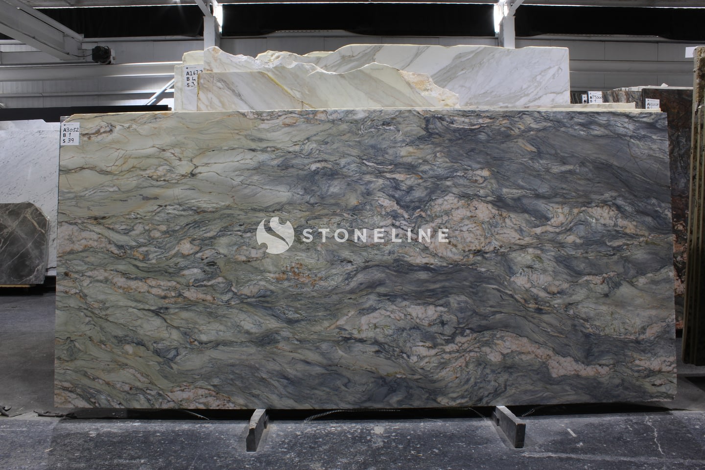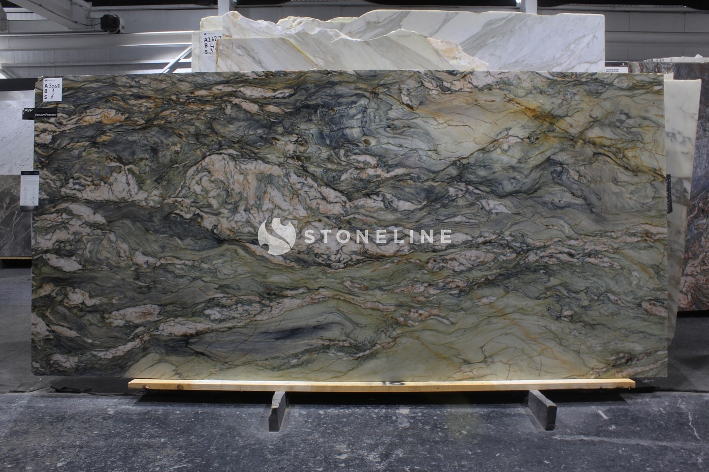 This quartzite slab comes in two thickness options: 1.3 cm and 2 cm, suitable for a variety of applications.