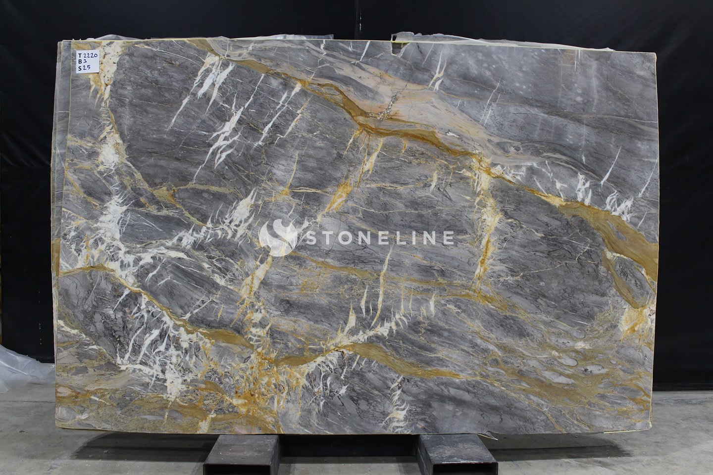 The GREY ODYSSEY slabs are supplied in a 2 CM thickness, which is standard for marble applications including flooring and countertops.