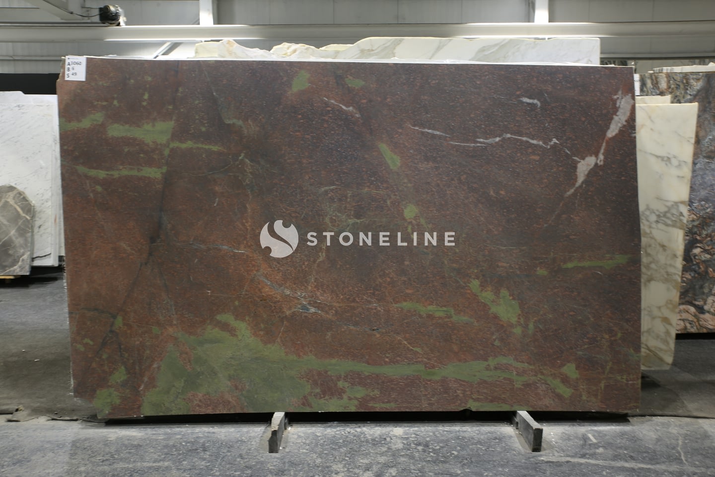 MARULA is a premium quartzite stone characterized by its distinctive vein texture, red and purple color palette. Available in a 2 cm thickness with Hydrofinish and Leatherfinish surface options, this natural stone offers exceptional durability and versatility for both indoor and outdoor applications. Its robust composition makes it ideal for flooring, wall cladding, and kitchen countertops, providing a sophisticated and authentic look to architectural and interior design projects. MARULA’s unique texture and color variations allow it to blend seamlessly into diverse environments while ensuring long-lasting performance under daily use.