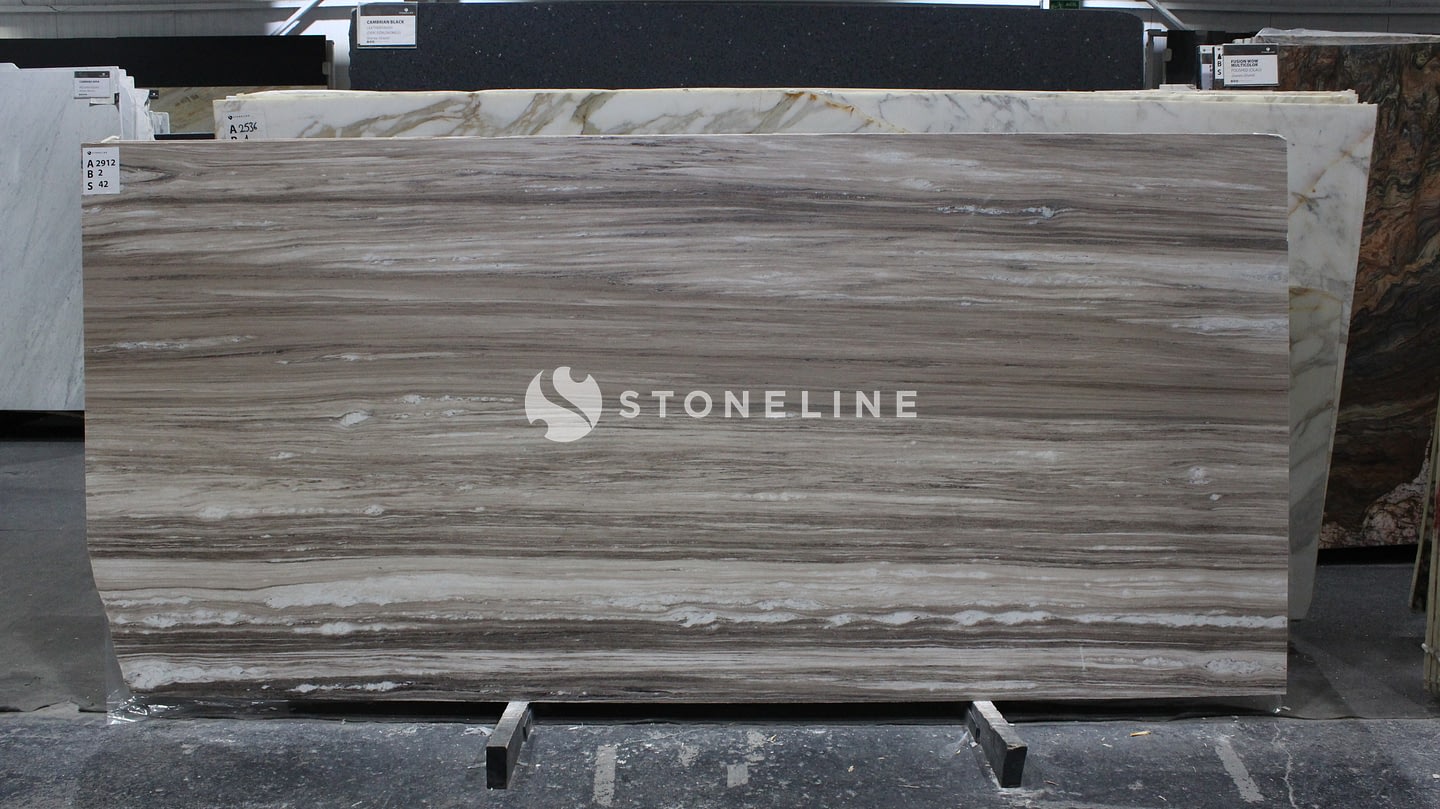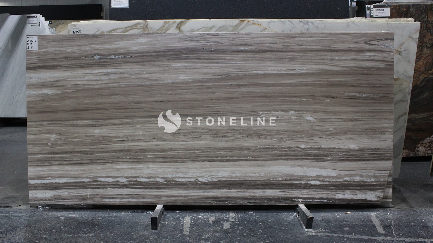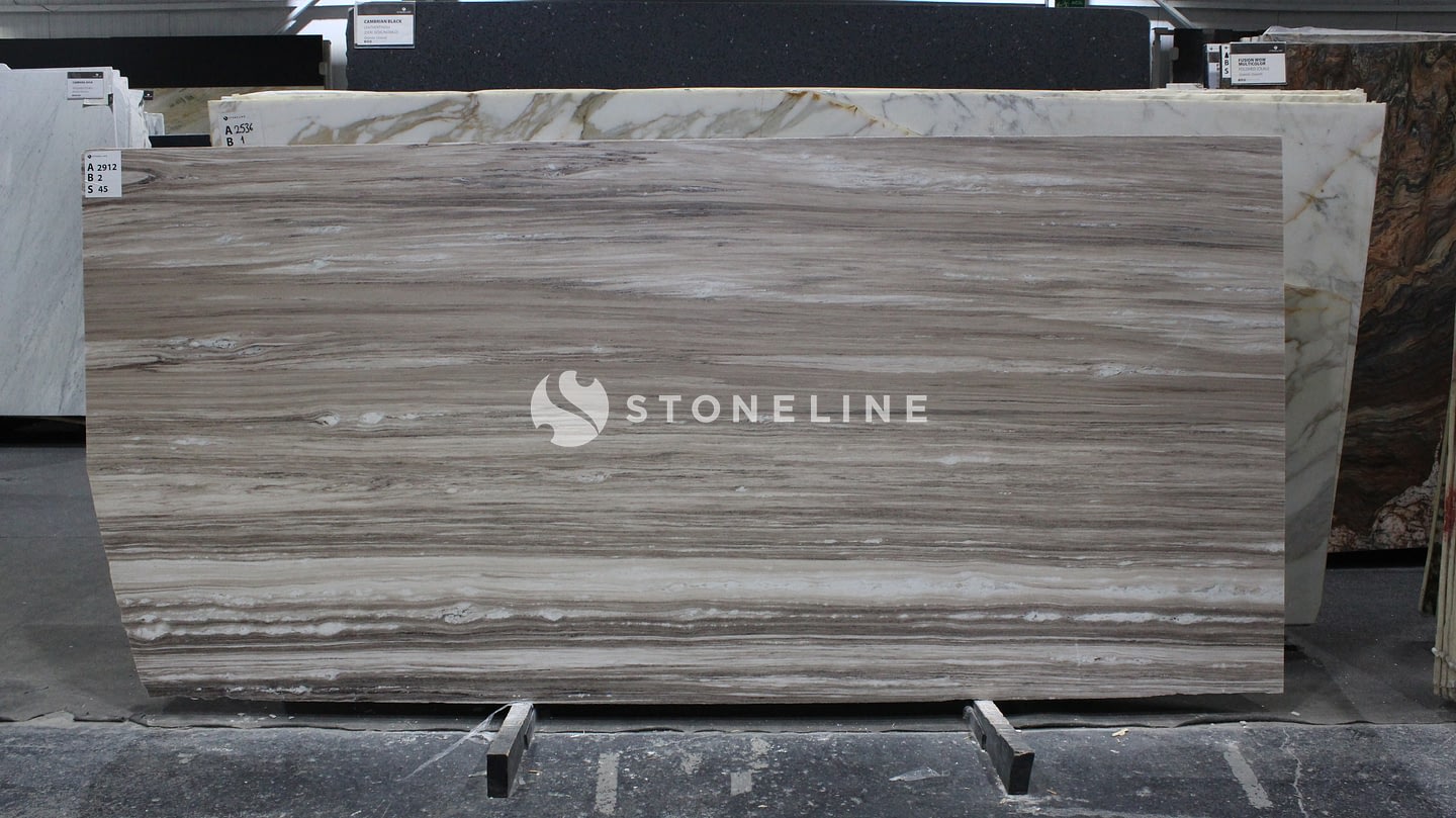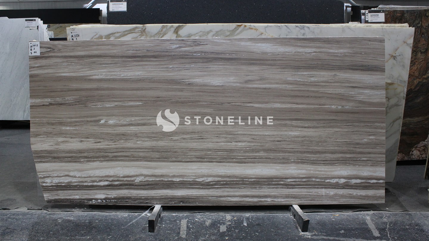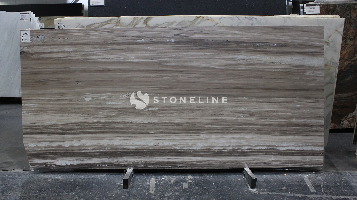 PALISSANDRO EXTRA is an exquisite marble characterized by its distinctive horizontal parallel veining, where earthy tones of beige and brown interplay harmoniously. This polished 2 cm thick marble slab showcases a natural elegance suited for sophisticated architectural and interior design projects. Its warm color palette and refined texture make it ideal for applications such as countertops, wall cladding, flooring, and feature accents where a durable yet visually striking surface is desired. The consistent veining pattern enhances spatial continuity, offering a timeless aesthetic that complements a wide range of design styles.