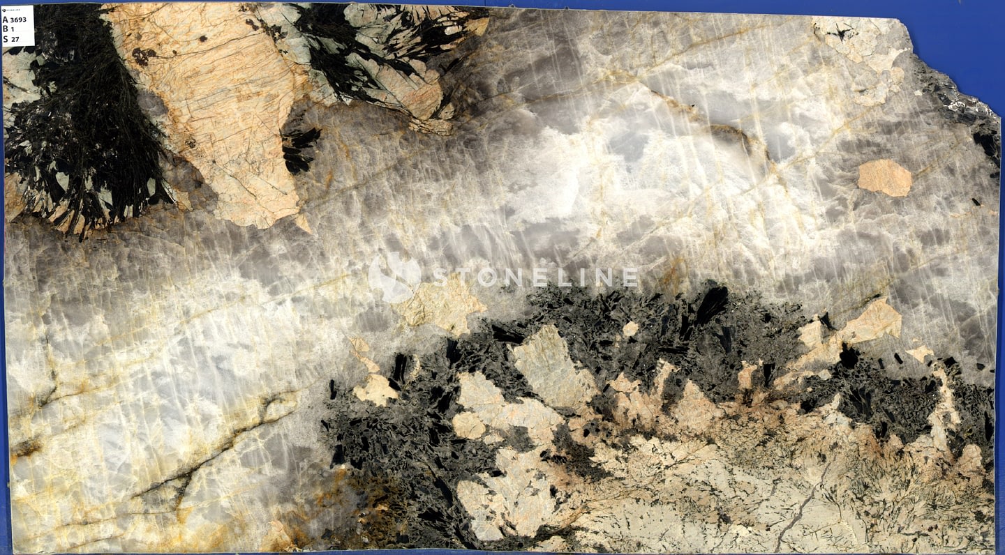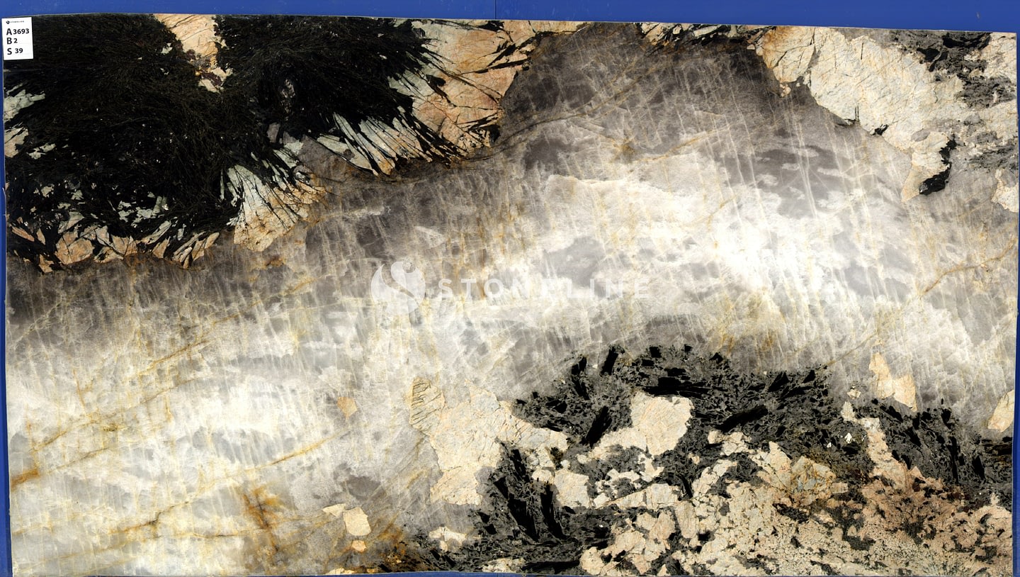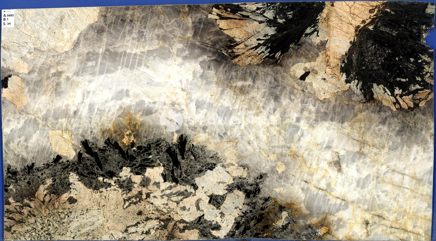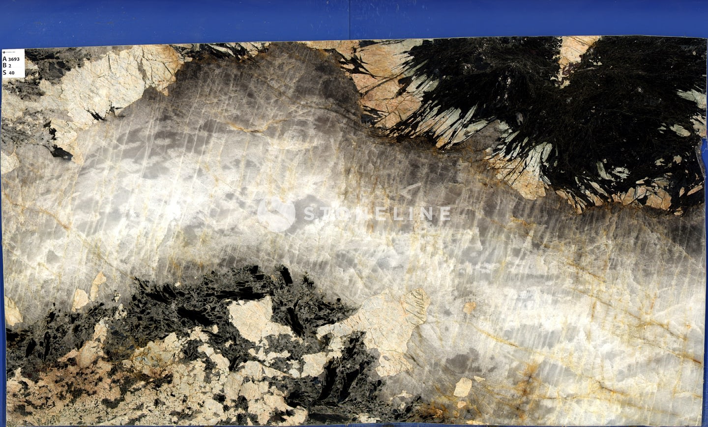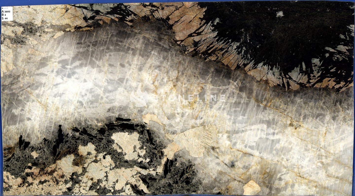 Patagonia Tourmaline Quartzite is one of nature’s most dramatic and artistic stone formations. Striking patches of icy white quartz intertwine with deep black tourmaline crystals and warm-toned mineral transitions, creating a sculptural, three-dimensional appearance. Every slab is truly one of a kind—its bold contrasts, crystal luminosity, and organic fracture patterns give it an unmistakable visual identity.