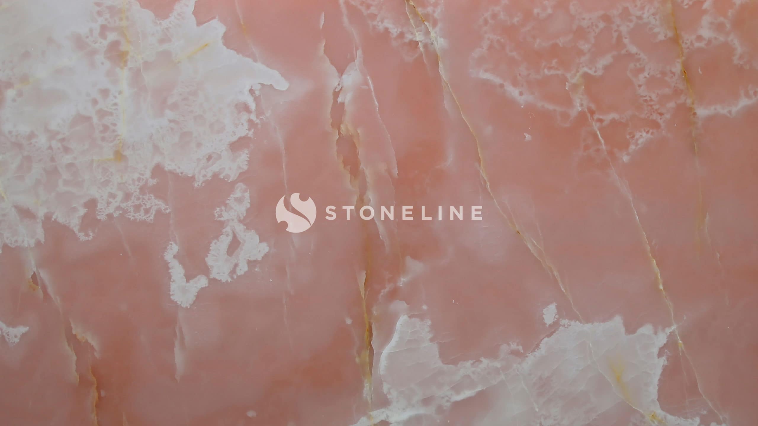 PINK ONYX features striking pink coloration combined with natural translucency, allowing light to pass through and create luminous, decorative effects. It is prized for its elegant aesthetics and suitability for sophisticated interior design projects.