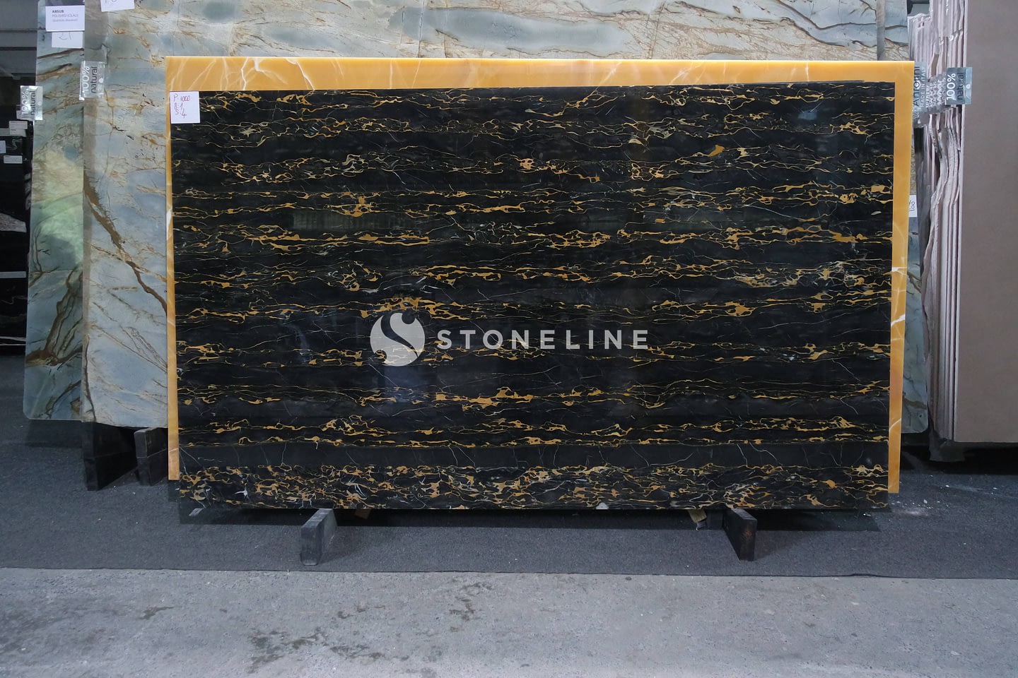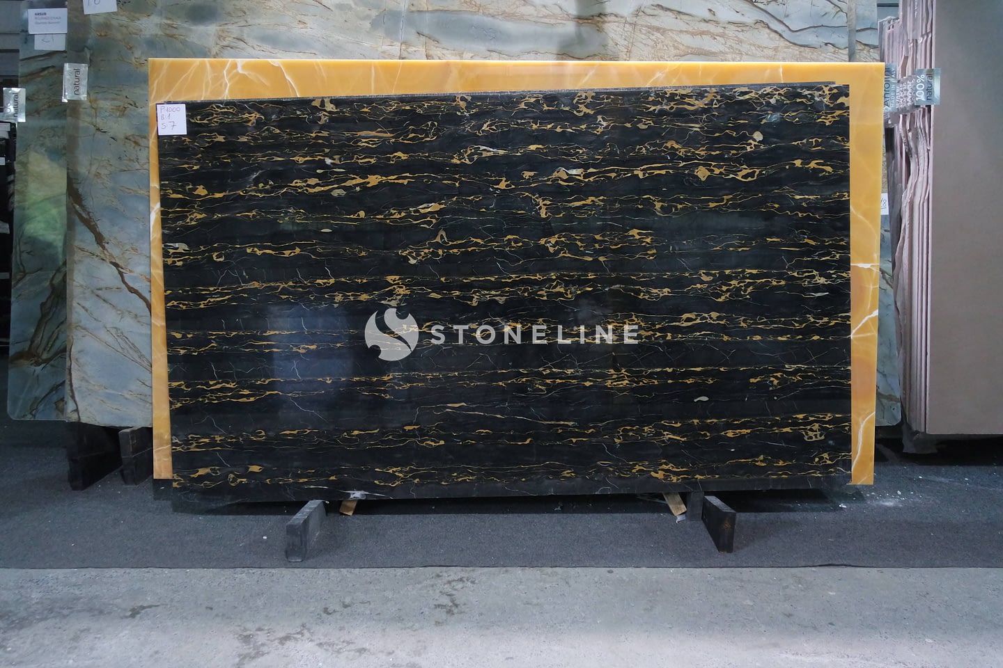 PORTORO GOLD is a luxurious marble distinguished by its deep black polished surface accented with striking yellow veins. Renowned for its elegant and timeless appearance, this natural stone is favored in prestigious architectural and interior design projects. With a 2 cm thickness and a refined polished finish, PORTORO GOLD offers both durability and a high-gloss sheen that enhances its dramatic veining. Ideal for a variety of applications including wall cladding, flooring, and premium table tops, this marble brings sophistication and a bold visual statement to any space. Its rich contrast and reflective quality make it a perfect choice for designs aiming for an upscale and refined aesthetic.