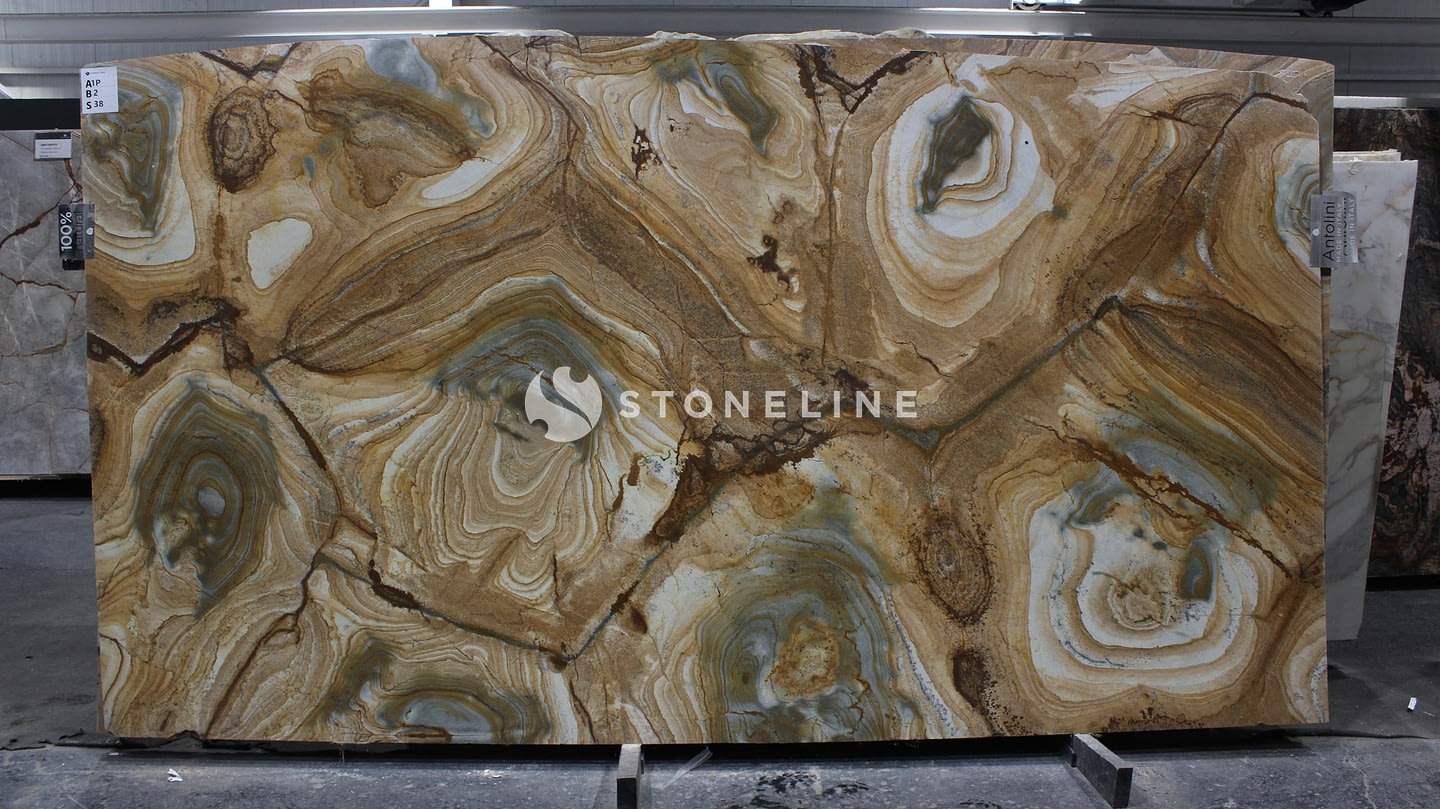 The STONEWOOD quartzite slabs come in a standard thickness of 2 centimeters.