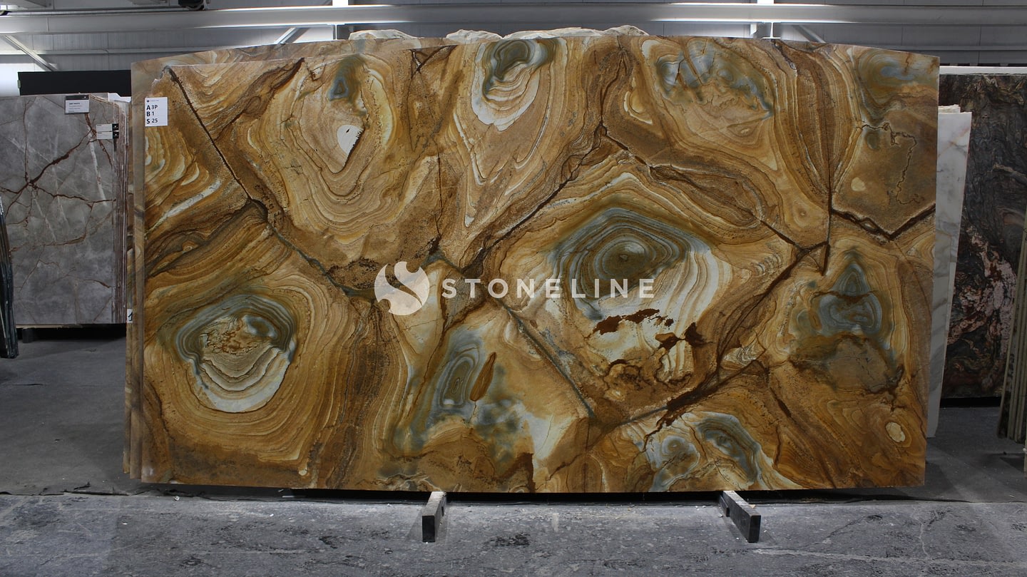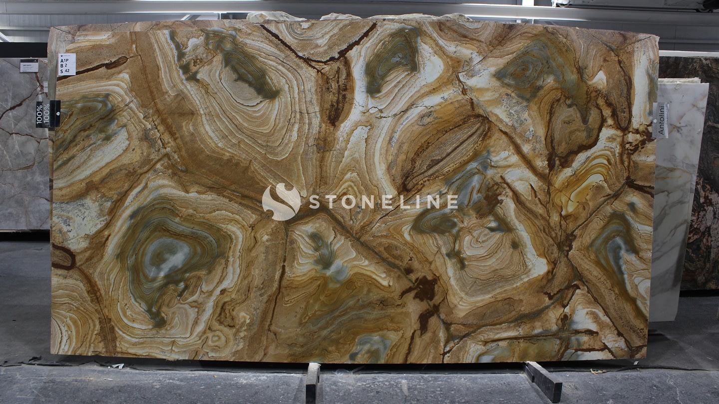 STONEWOOD is a premium quartzite distinguished by its rich brown hues and visually dynamic patterns, making it an ideal choice for sophisticated architectural and interior design applications. Available in 2 cm thickness, this natural stone offers both leatherfinish and polished surface options, providing versatility to suit diverse aesthetic preferences and functional needs. Its exceptional durability and resistance make STONEWOOD suitable for high-traffic areas such as countertops, wall cladding, and flooring. The warm color palette and unique texture of STONEWOOD bring an artistic and inviting ambiance to any space, enhancing both residential and commercial projects with a natural yet refined character.