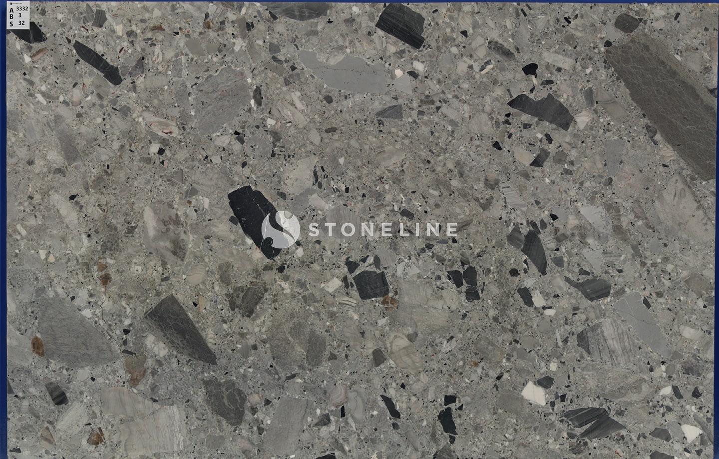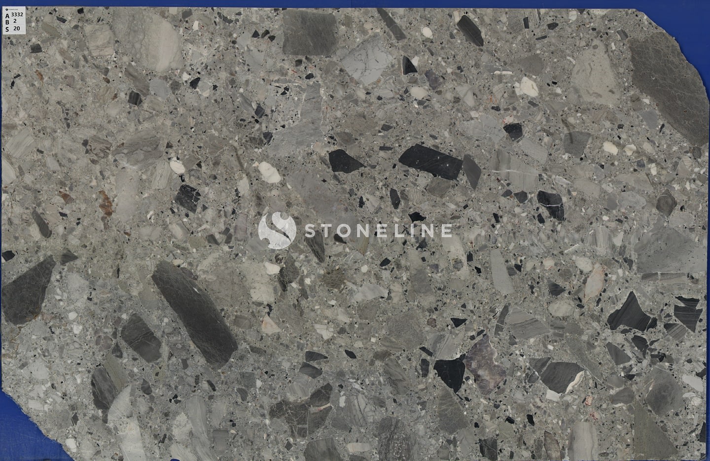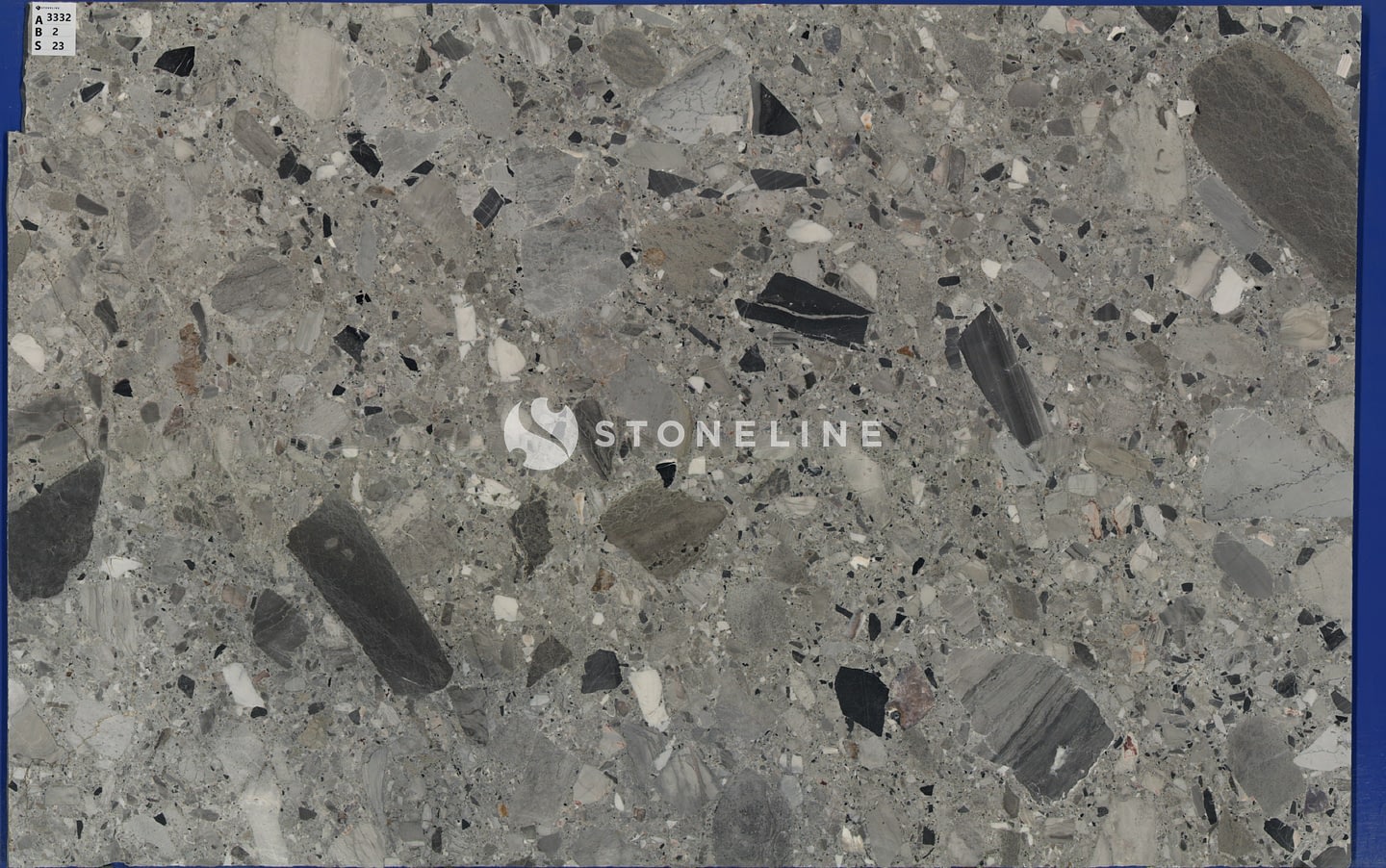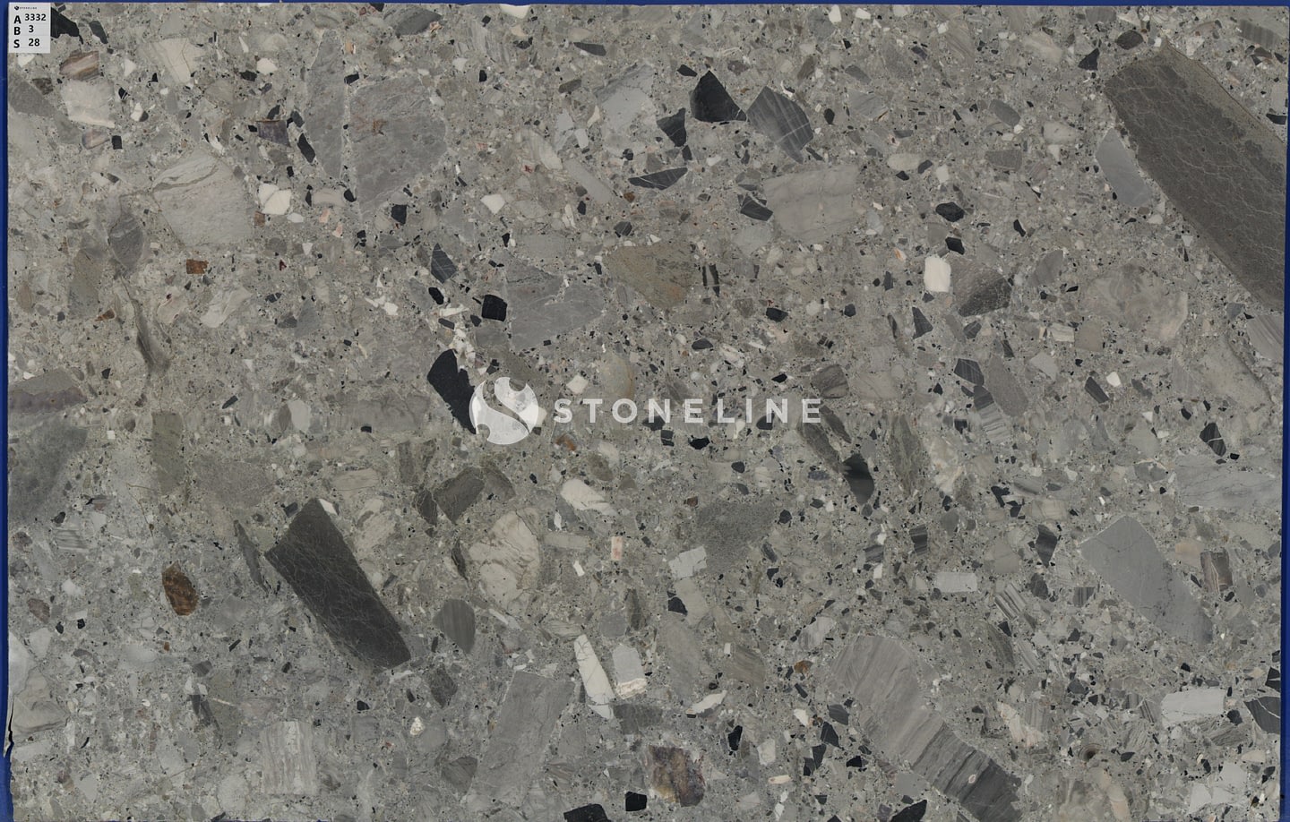 SUPER CEPPO is offered with a 2 cm thick surface and a polished finish, providing a smooth, reflective appearance that enhances the stone’s natural gray color and distinctive pattern.