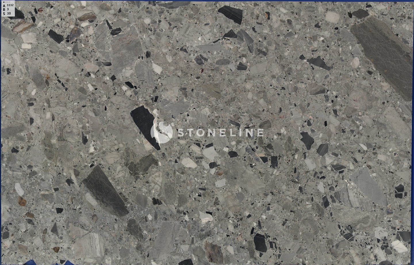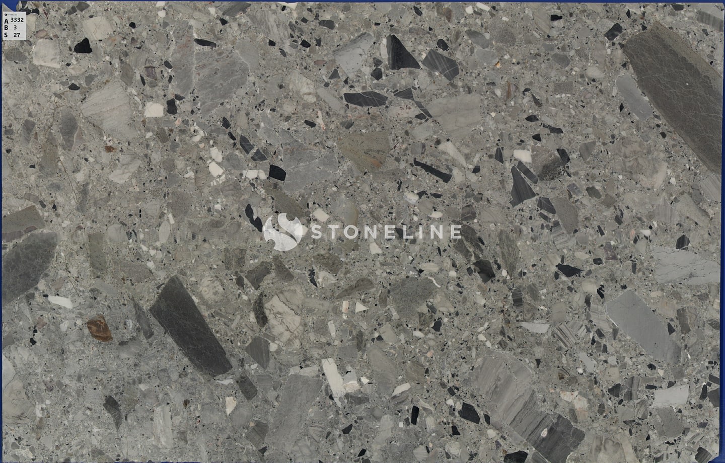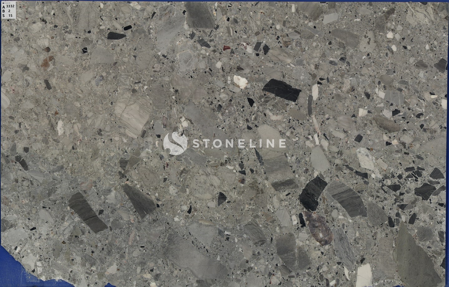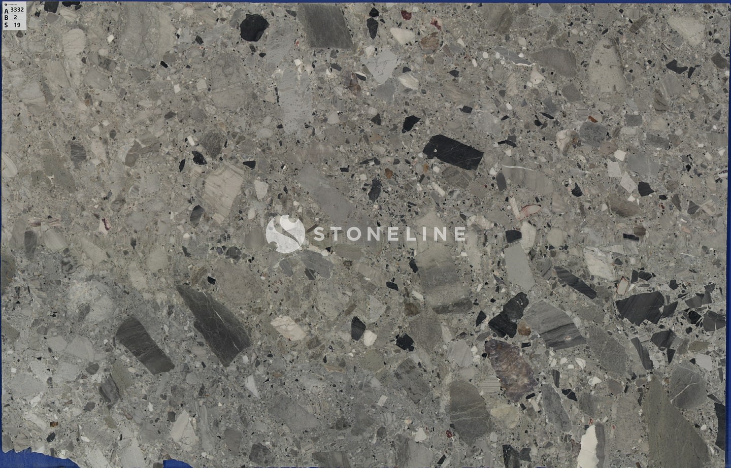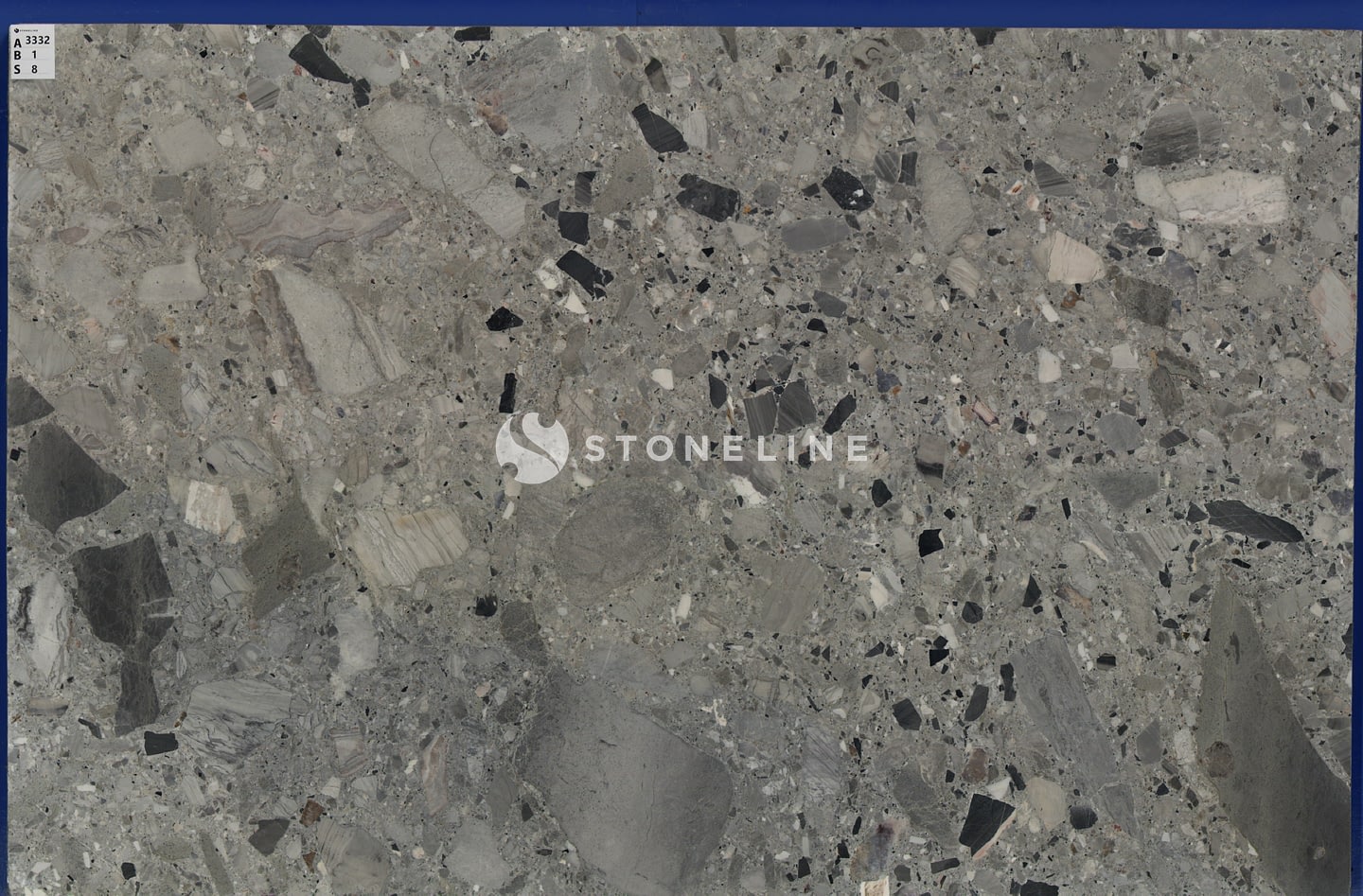 SUPER CEPPO is offered with a 2 cm thick surface and a polished finish, providing a smooth, reflective appearance that enhances the stone’s natural gray color and distinctive pattern.