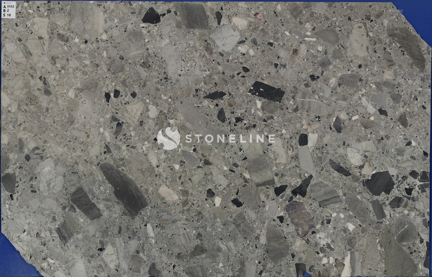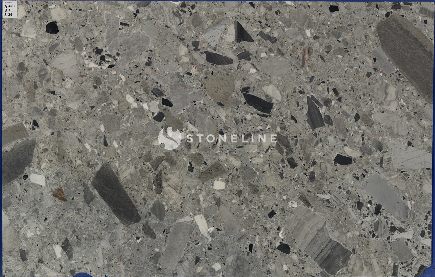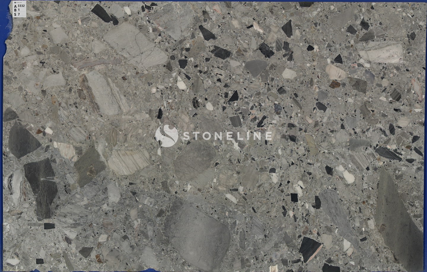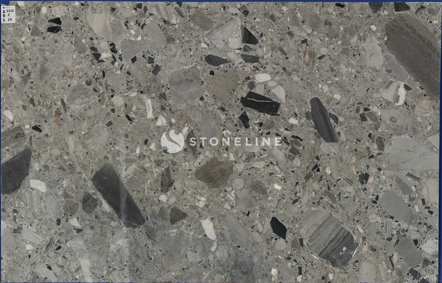 SUPER CEPPO is offered with a 2 cm thick surface and a polished finish, providing a smooth, reflective appearance that enhances the stone’s natural gray color and distinctive pattern.