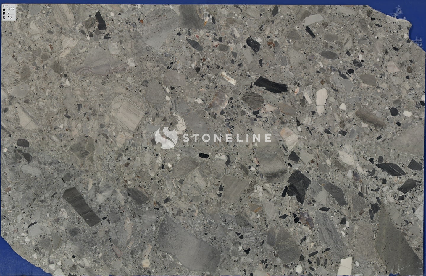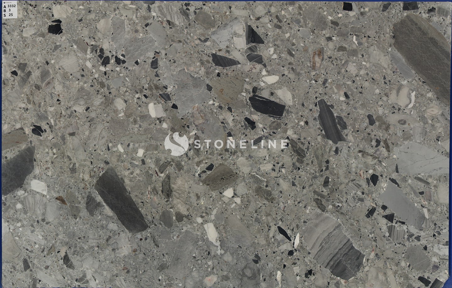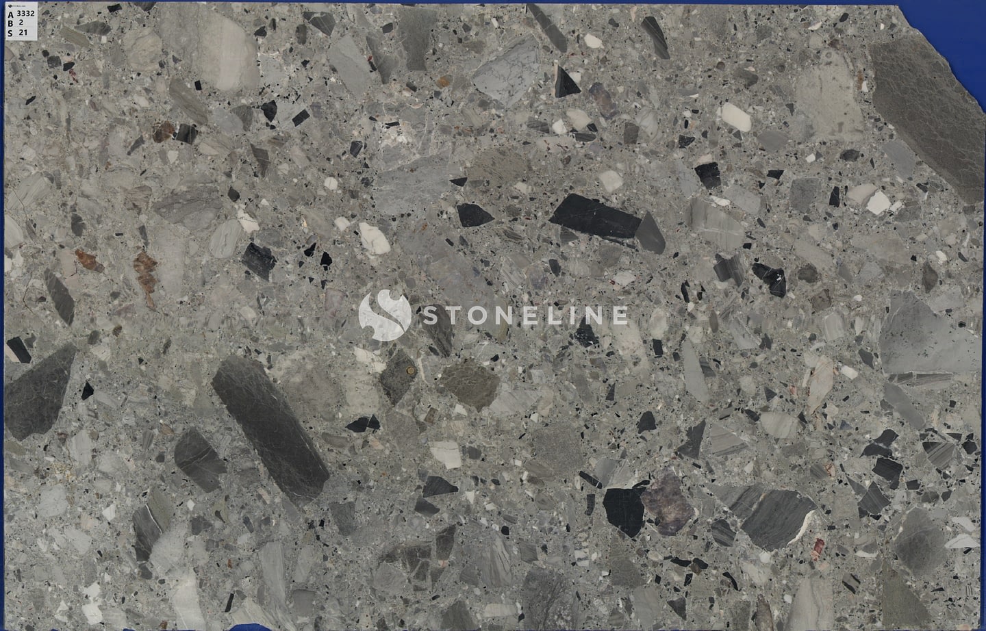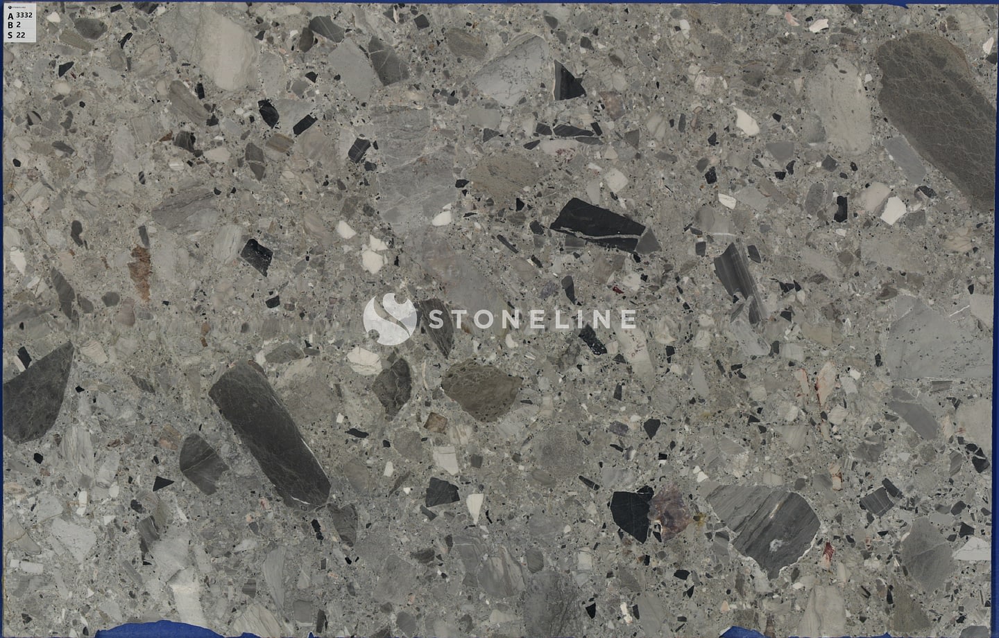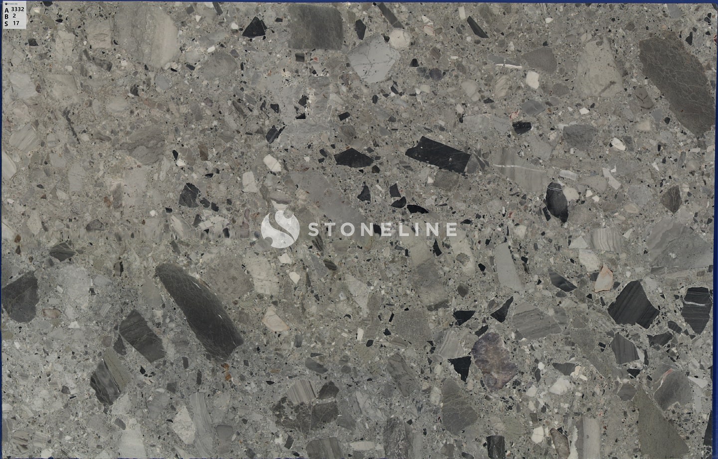 SUPER CEPPO is offered with a 2 cm thick surface and a polished finish, providing a smooth, reflective appearance that enhances the stone’s natural gray color and distinctive pattern.