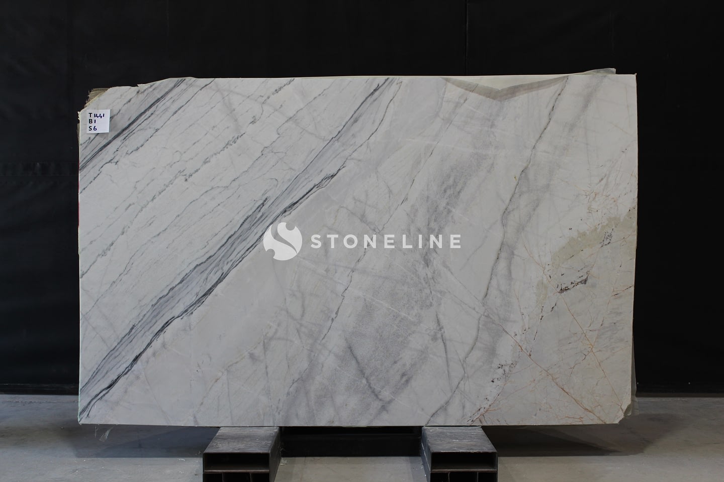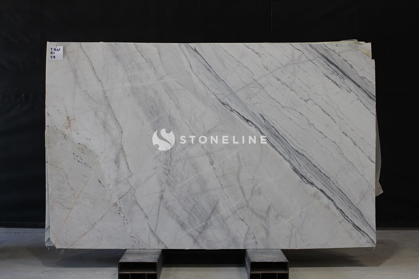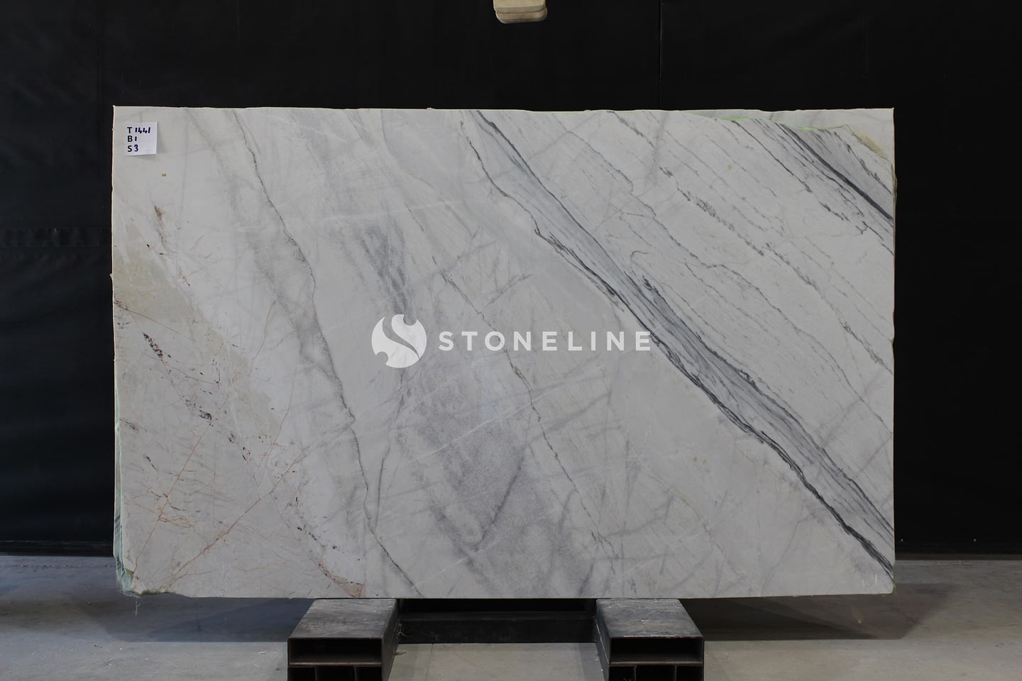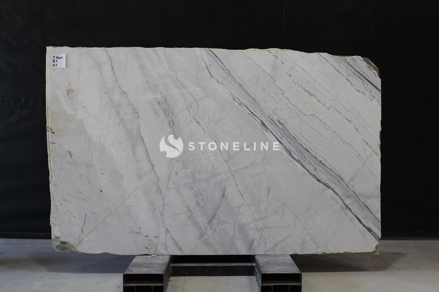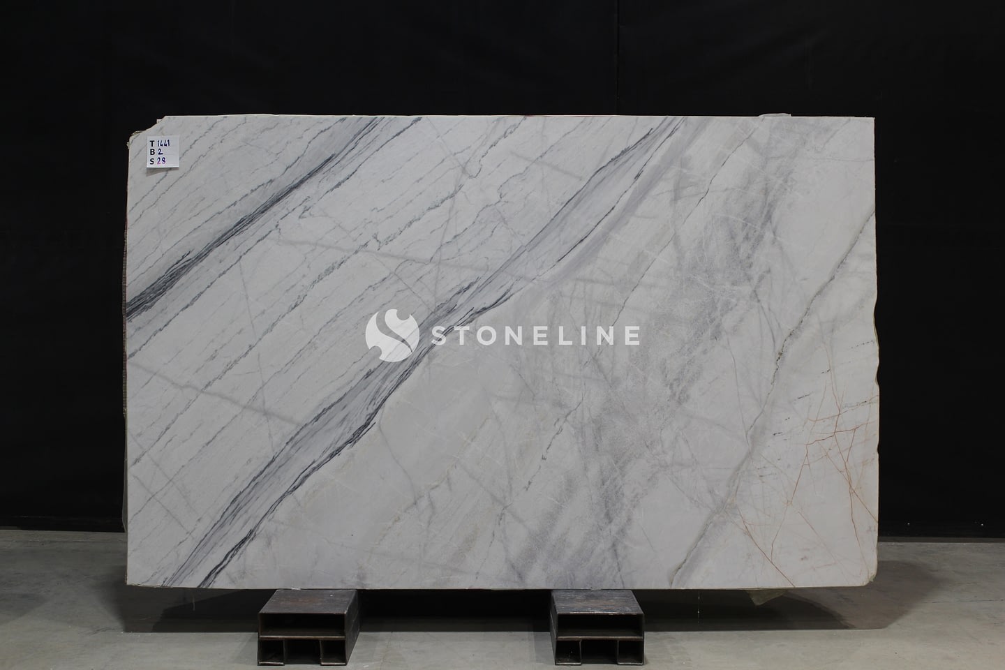 VALLE BIANCA features a blend of white and gray tones with distinct veining patterns, ensuring unique variations in each slab that add natural character to the finished surface.