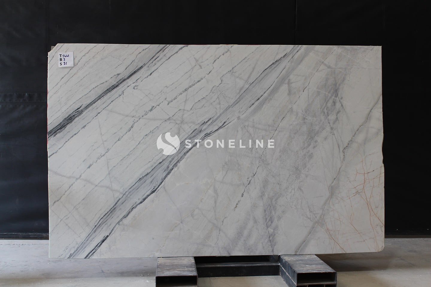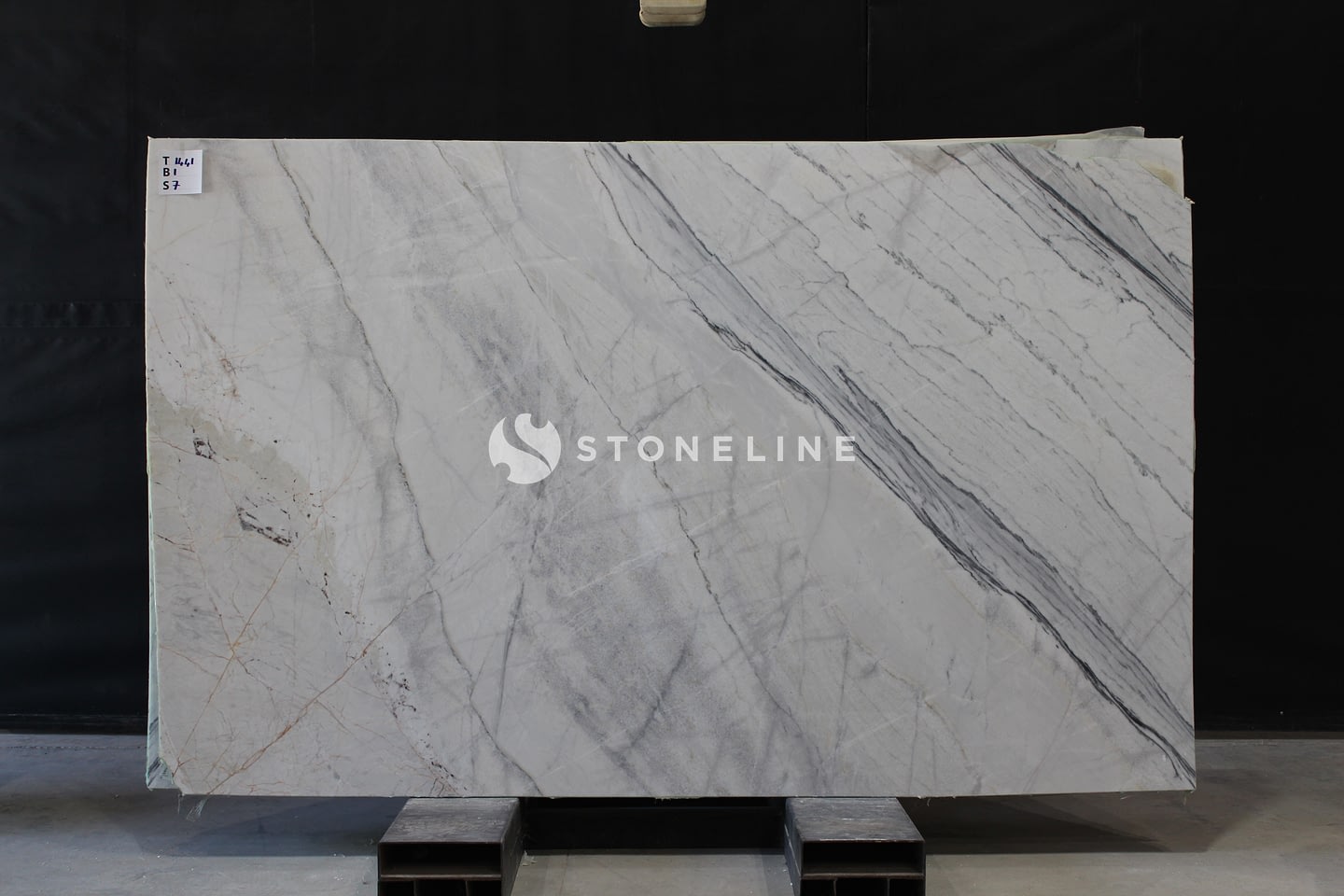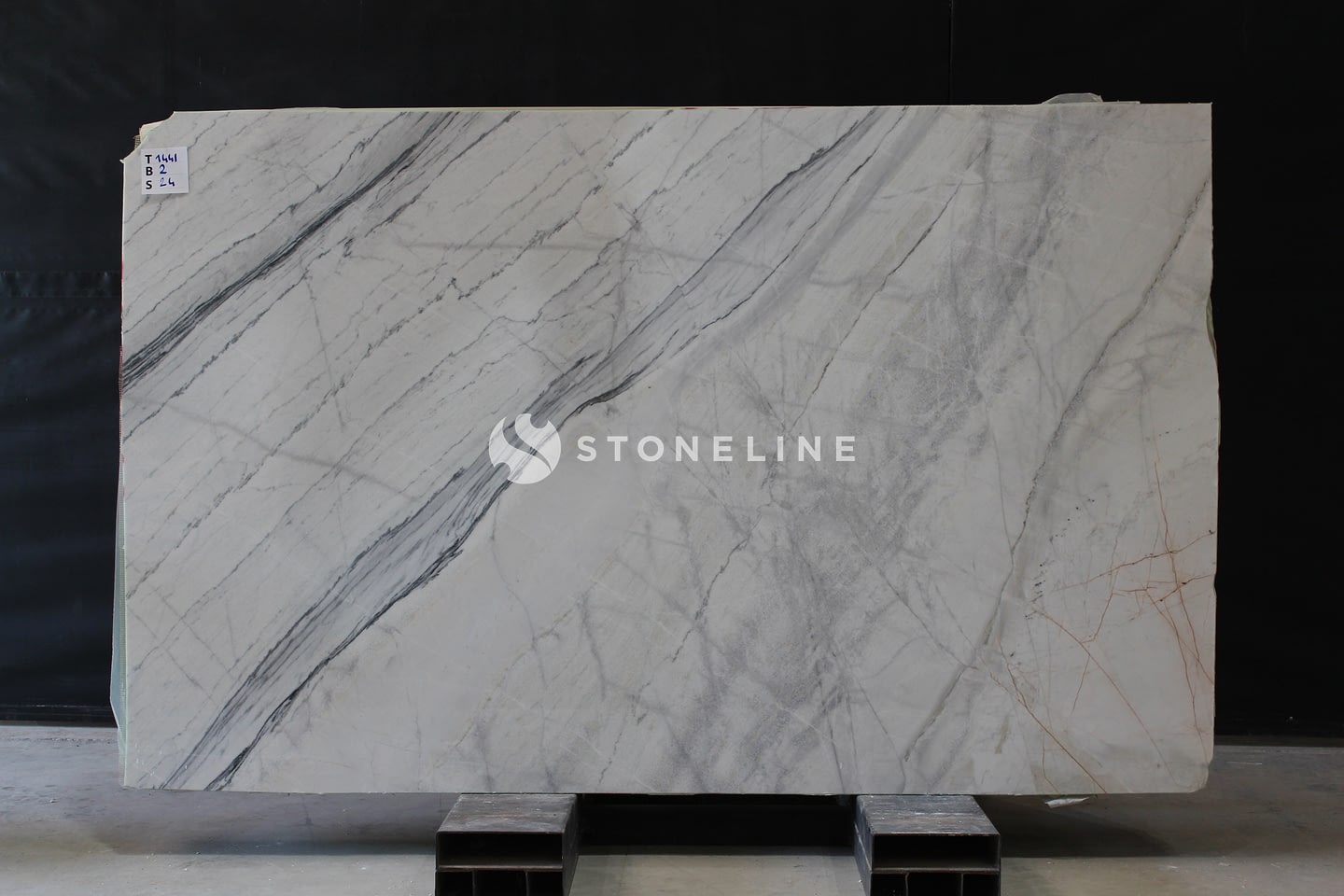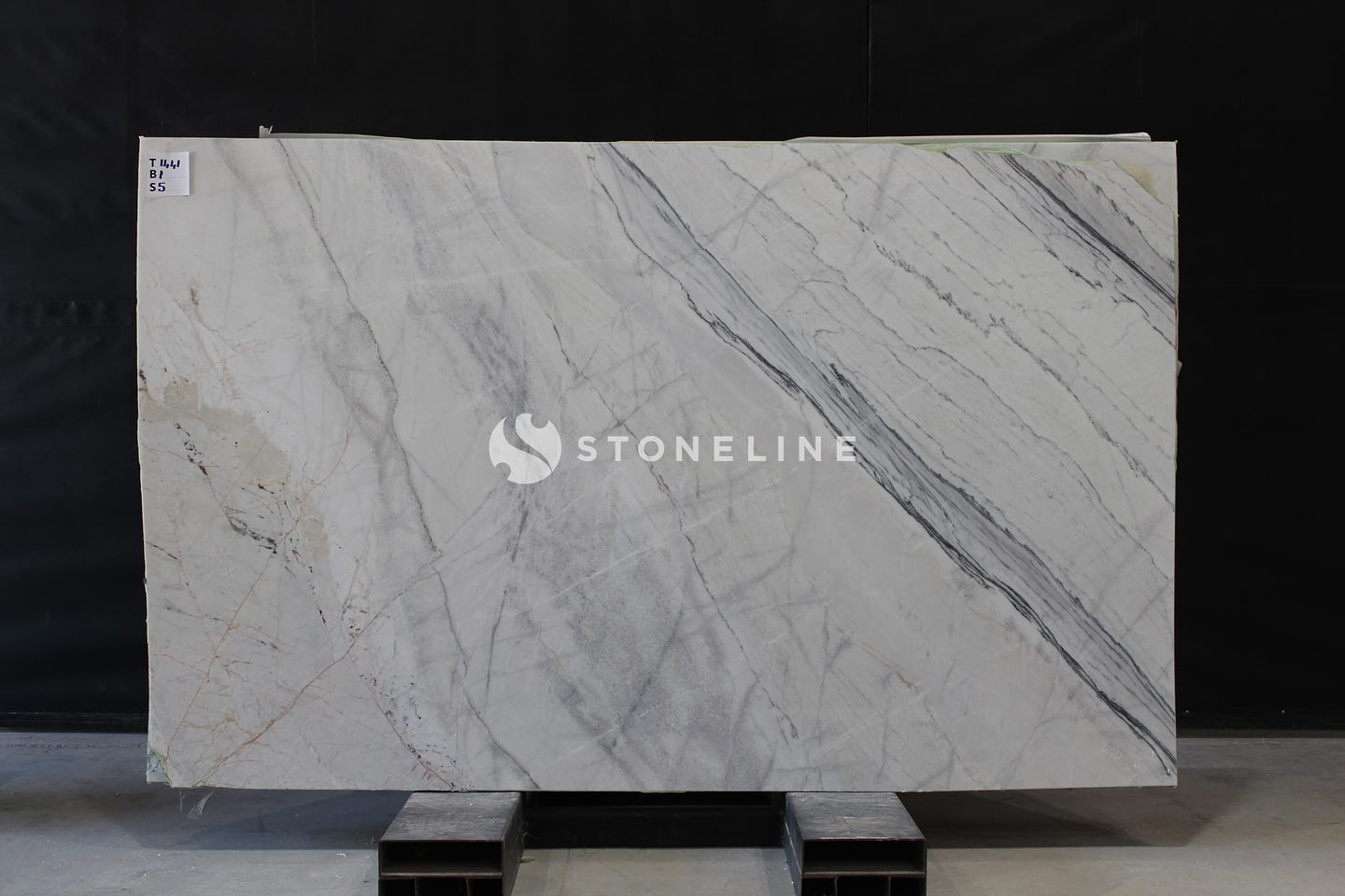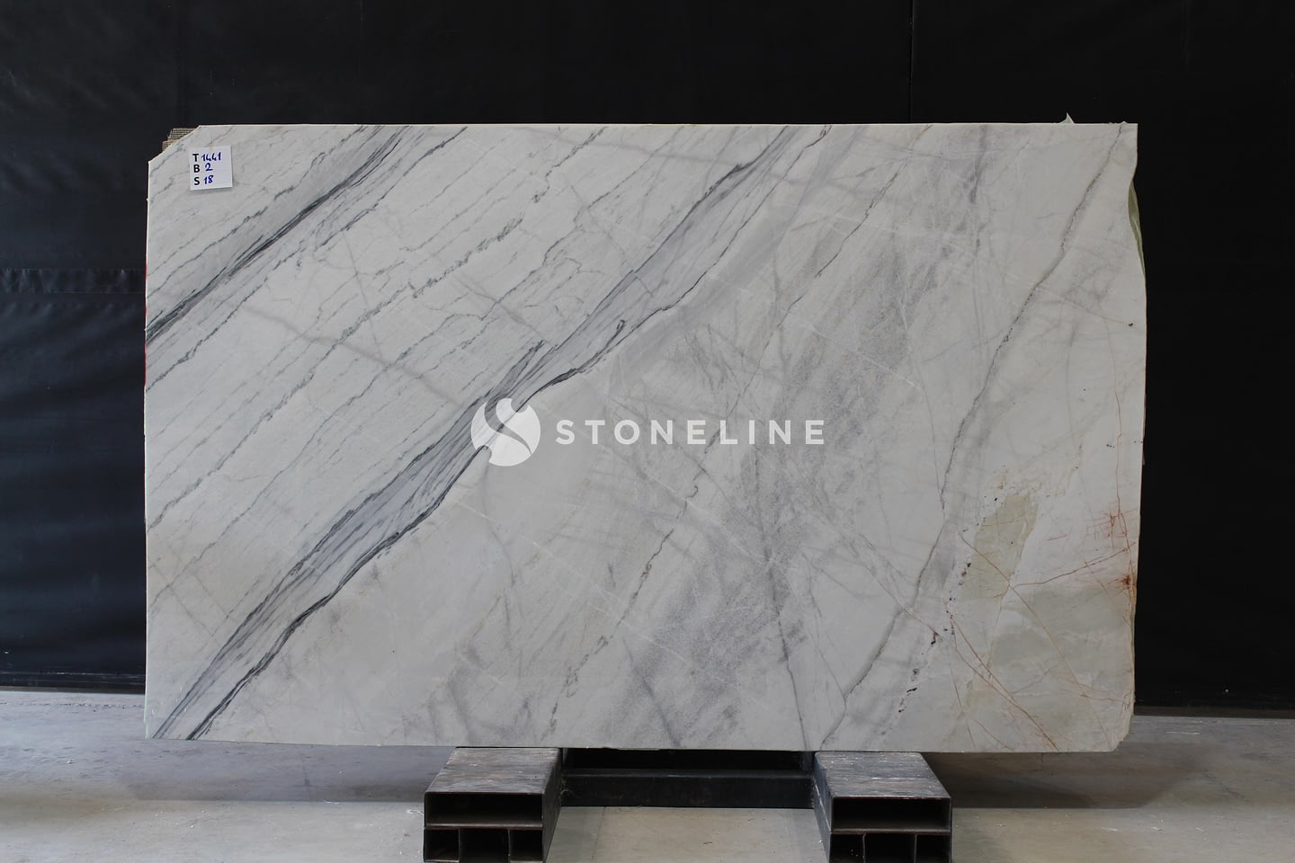 VALLE BIANCA features a blend of white and gray tones with distinct veining patterns, ensuring unique variations in each slab that add natural character to the finished surface.