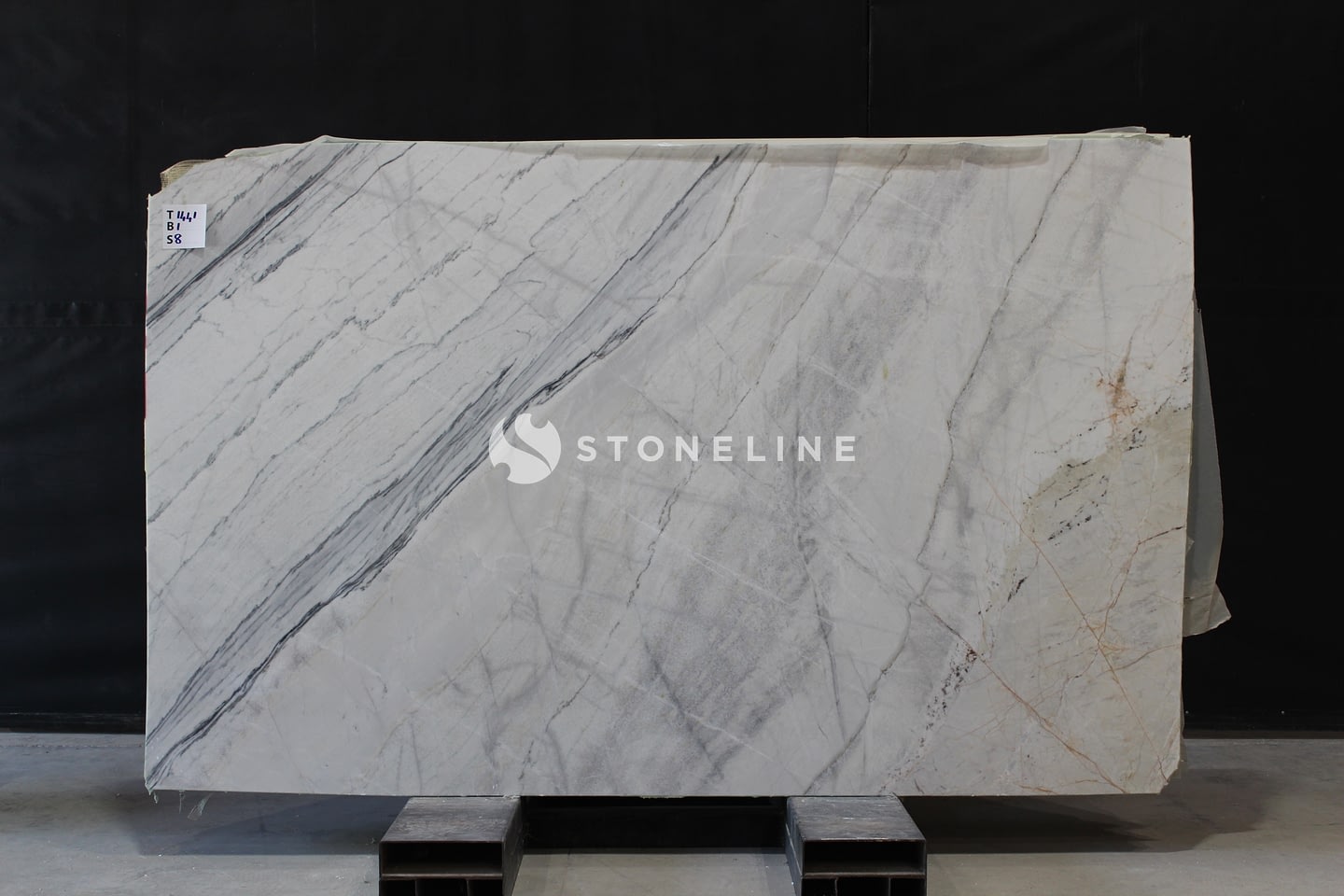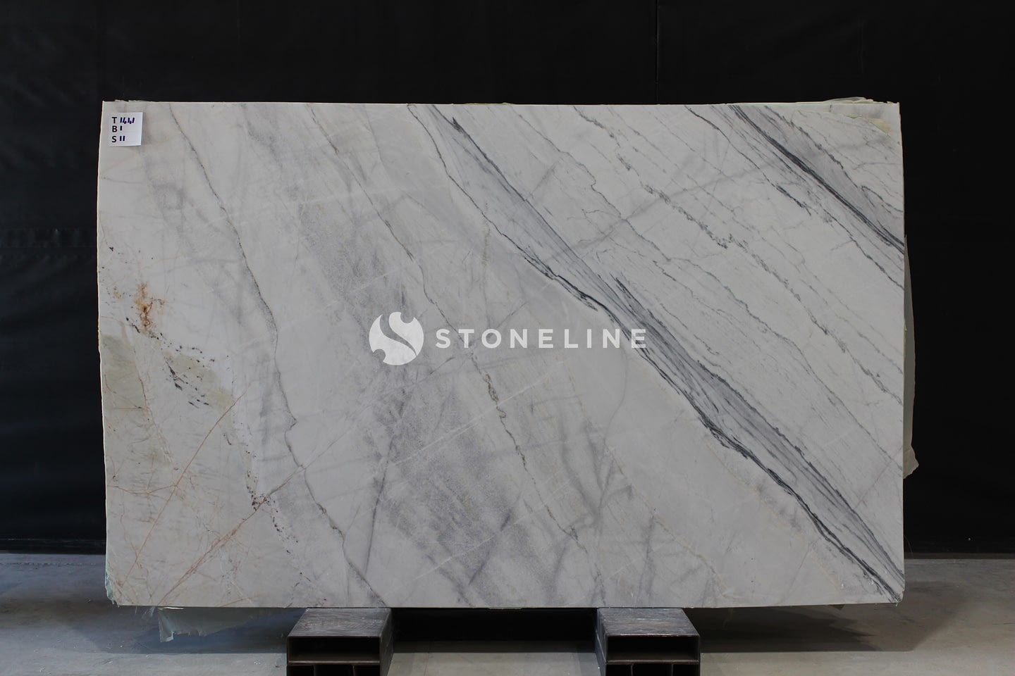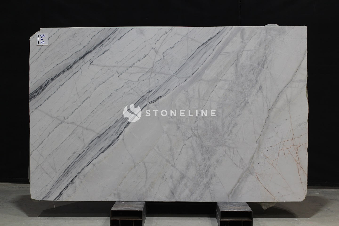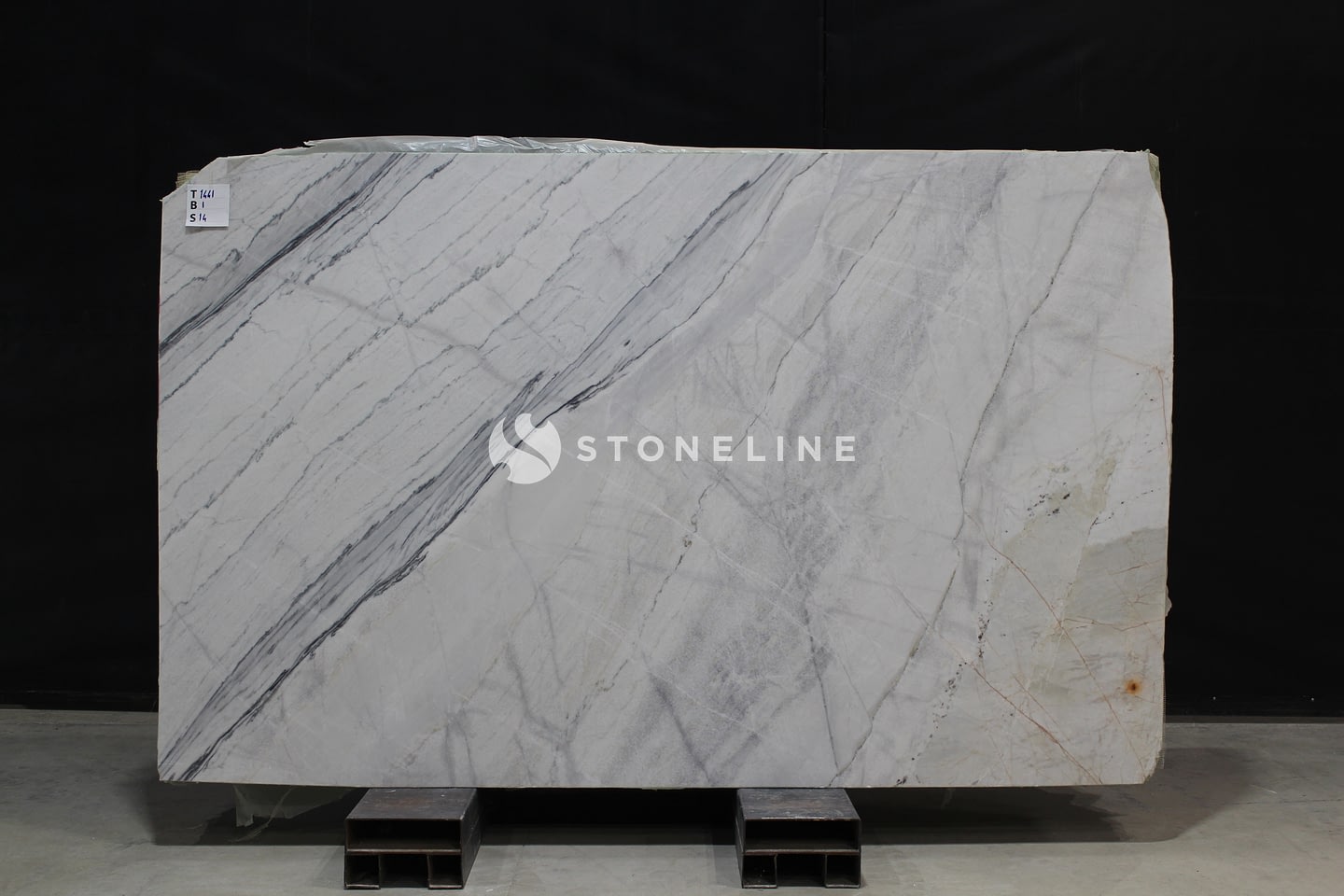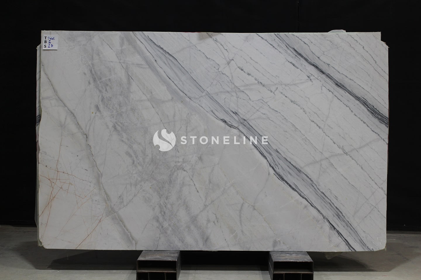 VALLE BIANCA features a blend of white and gray tones with distinct veining patterns, ensuring unique variations in each slab that add natural character to the finished surface.