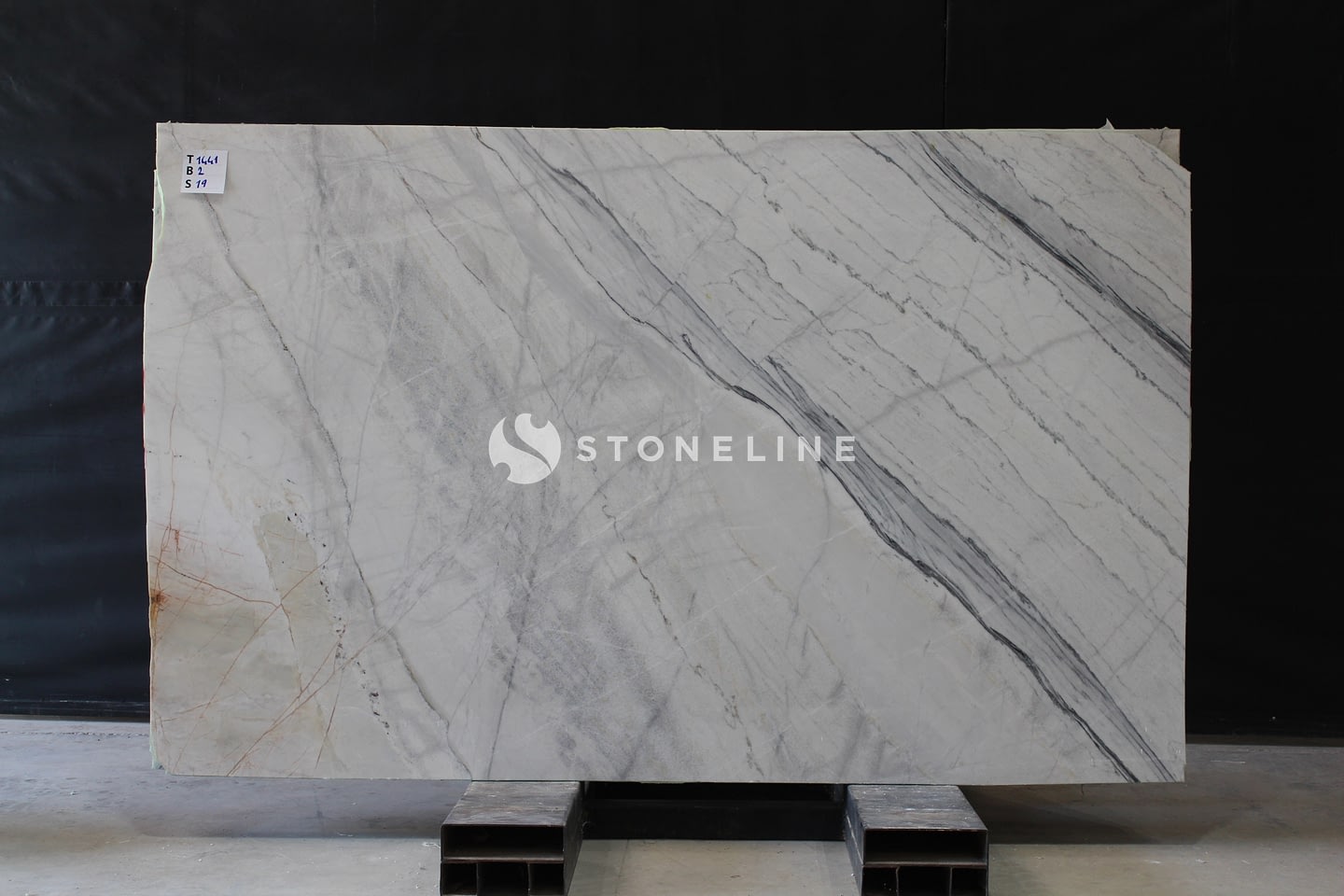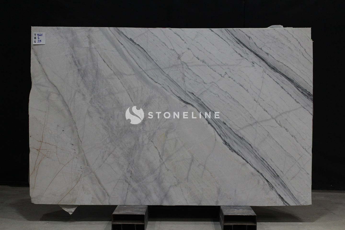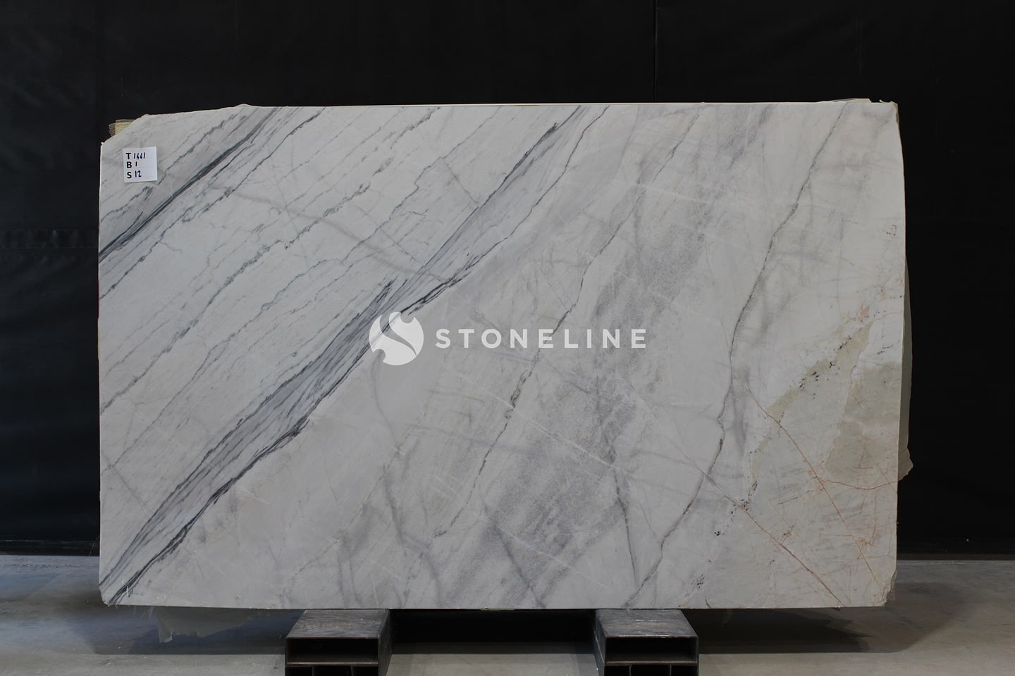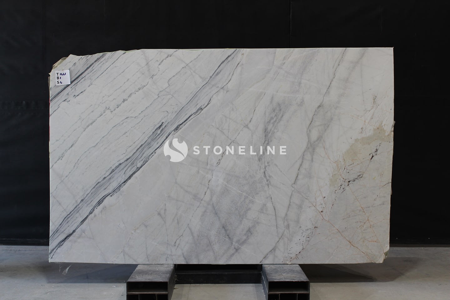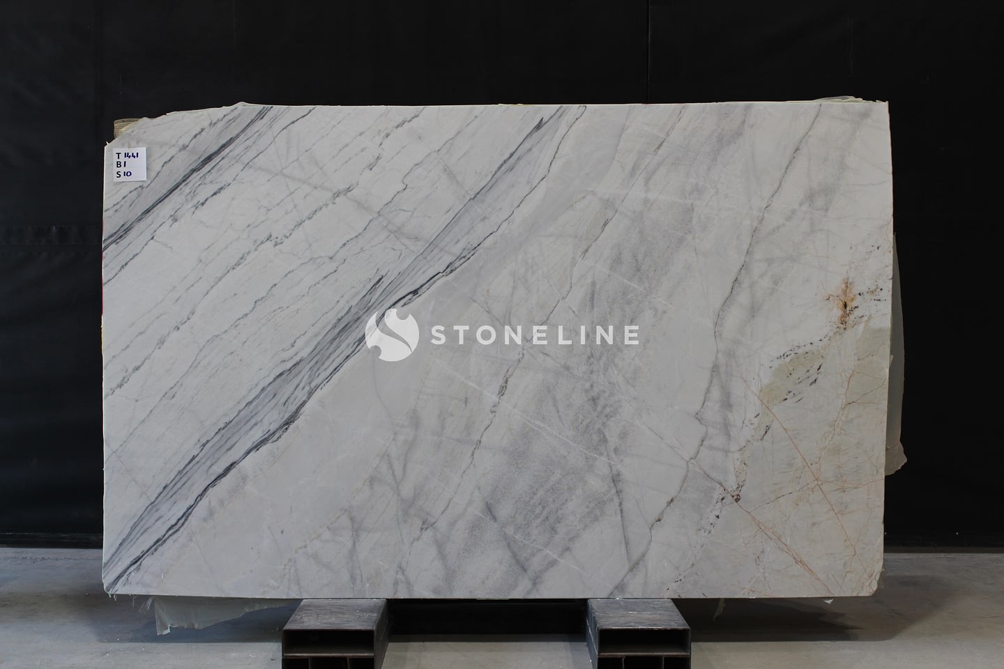 VALLE BIANCA features a blend of white and gray tones with distinct veining patterns, ensuring unique variations in each slab that add natural character to the finished surface.
