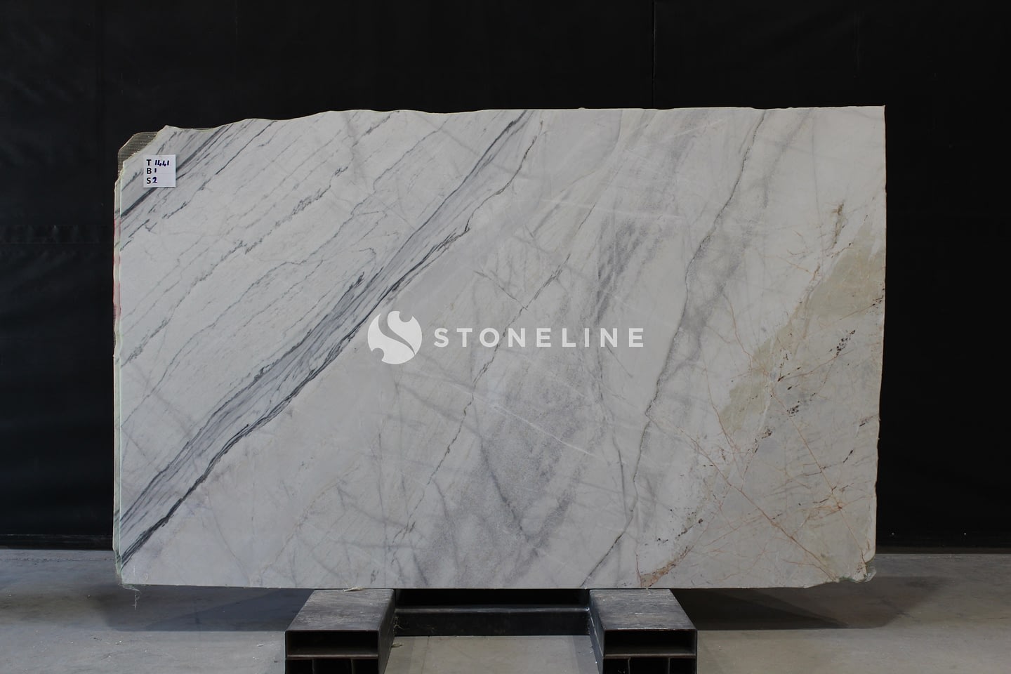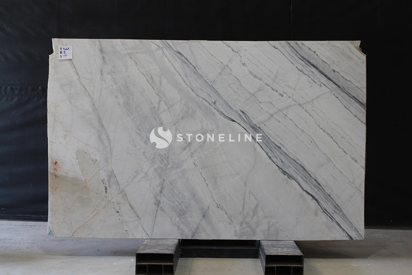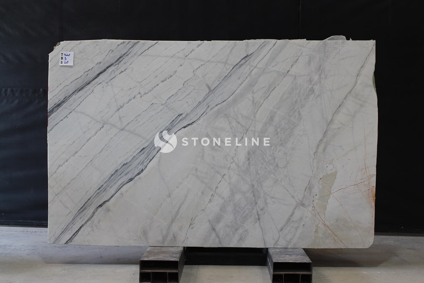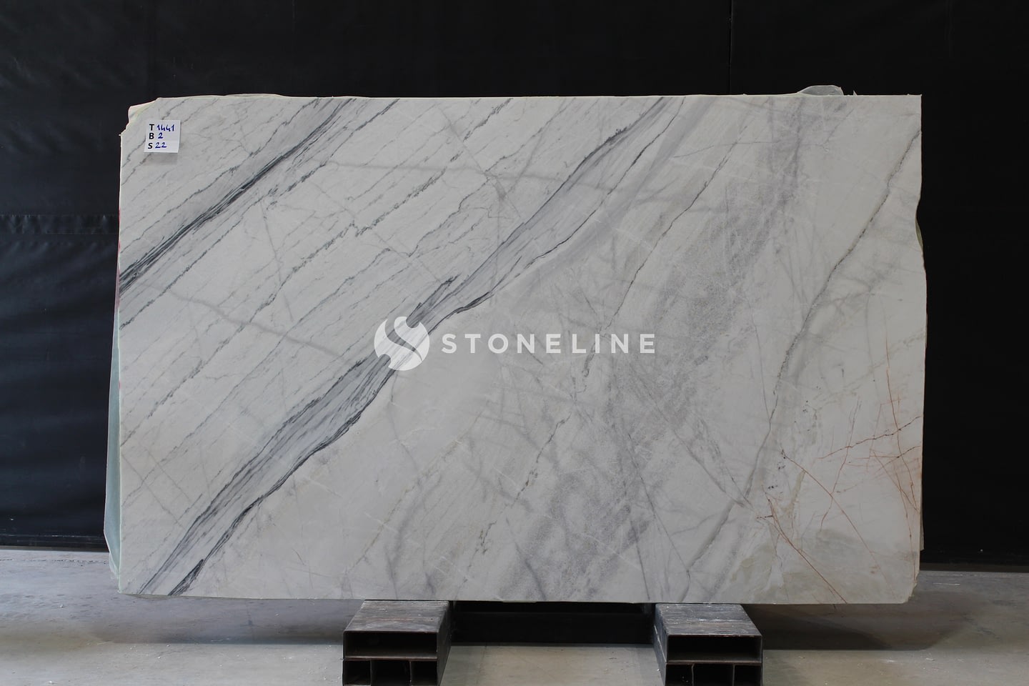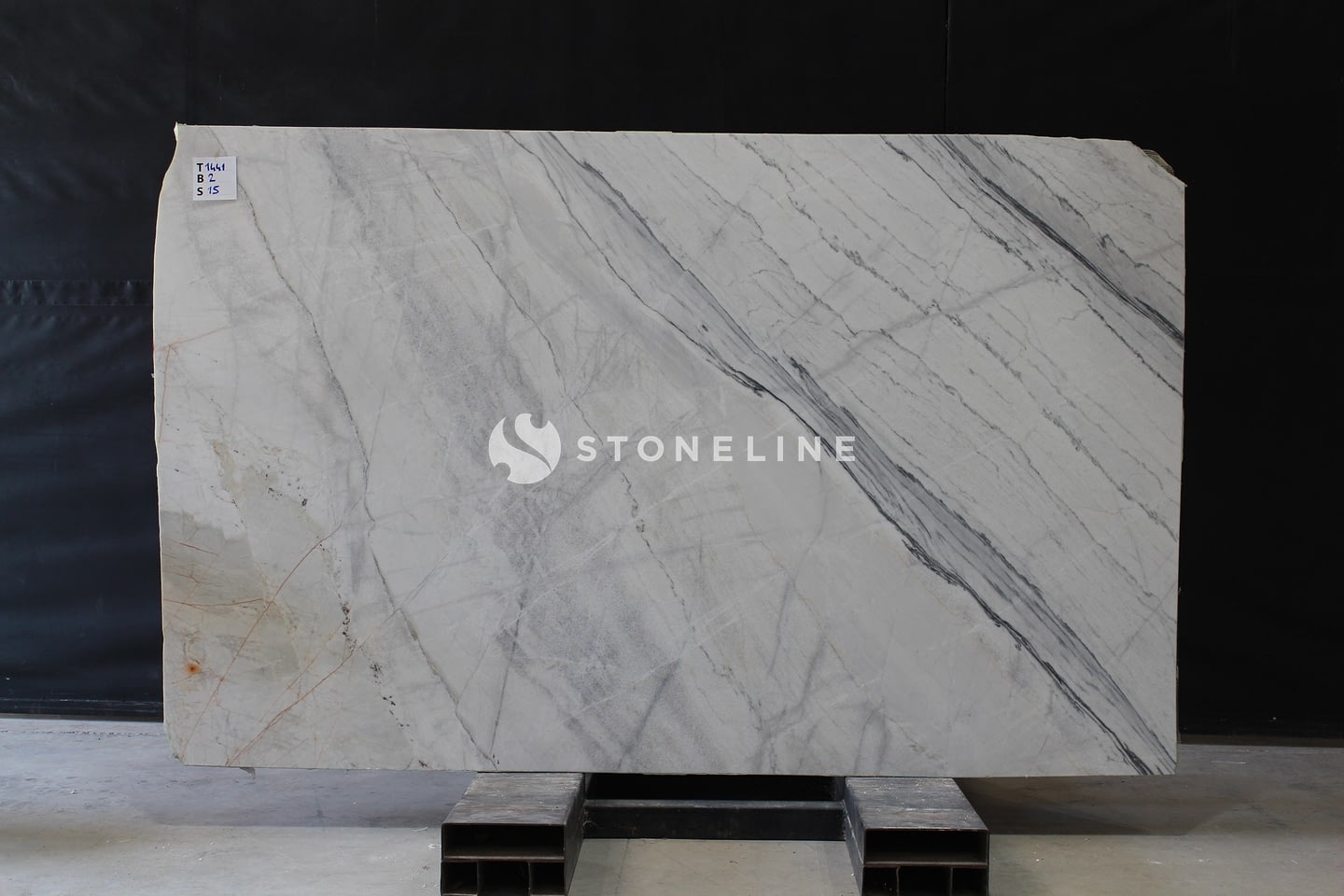 VALLE BIANCA features a blend of white and gray tones with distinct veining patterns, ensuring unique variations in each slab that add natural character to the finished surface.