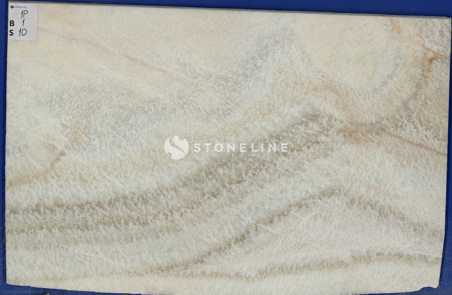 WHITE GOLDEN ONYX is a premium natural stone characterized by its exquisite translucent quality and distinctive beige, white, and yellow hues. With a polished surface finish and a thickness of 1.5 cm, this stone offers a refined aesthetic reminiscent of a delicate watercolor painting, making it an ideal choice for sophisticated indoor applications. Its translucency allows light to pass through, enabling versatile design possibilities such as backlit wall panels, countertops, feature walls, and decorative accents. Suitable for interior environments, WHITE GOLDEN ONYX combines natural beauty with functional elegance, enhancing spaces with a warm and luminous ambiance.