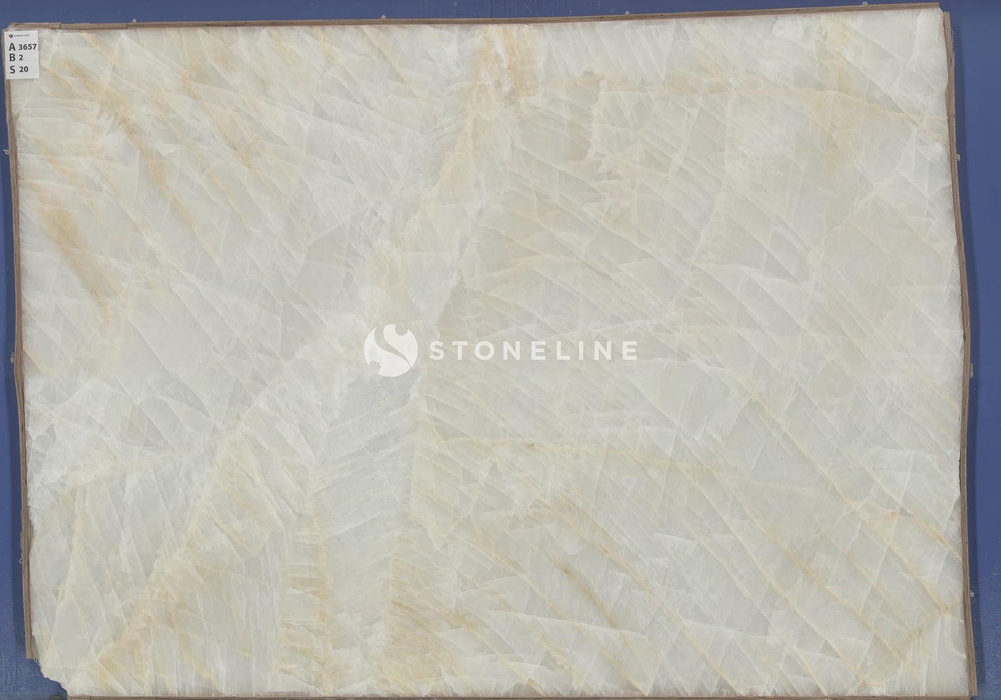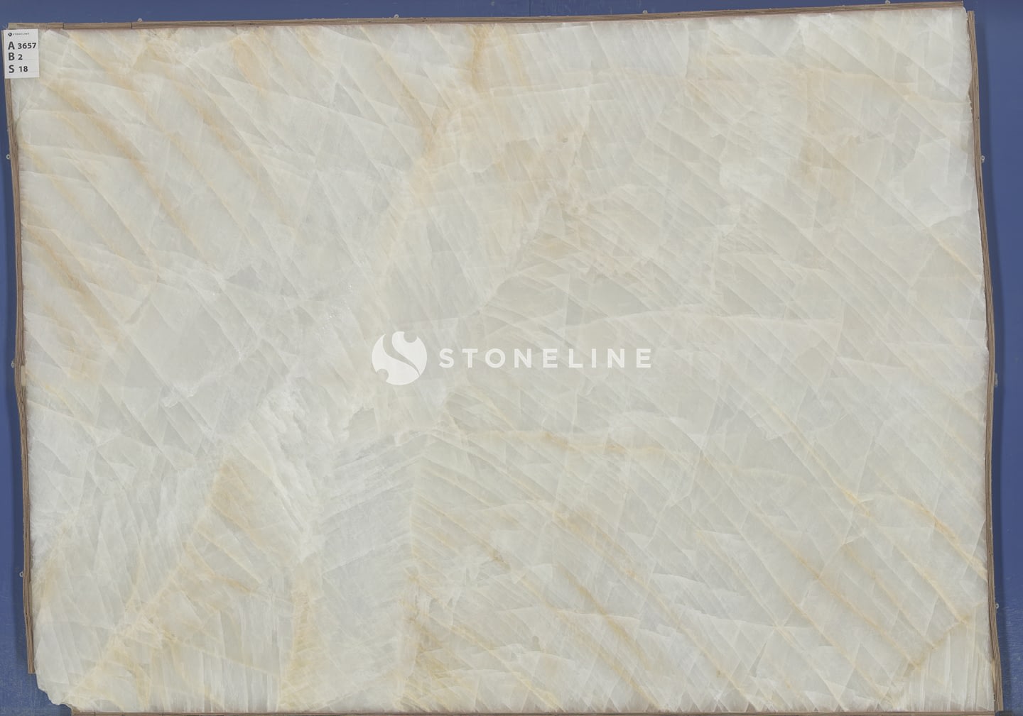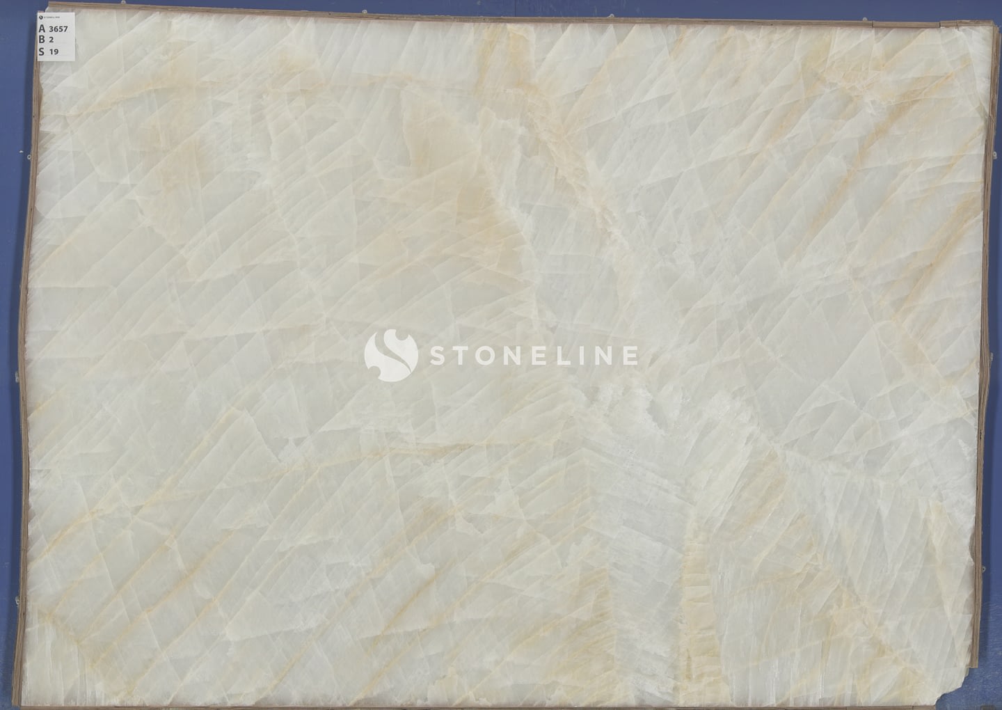 WHITE ONYX SUPER EXTRA is a premium-quality natural stone known for its striking translucent white structure, which elegantly reflects light to enhance the ambiance of any space. With a polished surface and a thickness of 2 CM, this onyx slab is ideal for sophisticated interior applications where aesthetics and light interplay are paramount. Its luxurious appearance makes it a favored choice for decorative walls, backlit installations, countertops, and feature elements in high-end residential and commercial projects. The unique translucency of WHITE ONYX SUPER EXTRA adds depth and a subtle glow, creating an inviting and refined atmosphere.