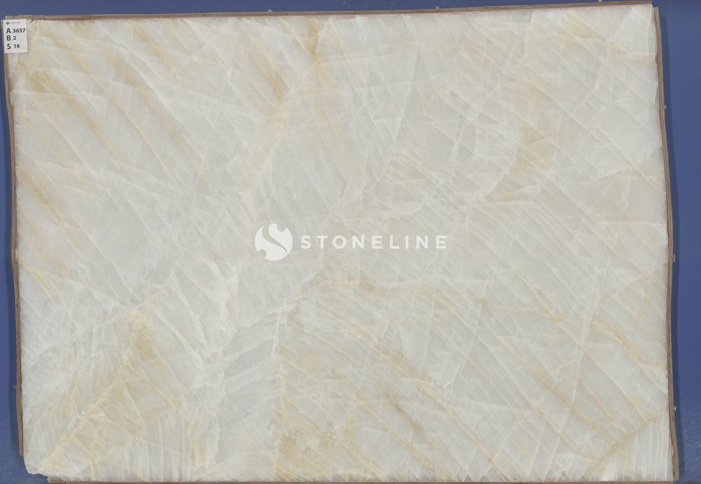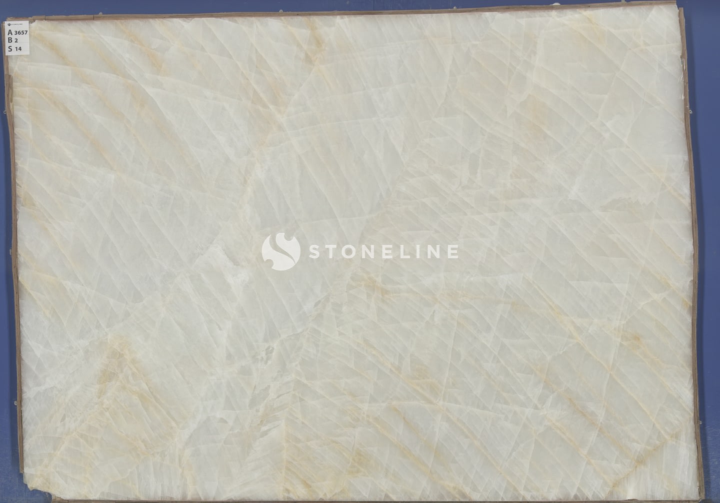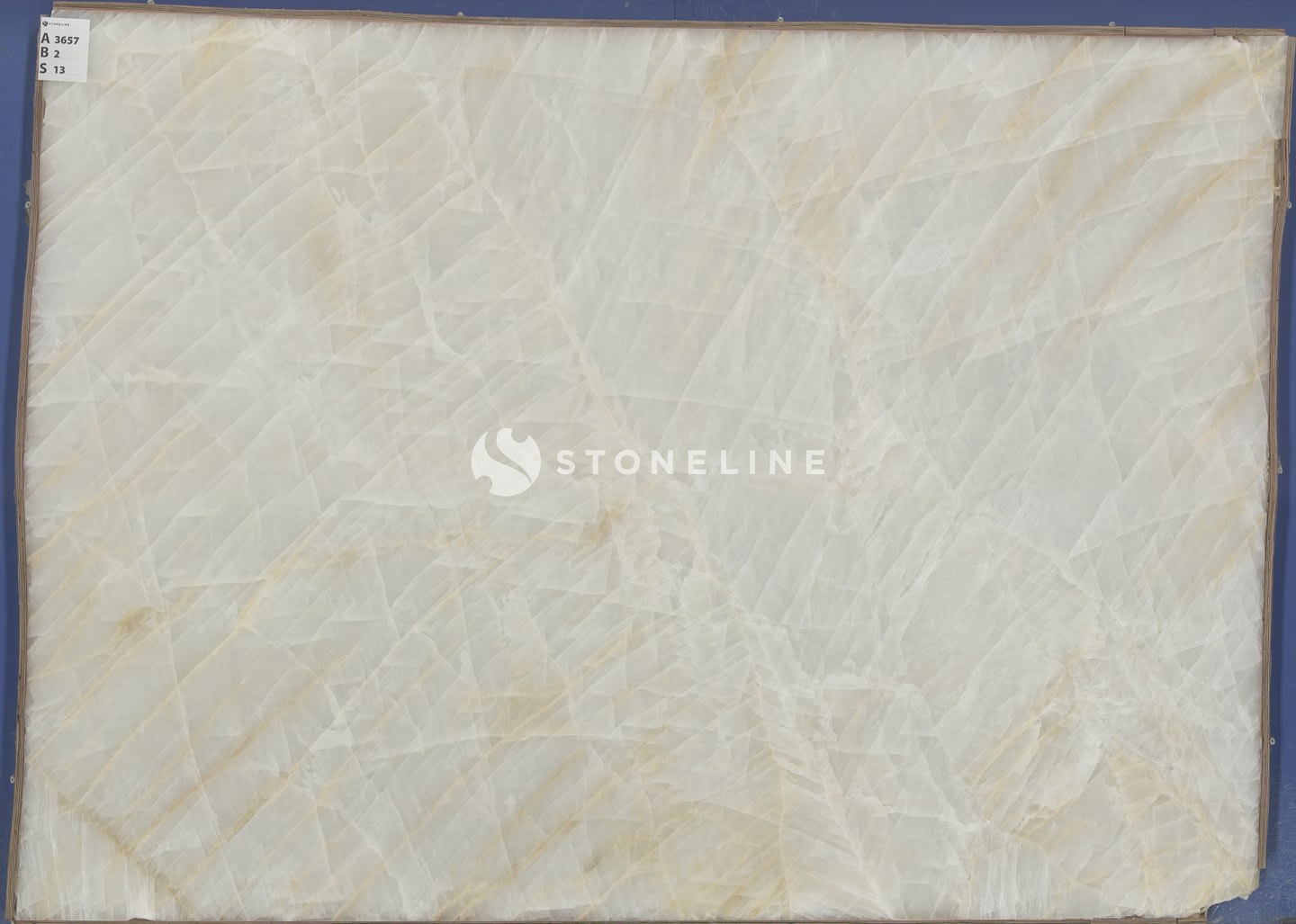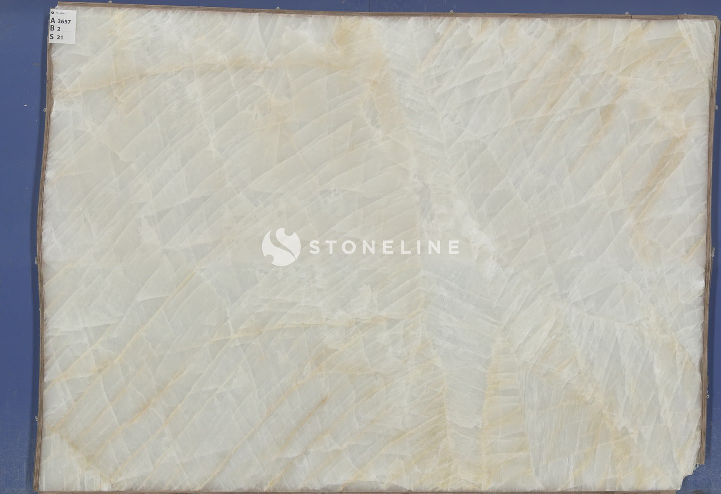 WHITE ONYX SUPER EXTRA is a premium-quality natural stone known for its striking translucent white structure, which elegantly reflects light to enhance the ambiance of any space. With a polished surface and a thickness of 2 CM, this onyx slab is ideal for sophisticated interior applications where aesthetics and light interplay are paramount. Its luxurious appearance makes it a favored choice for decorative walls, backlit installations, countertops, and feature elements in high-end residential and commercial projects. The unique translucency of WHITE ONYX SUPER EXTRA adds depth and a subtle glow, creating an inviting and refined atmosphere.