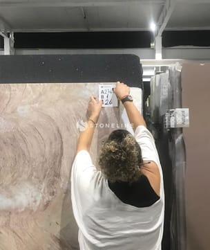 All slabs that are brought to our collection after being finely selected from all around the globe are checked down to the tiniest details. Surface and vein texture are examined to identify the selection. The overall and detailed sizes are recorded, and thickness and smoothness are checked. The slabs that are grouped and numbered based on the selection are identified one by one and information is recorded on the checklist. Following high resolution general and detailed photo shooting, all information is uploaded to the software. In this way, you can check out each slab either physically in our showroom or through our website and have full control over all details in each slab for your project.