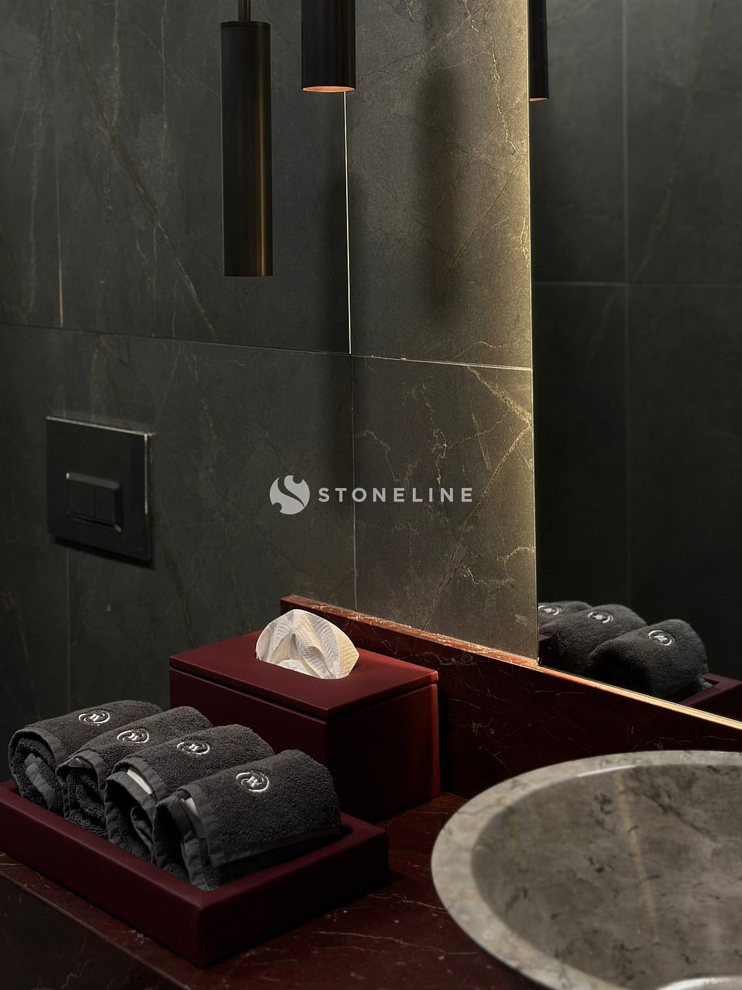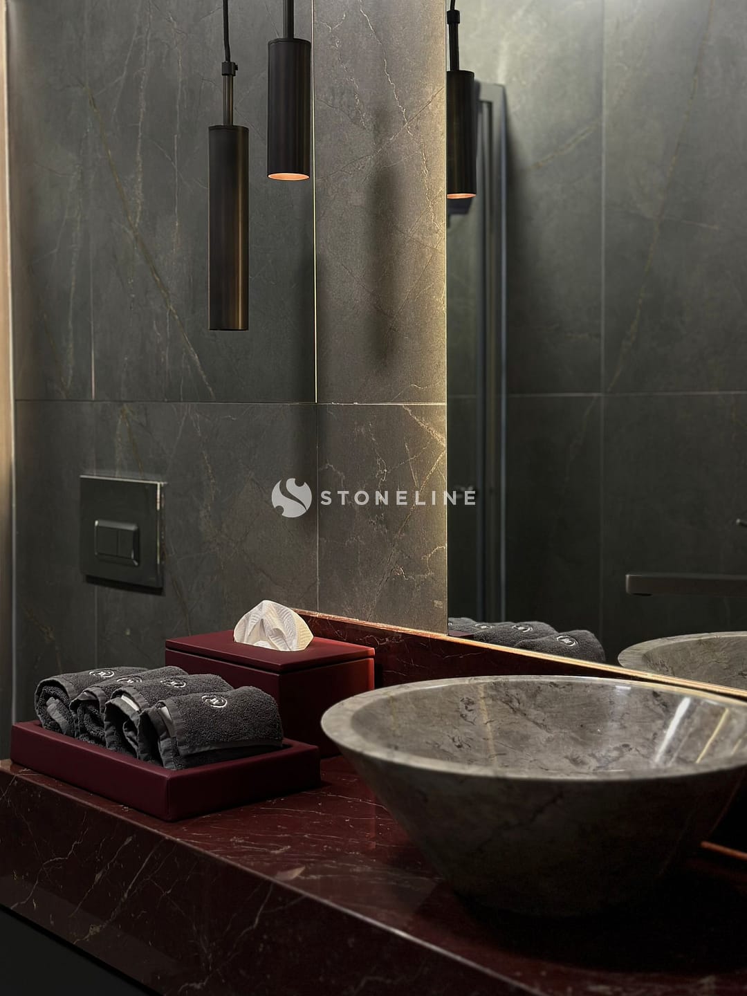 Designed with Stoneline’s stunning Imperial Red stone, this private residence bathroom offers a unique space where luxury and elegance come together. The vibrant red tones of the natural stone add warmth and sophistication to the bathroom, while the elegant grain structure represents prestige and elegance in every detail.