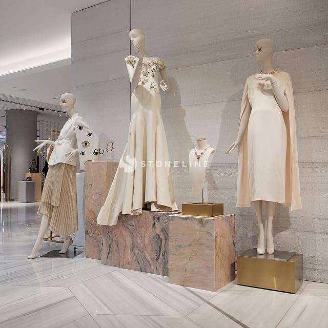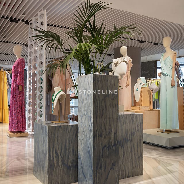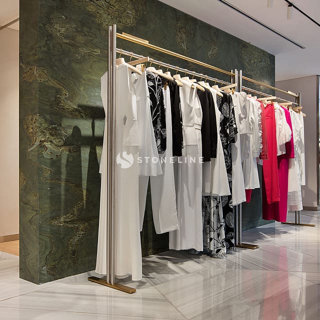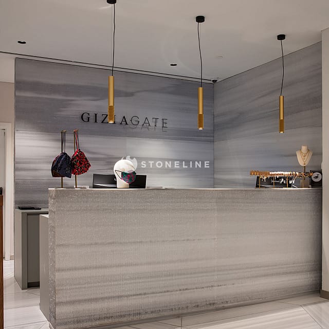 In this store project by the Architect Arif Özden, Stoneline’s natural stone collection was used for marble and granite stones. The floors are covered with Marmara Stripes marble while walls are covered with Cosmos Black, Black Horse, Sand Wave and Caldere Pink – some of the finest examples of granite and marble. You can also discover hundreds of stones from the natural stone selection of Stoneline for your elegant designs.