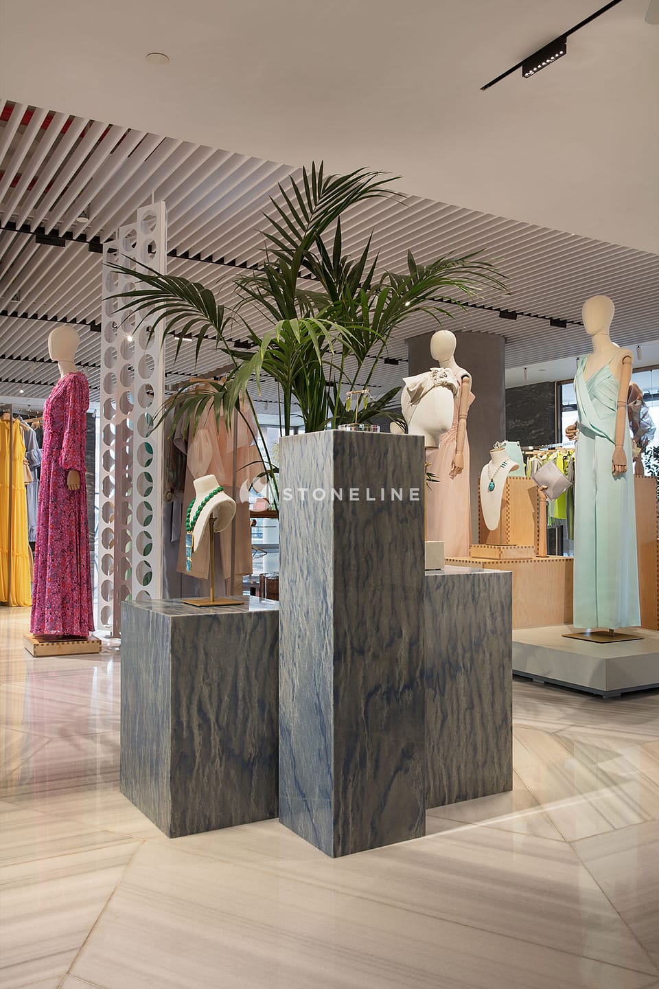 In this store project, Stoneline’s natural stone collection was used for marble and granite stones. The floors are covered with Marmara Stripes marble, while the walls are covered with Cosmos Black, Black Horse, Sand Wave and Calcadere Pink – some of the finest examples of granite and marble. You can also discover hundreds of stones from the natural stone selection of Stoneline for your elegant designs.