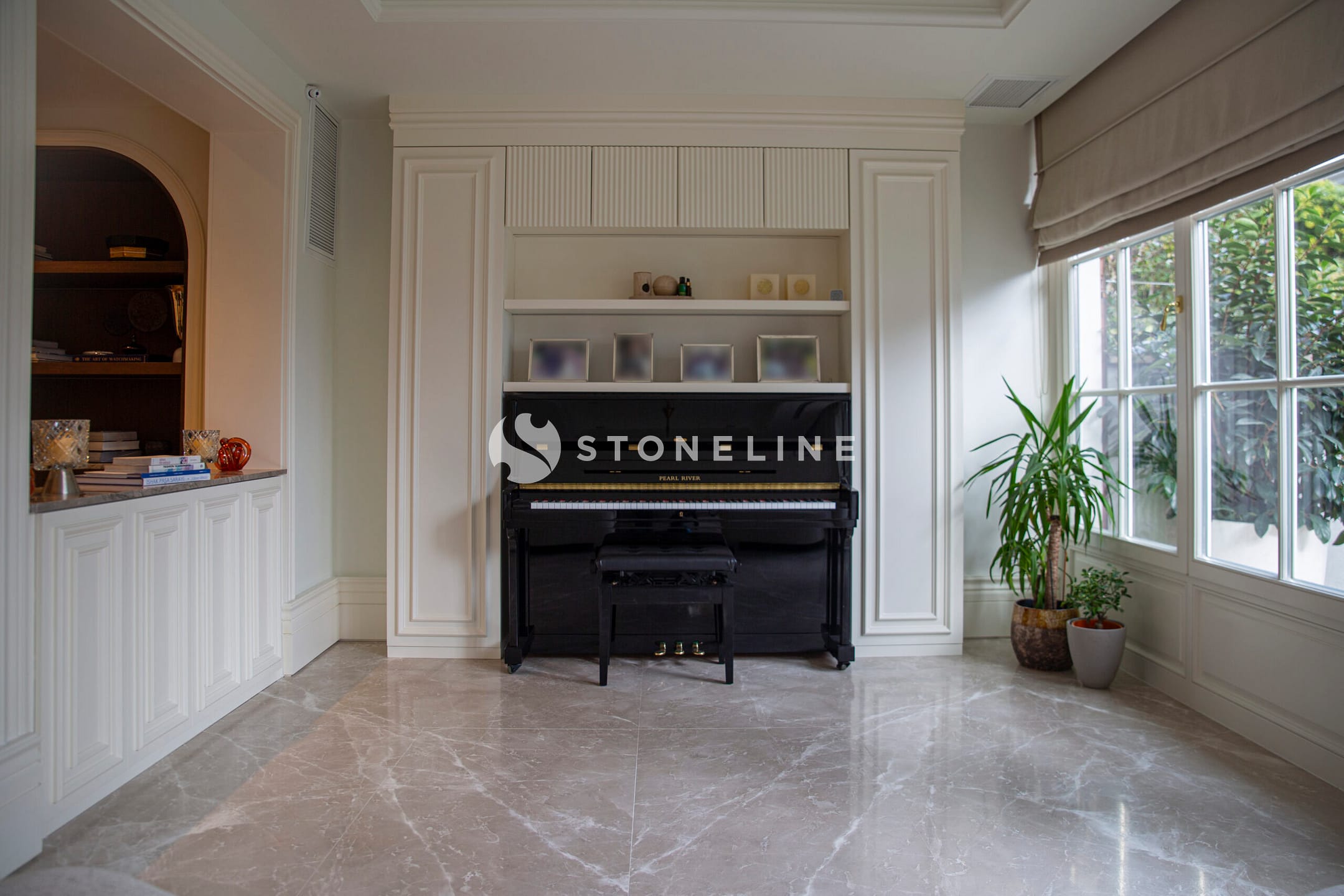 Combining the aesthetics of modern life with the elegance of natural stones, this special residence project has been designed using Stoneline’s most exclusive stone collections. The world’s most precious natural stones such as King Black, White Beauty, Cool Grey, and Calacatta Corchia give character to this project.
