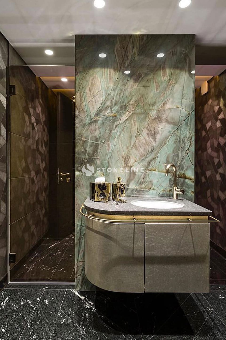 Emerald Quartzite – an exceptional quartzite from Stoneline’s natural stone collection – is blended with black in a great color combination. With its emerald green color and dazzling vein texture, Emerald Quartzite creates a striking effect while fitting with other elements that are all finely selected.