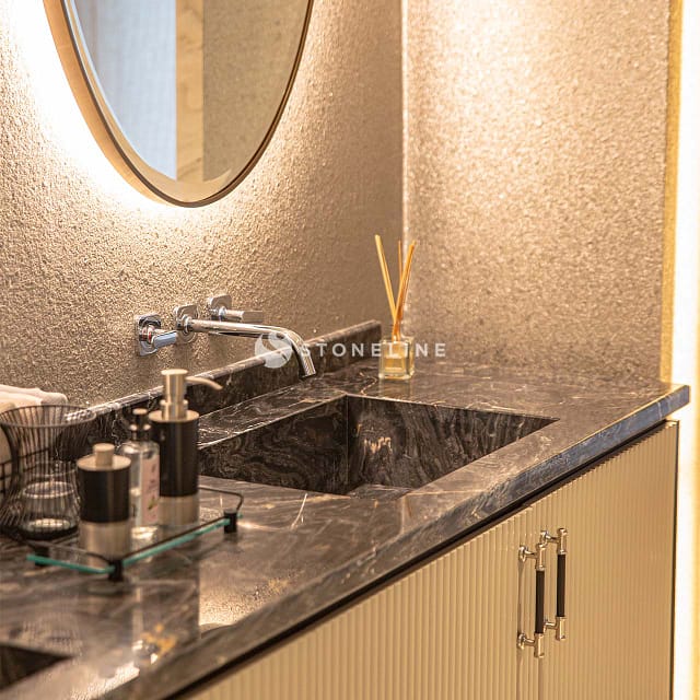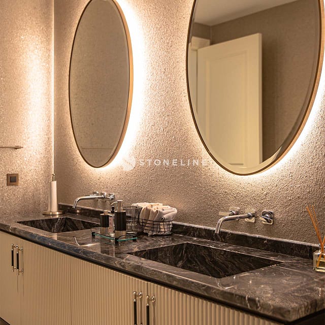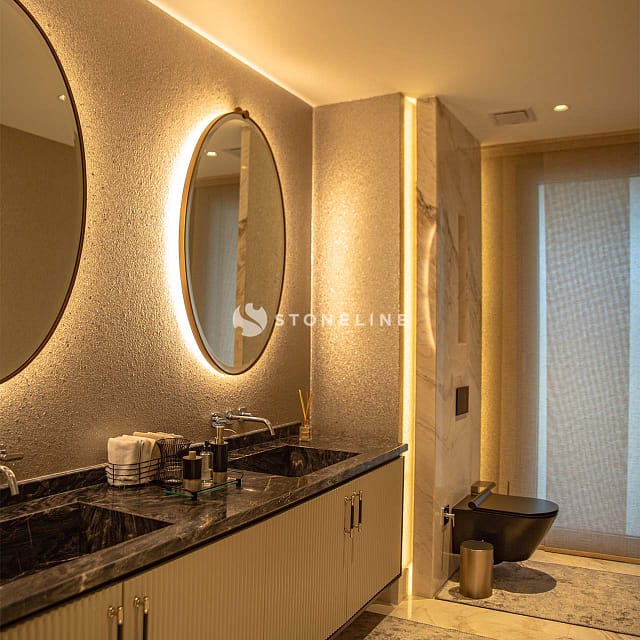 A corner of architect Şebnem Buhara’s private housing project attracts attention with stones collected from the Stoneline collection. Preserving the unique texture of nature, these stones offer an aesthetic of strategic value in every respect. Check out the photos for more details on the project!