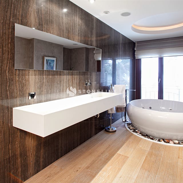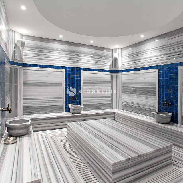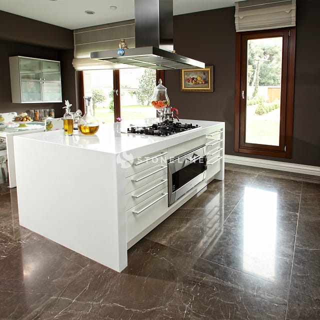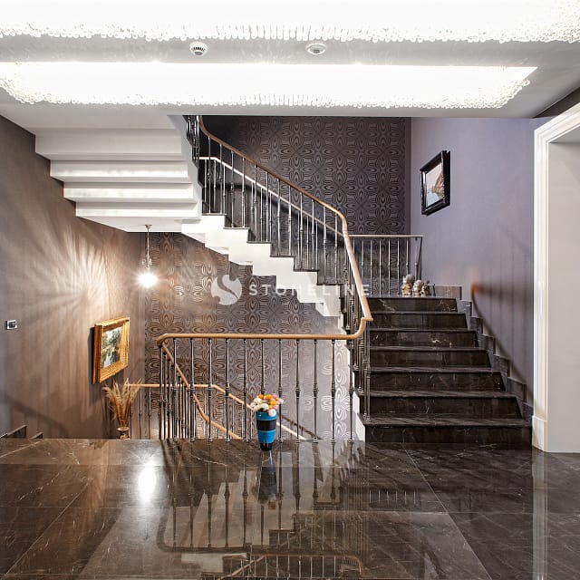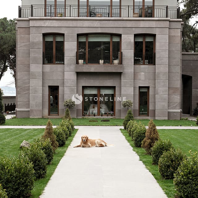 Designed by the Architect Bülent Kanat, this private residence project is decorated with Diamond Brown in the common areas and kitchen with soft hues of brown while bathrooms are covered with Brown Serpegiante, Marmara Stripes andBlack Marinache that are some of the finest examples of Stoneline collection. The outer façade is covered with Andesite – a volcanic natural stone with classical look. You can also discover hundreds of stones from the natural stone selection of Stoneline for your elegant designs.