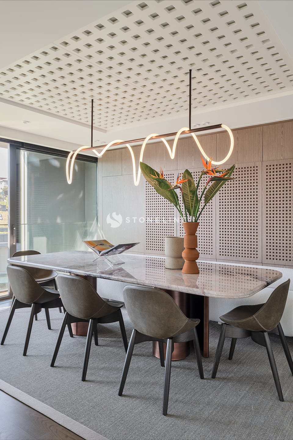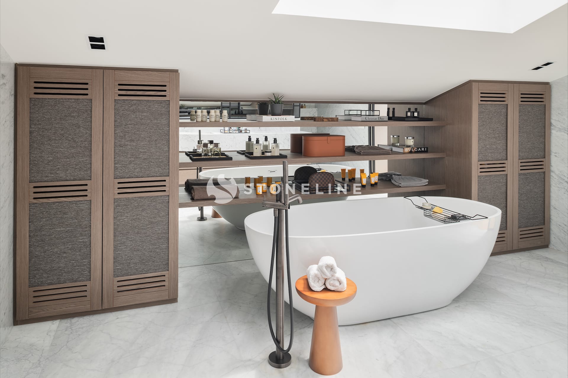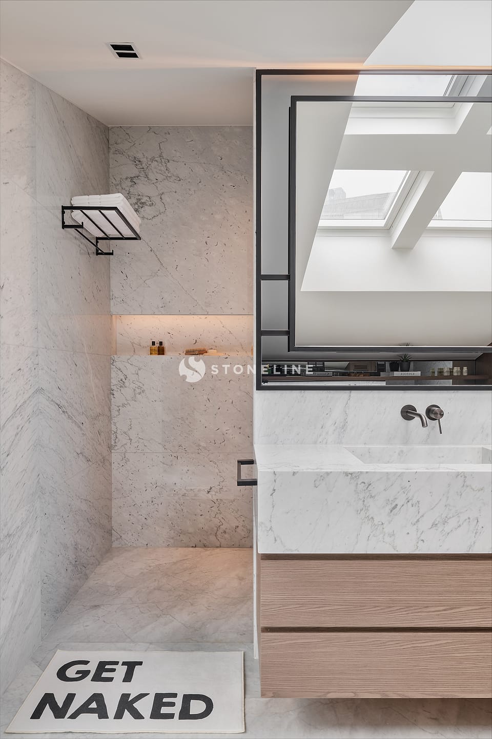 Statuario A1, Wow Quartzite, Carraro Gioa, Bardiglio Nuvolato Light stones from the Stoneline natural stone collection were preferred in this special residence project designed by architect Selen Hasoğlu. Hundreds of stones in the Stoneline natural stone collection are waiting for you to be your source of inspiration.