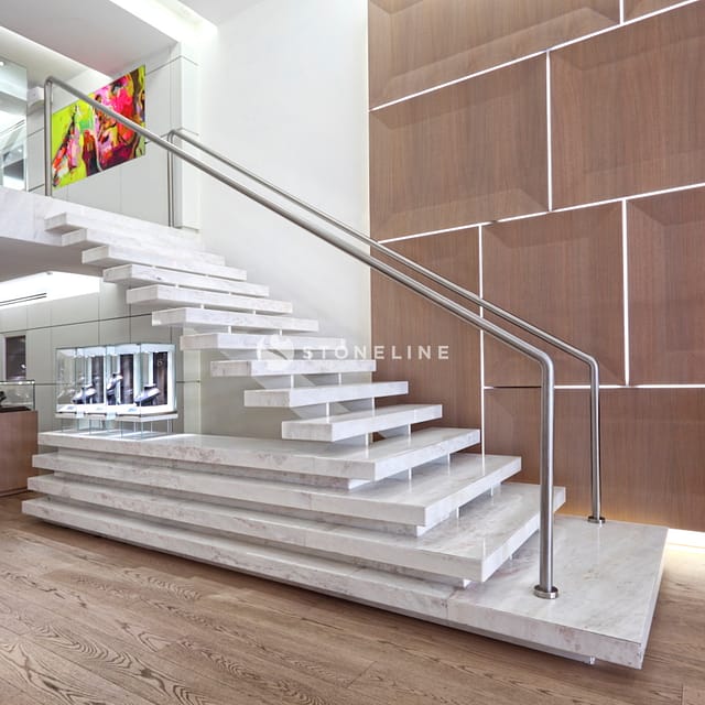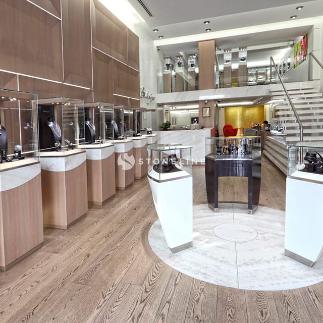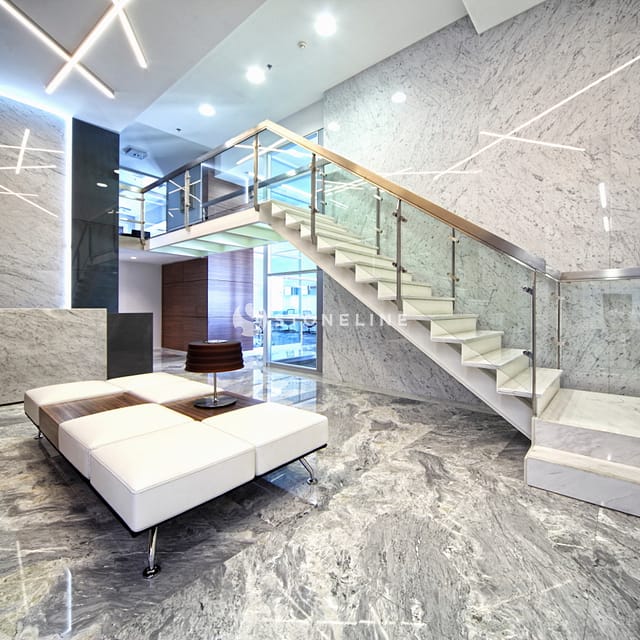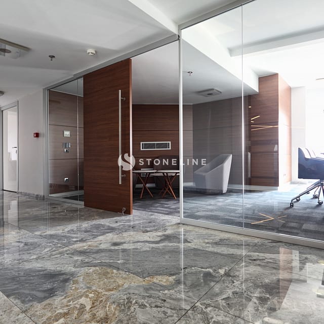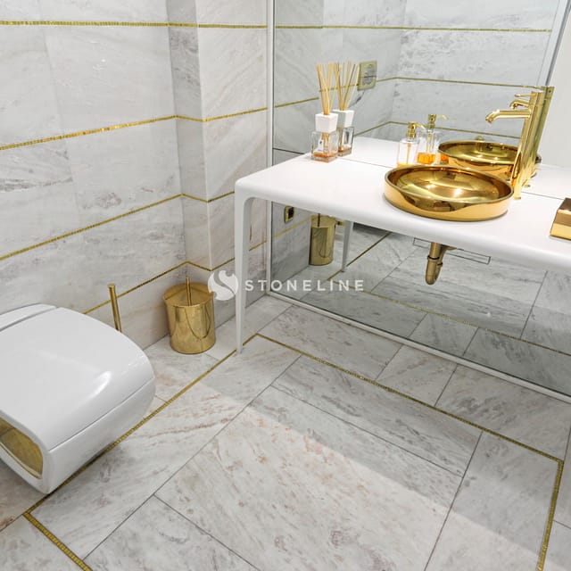 Carrara Gioa is the choice of designers in this office project which was developed by DK Architecture. Carrara is very widely preferred to create spaces that are both lean and also stylish with the harmony between white and grey. Versalys complements this unique marble with its great grey shades while the bathroom is decorated with Pink Pearl – the perfect match for the gold accessories with its pink elegance.