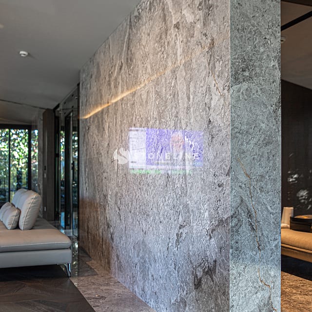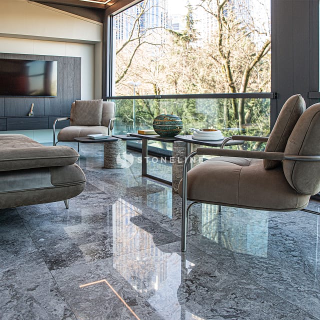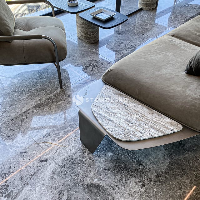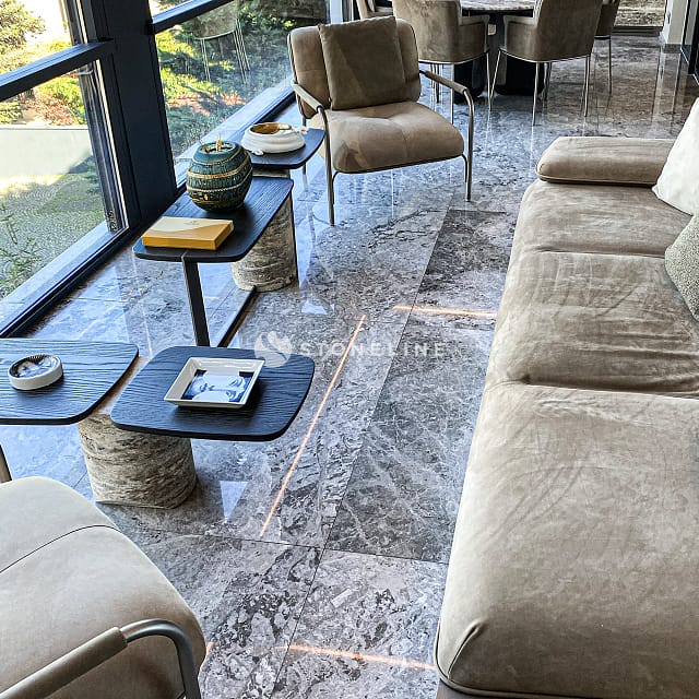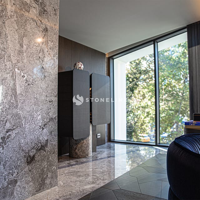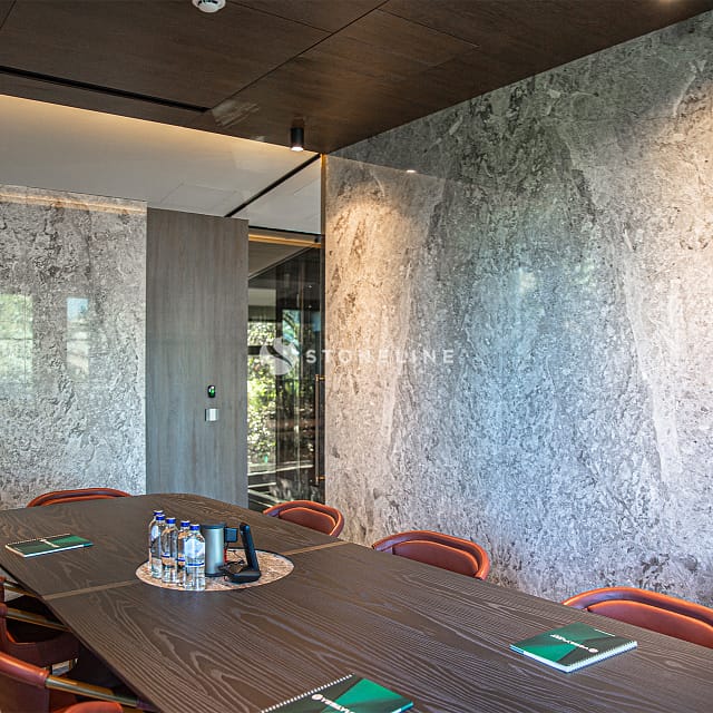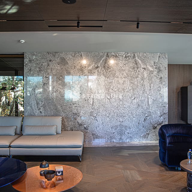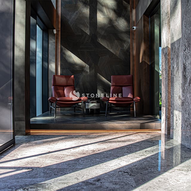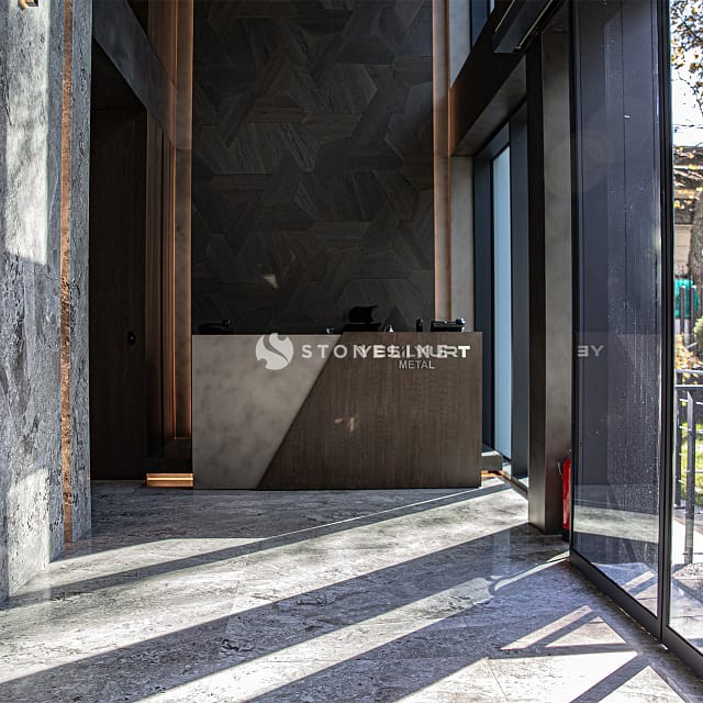 While Tundra Gray stone adds a contemporary touch to your space, it also attracts attention with its durability and elegance. This special office project offers an excellent option for those who want to stand out in the business world. The unique texture of natural stone increases the prestige of your business environment by offering an impressive welcome to your employees and customers.